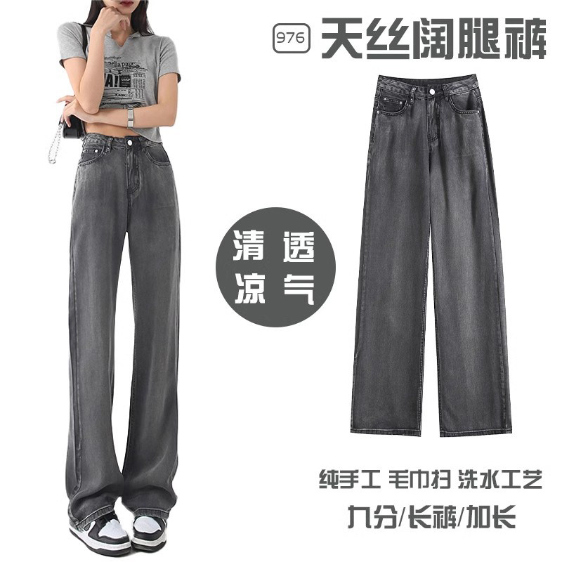Джинсы, летние шелковые штаны, свободный прямой крой