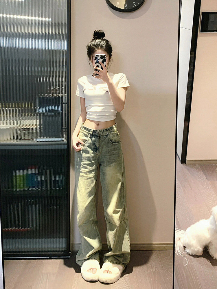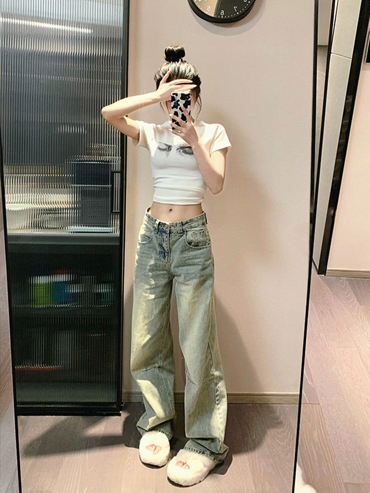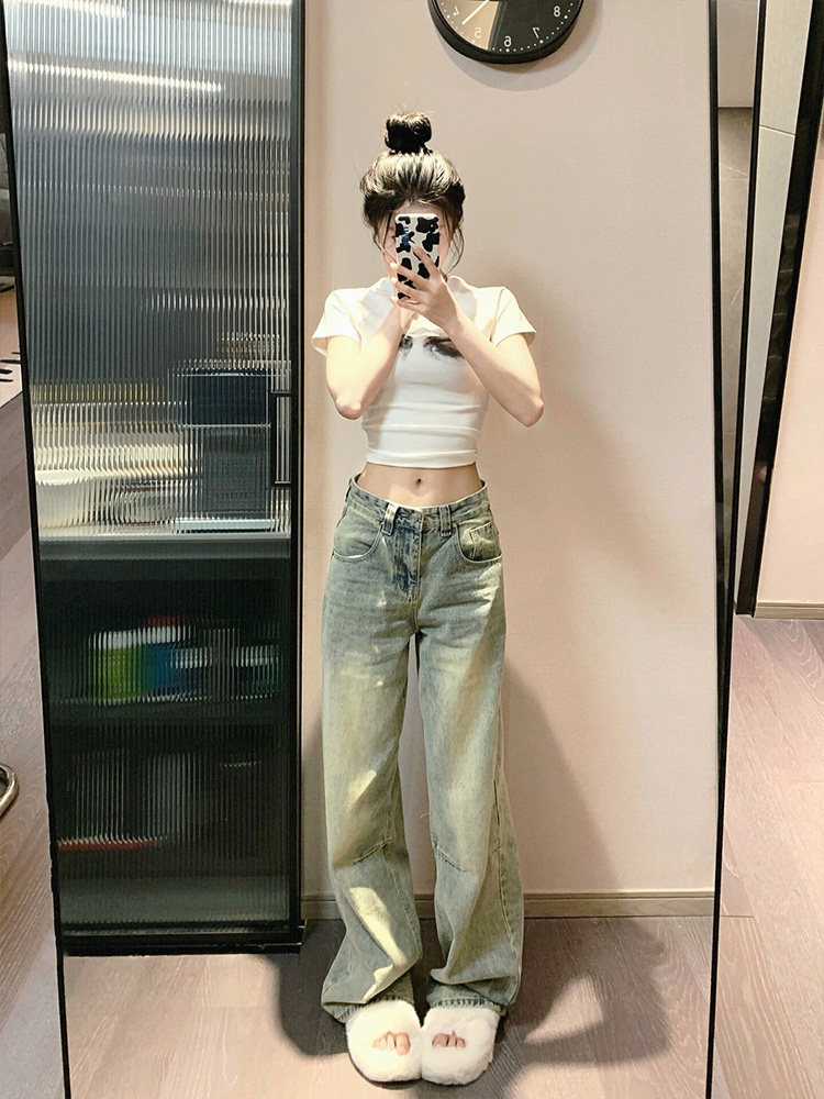 Ретро осенние джинсы, демисезонные штаны, в американском стиле, свободный прямой крой, стройный силуэт, по фигуре, подходит для подростков