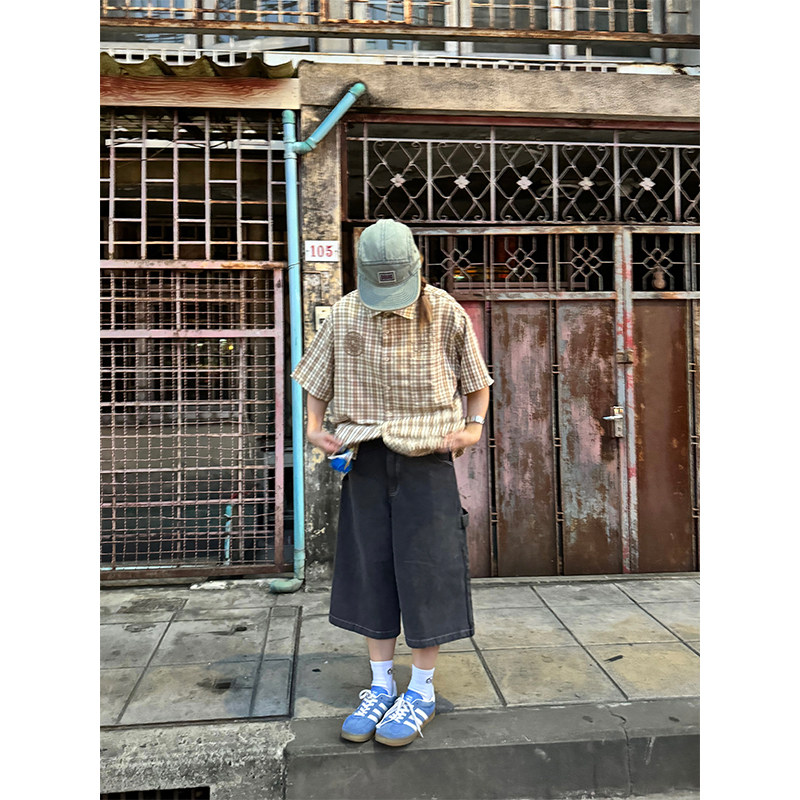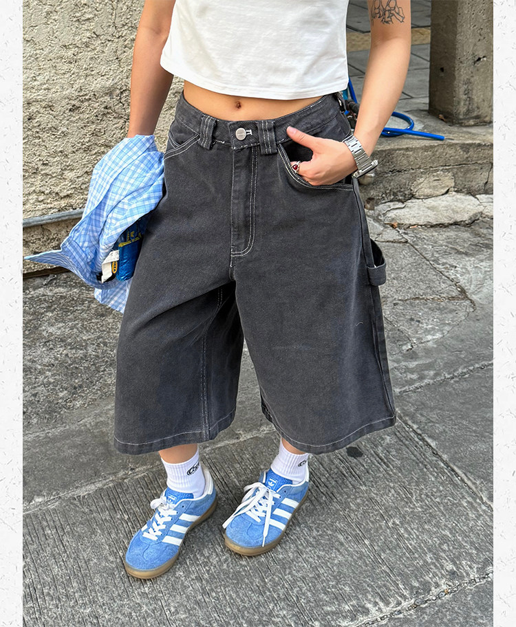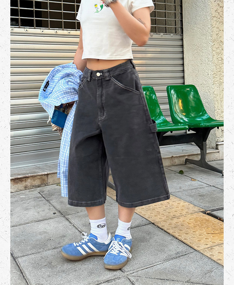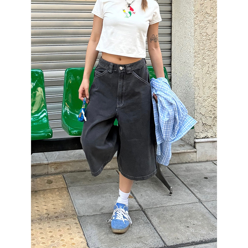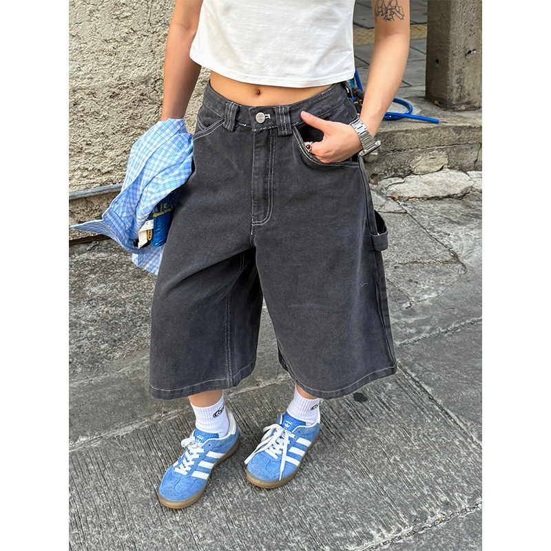 Ретро джинсовые шорты подходит для мужчин и женщин, штаны для отдыха, в американском стиле, свободный прямой крой
