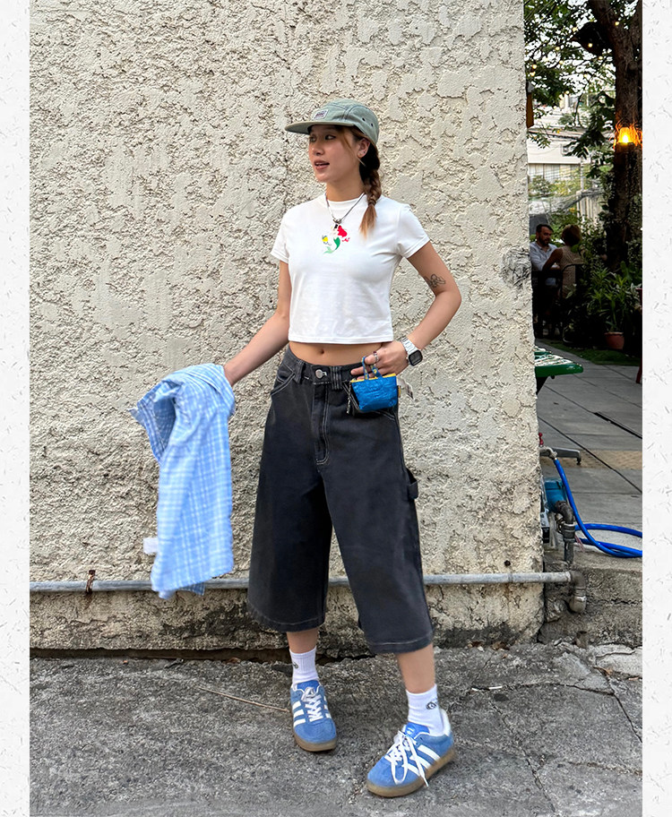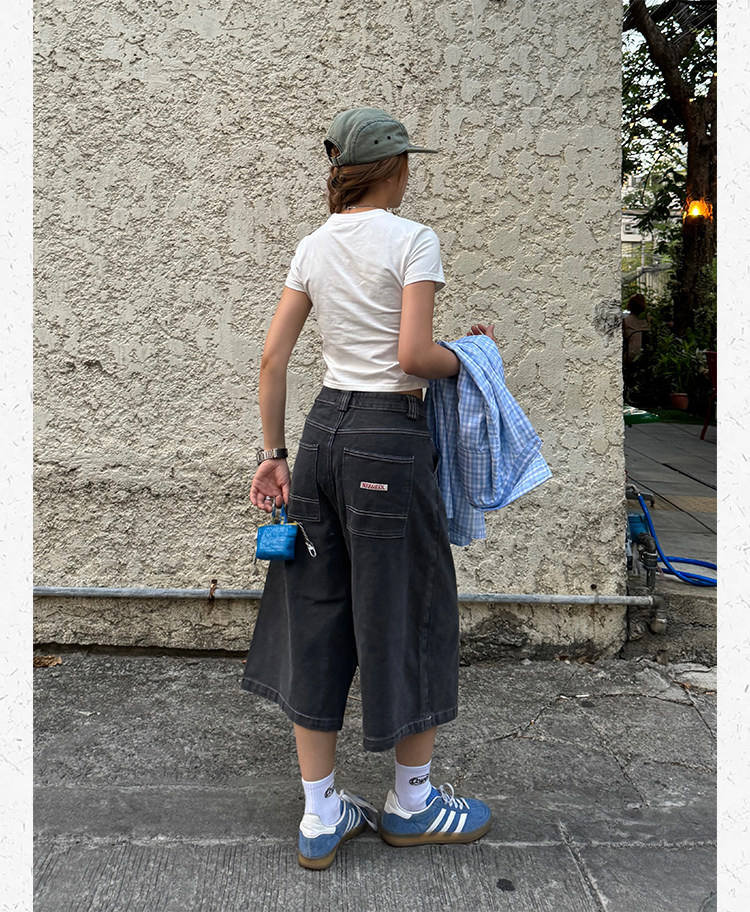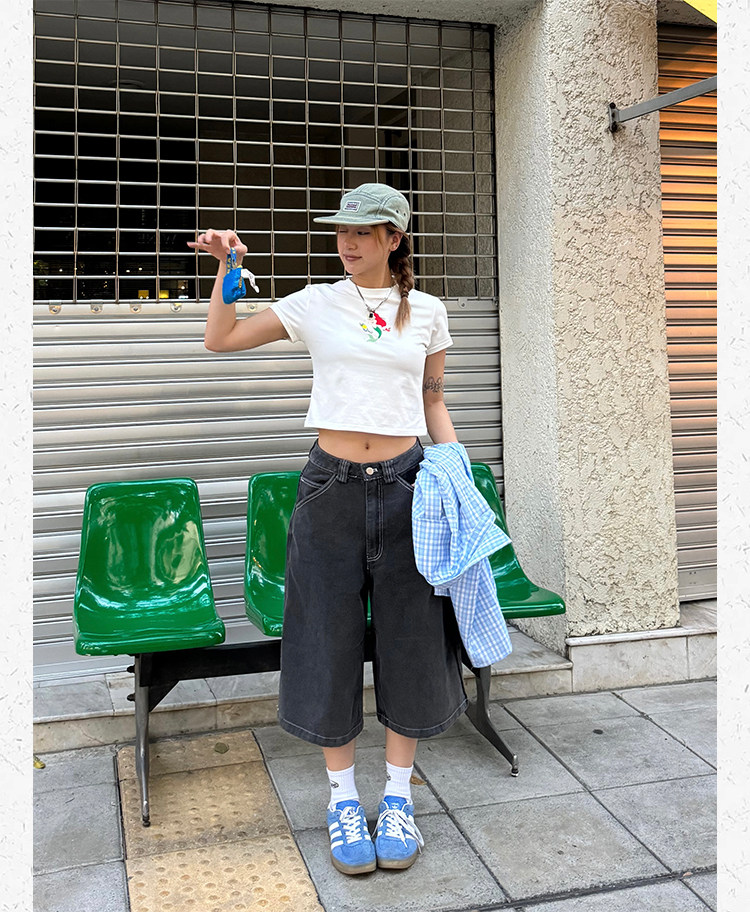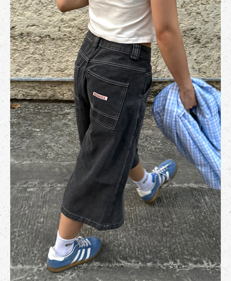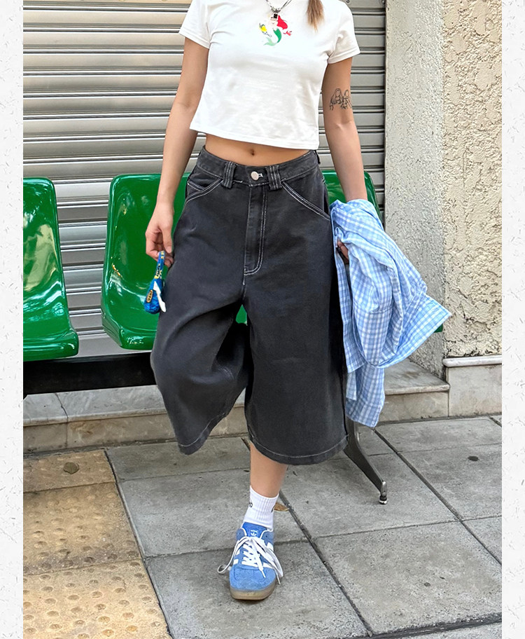 Ретро джинсовые шорты подходит для мужчин и женщин, штаны для отдыха, в американском стиле, свободный прямой крой