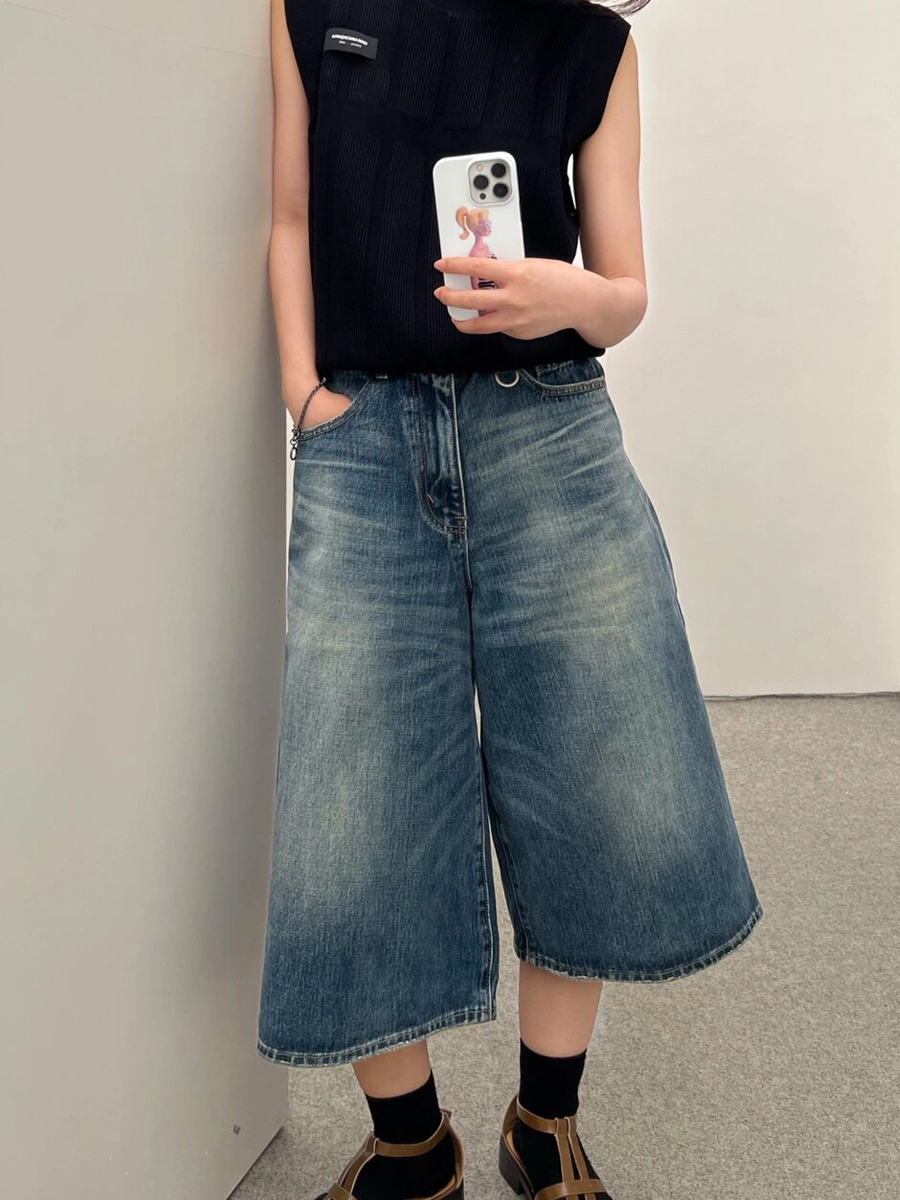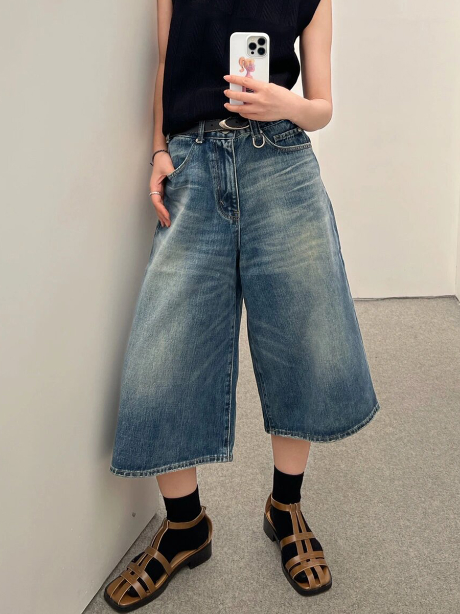 Ретро джинсовая юбка, шорты, летние штаны, в американском стиле, свободный крой