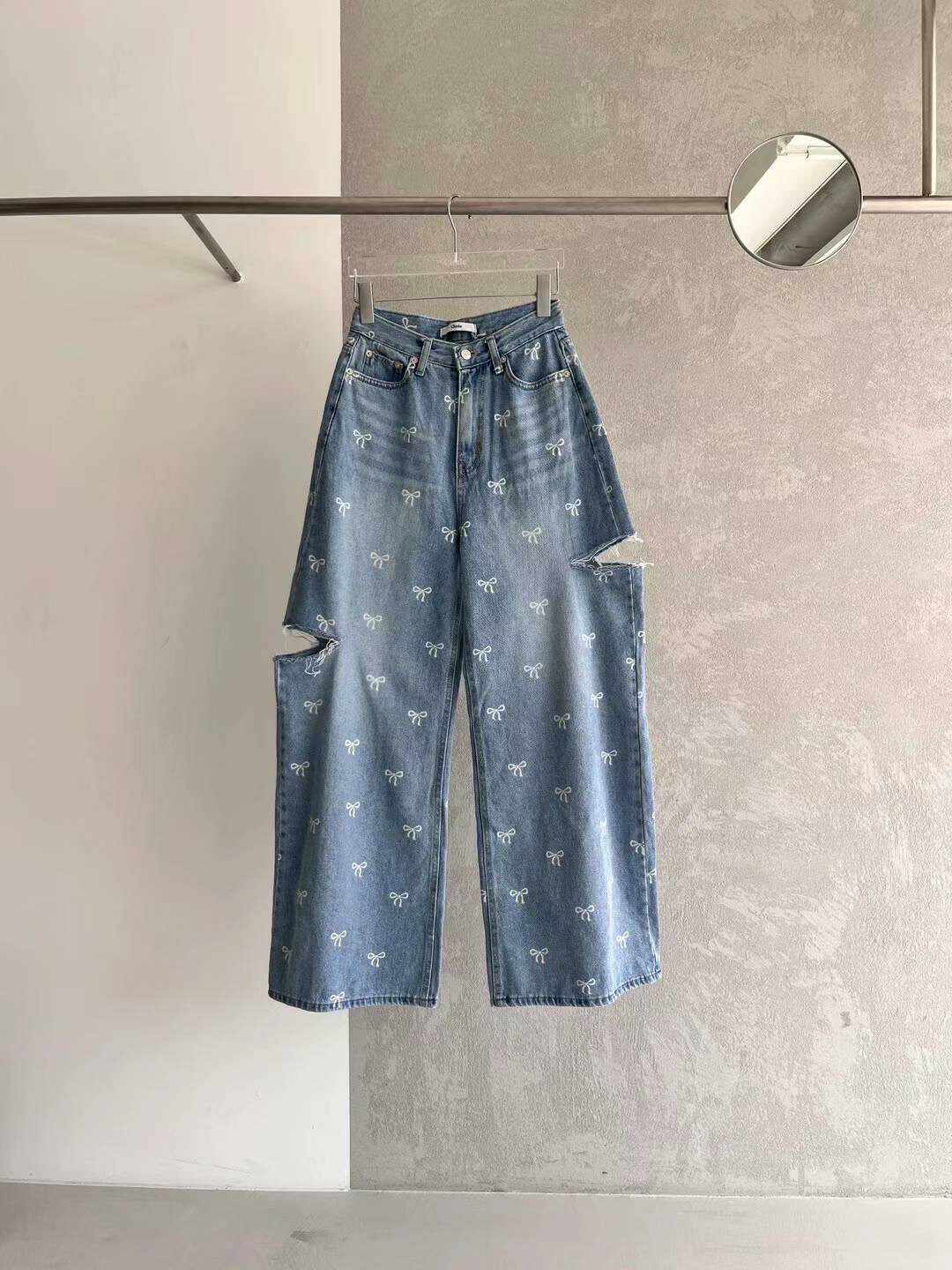 Aray Korean Agag Agent Clode Spring и Summer New Style Bow Girl Slit Slit Roof Jeans
