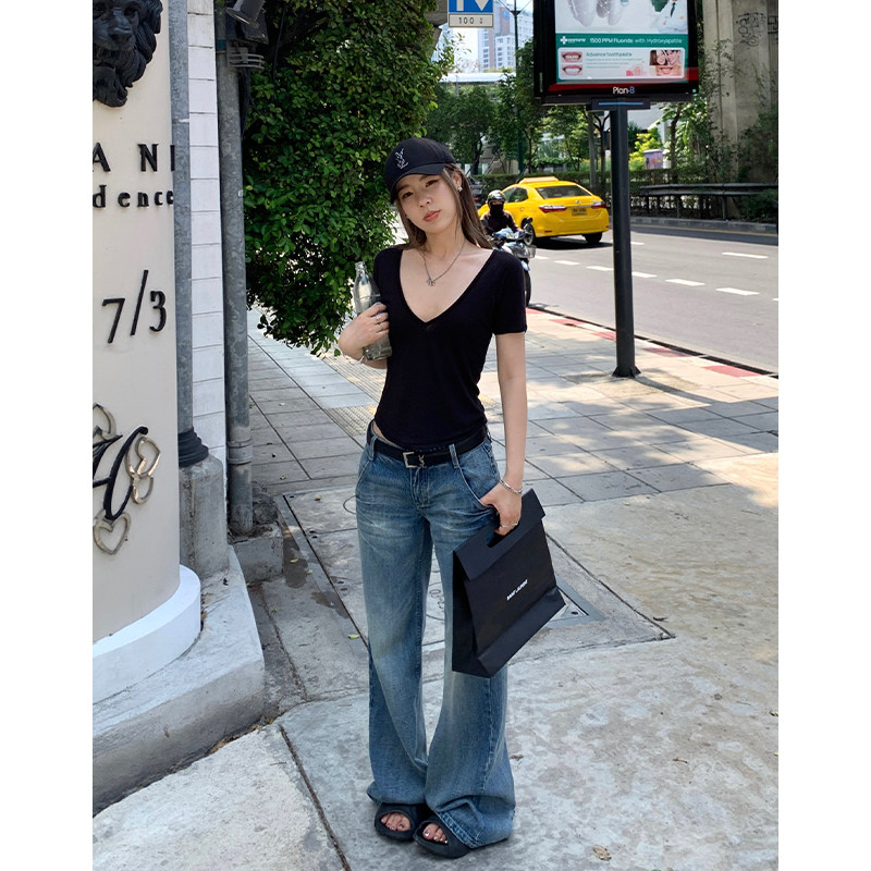 Xzichic Комфортные штаны, весенние джинсы, свободный прямой крой, тренд сезона