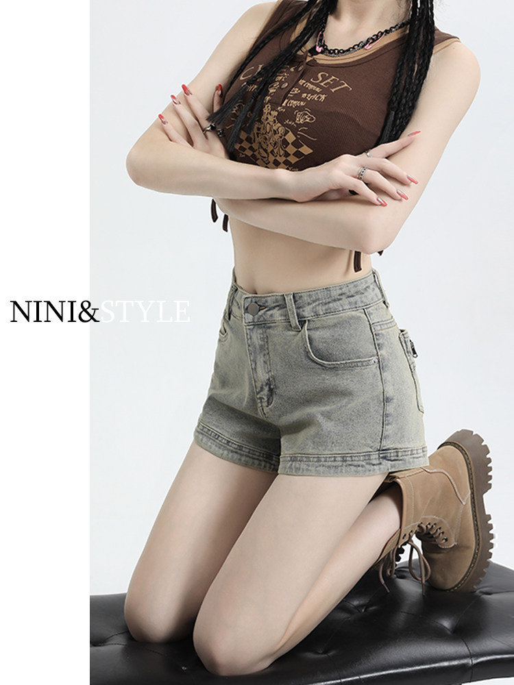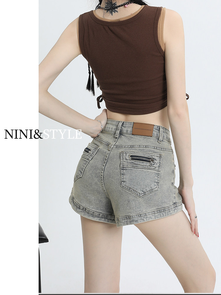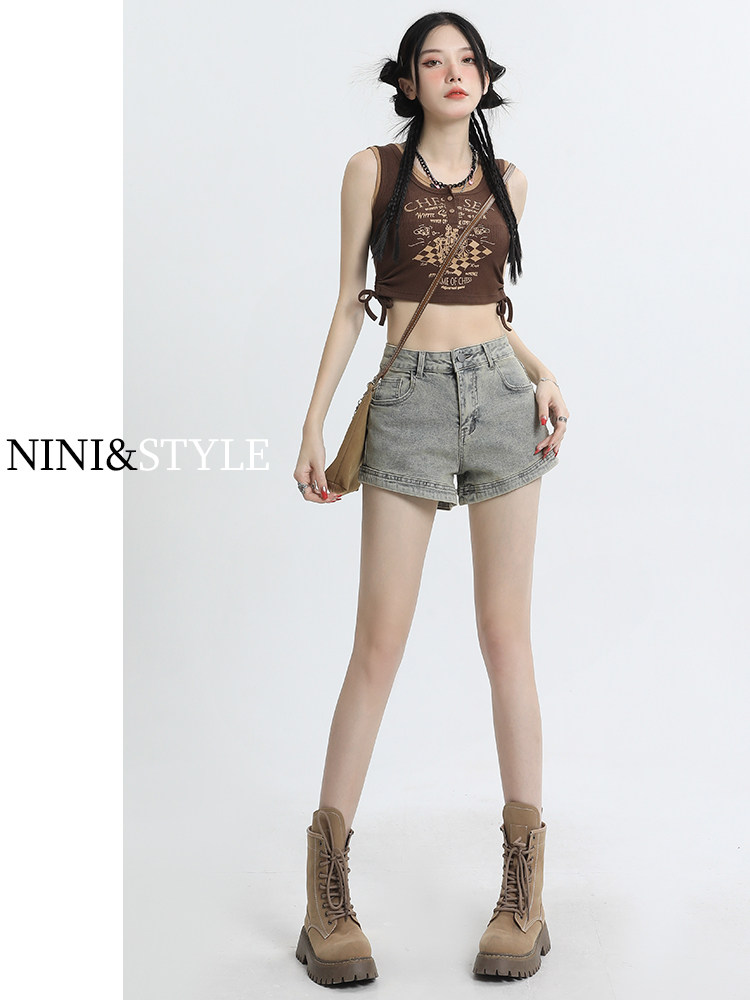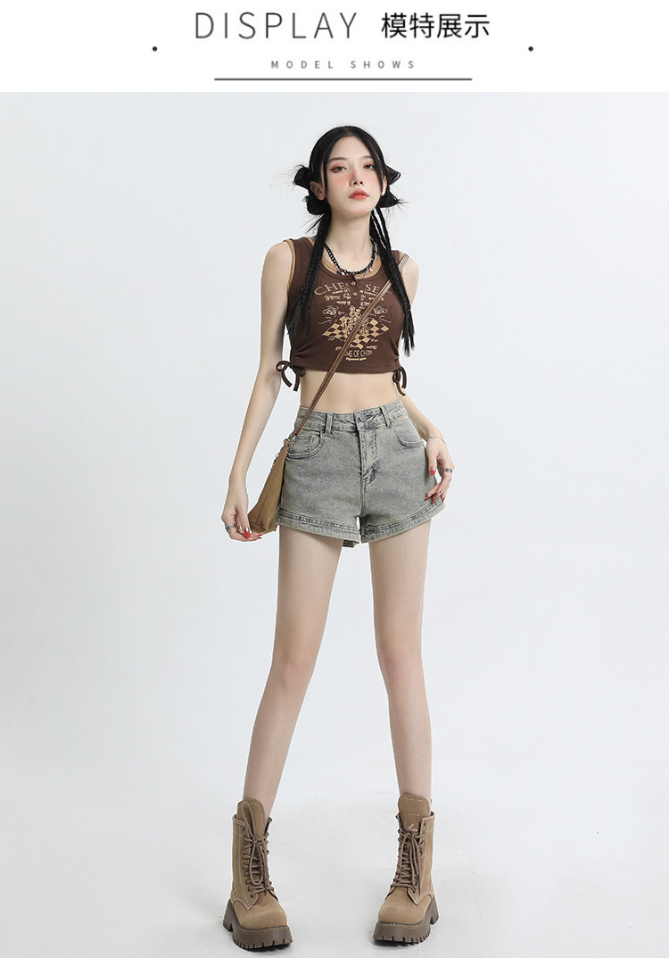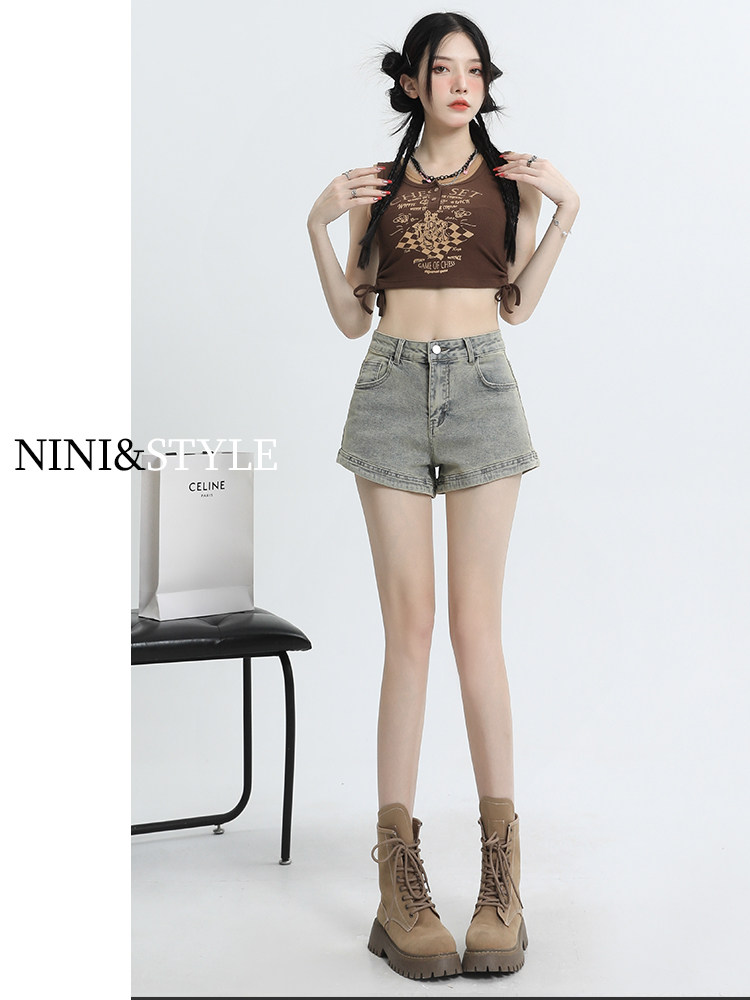 Джинсовая юбка, шорты, эластичные штаны, в американском стиле, высокая талия, 2024 года, А-силуэт