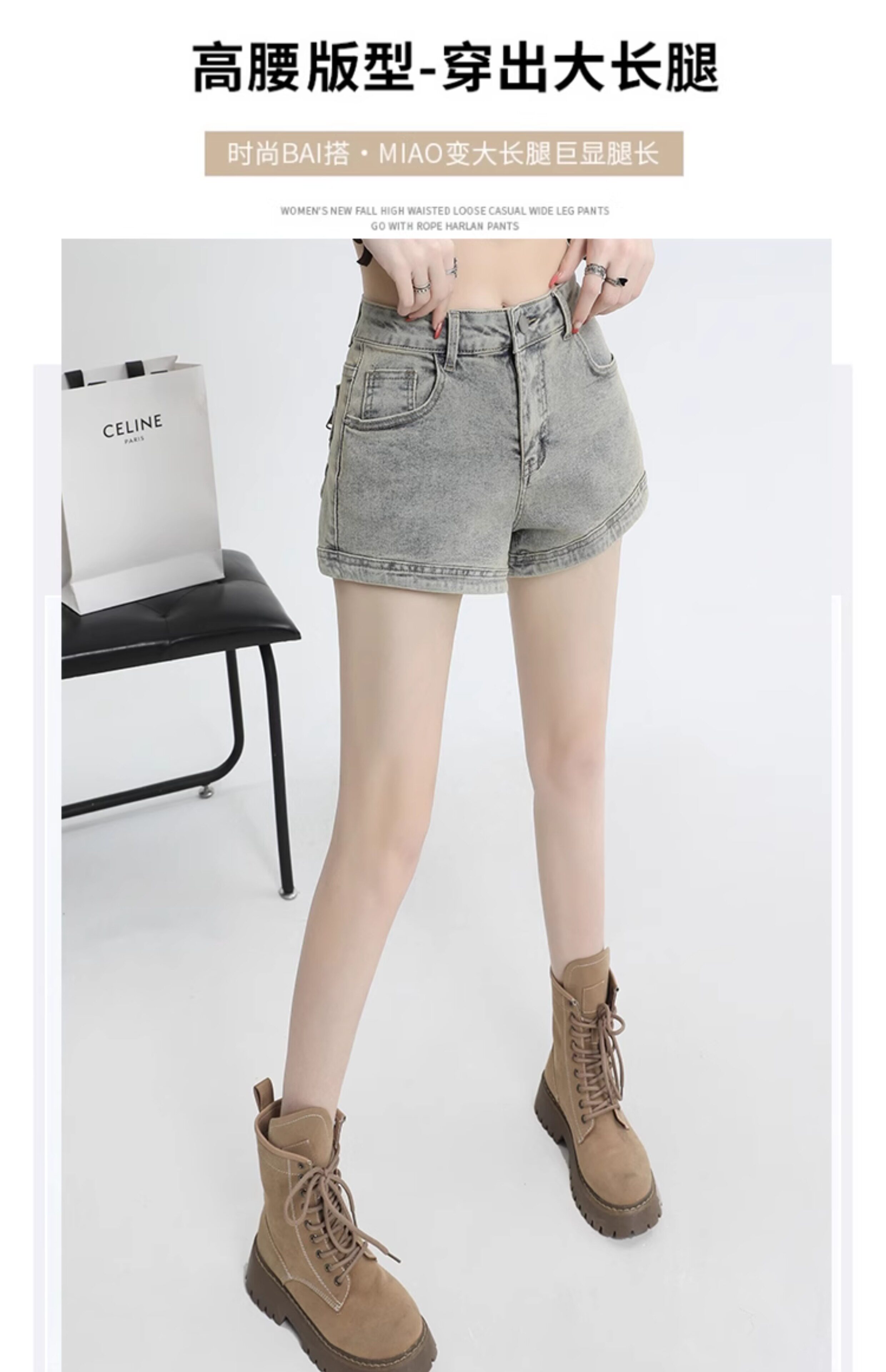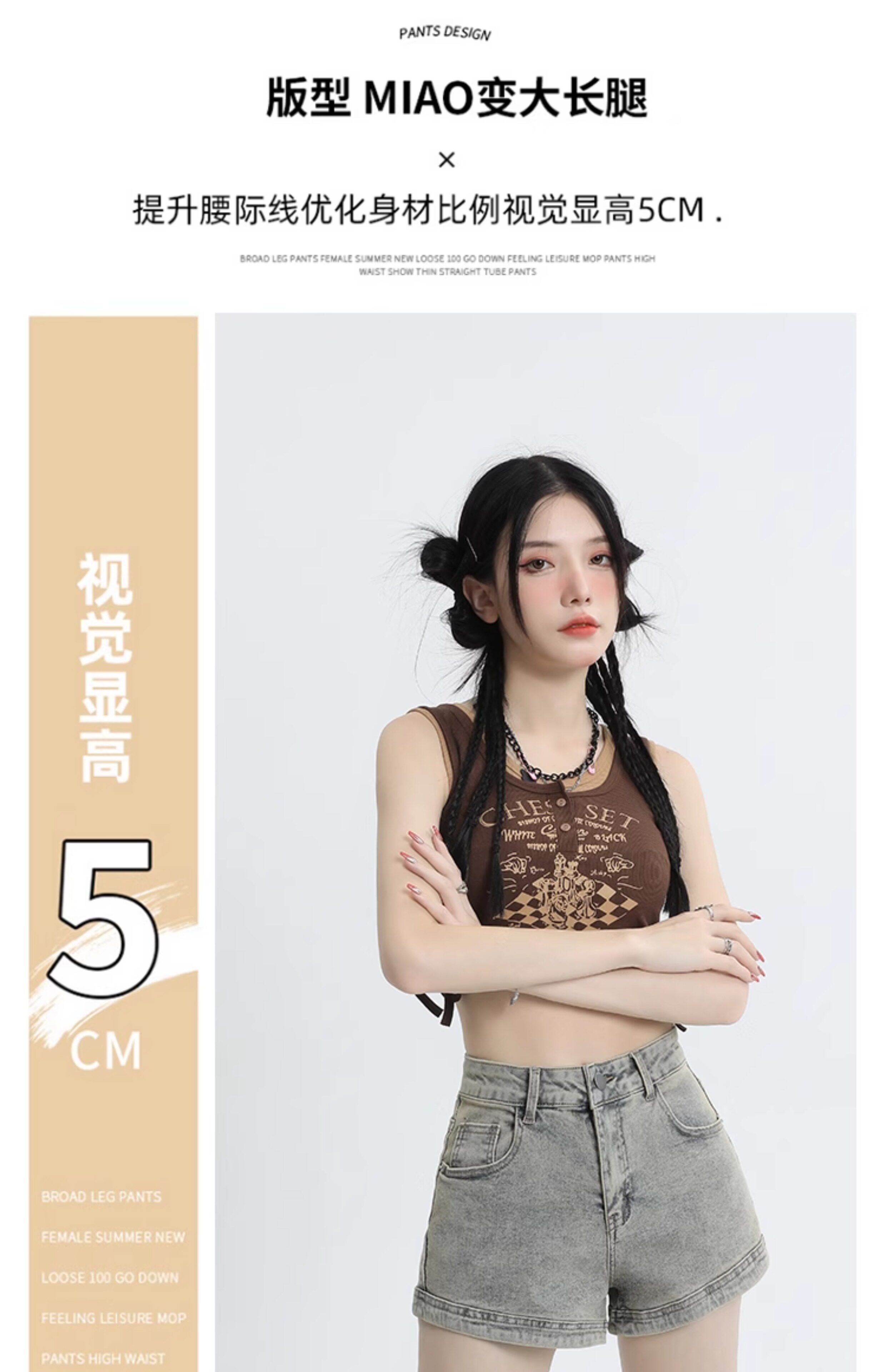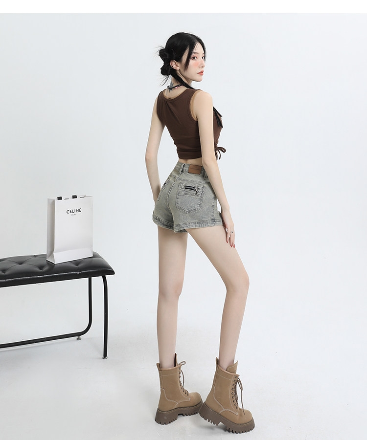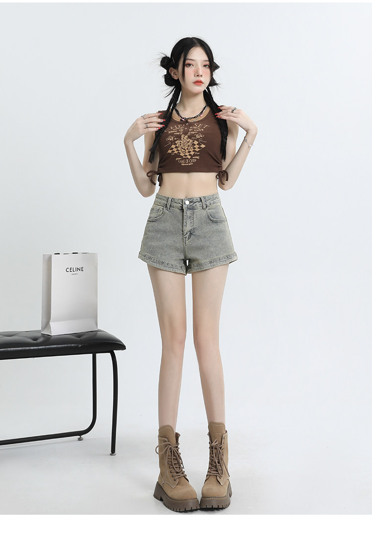 Джинсовая юбка, шорты, эластичные штаны, в американском стиле, высокая талия, 2024 года, А-силуэт