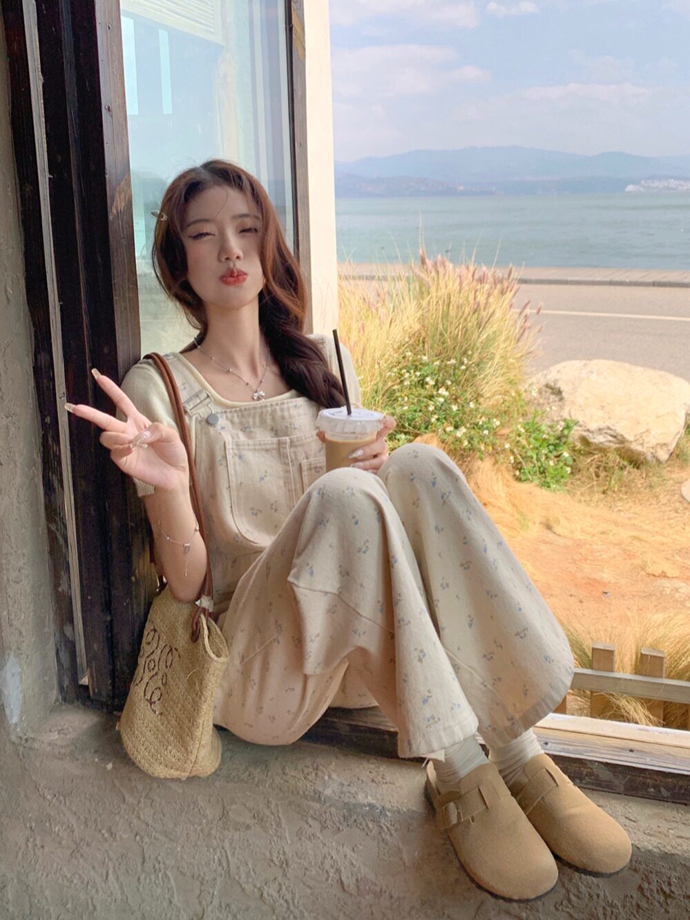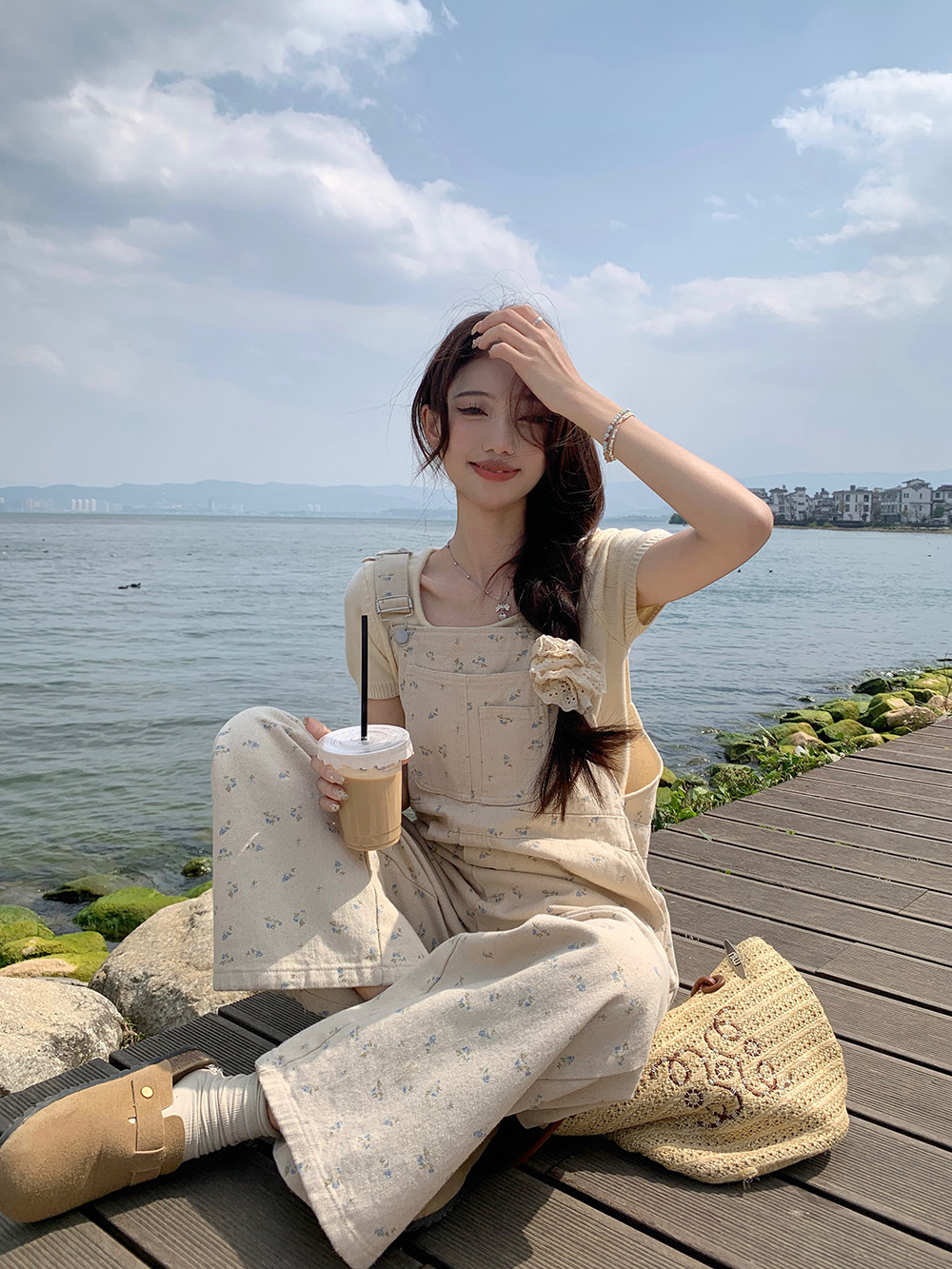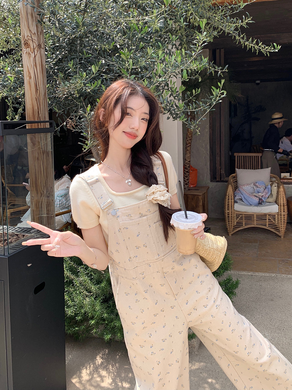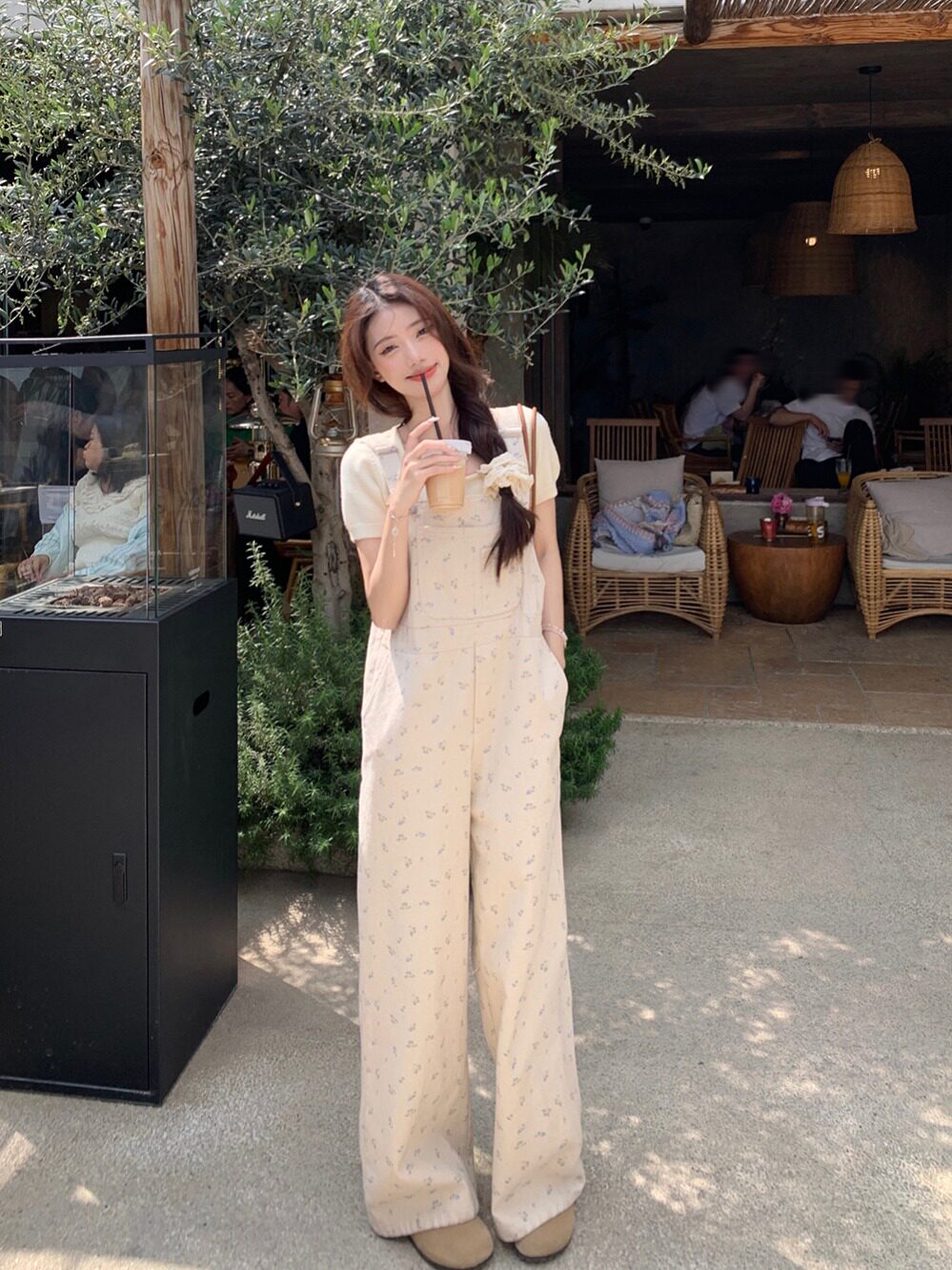 Джинсовый весенний комбинезон, летние дизайнерские штаны для отдыха, цветочный принт, тренд сезона, свободный прямой крой, высокая талия, оверсайз