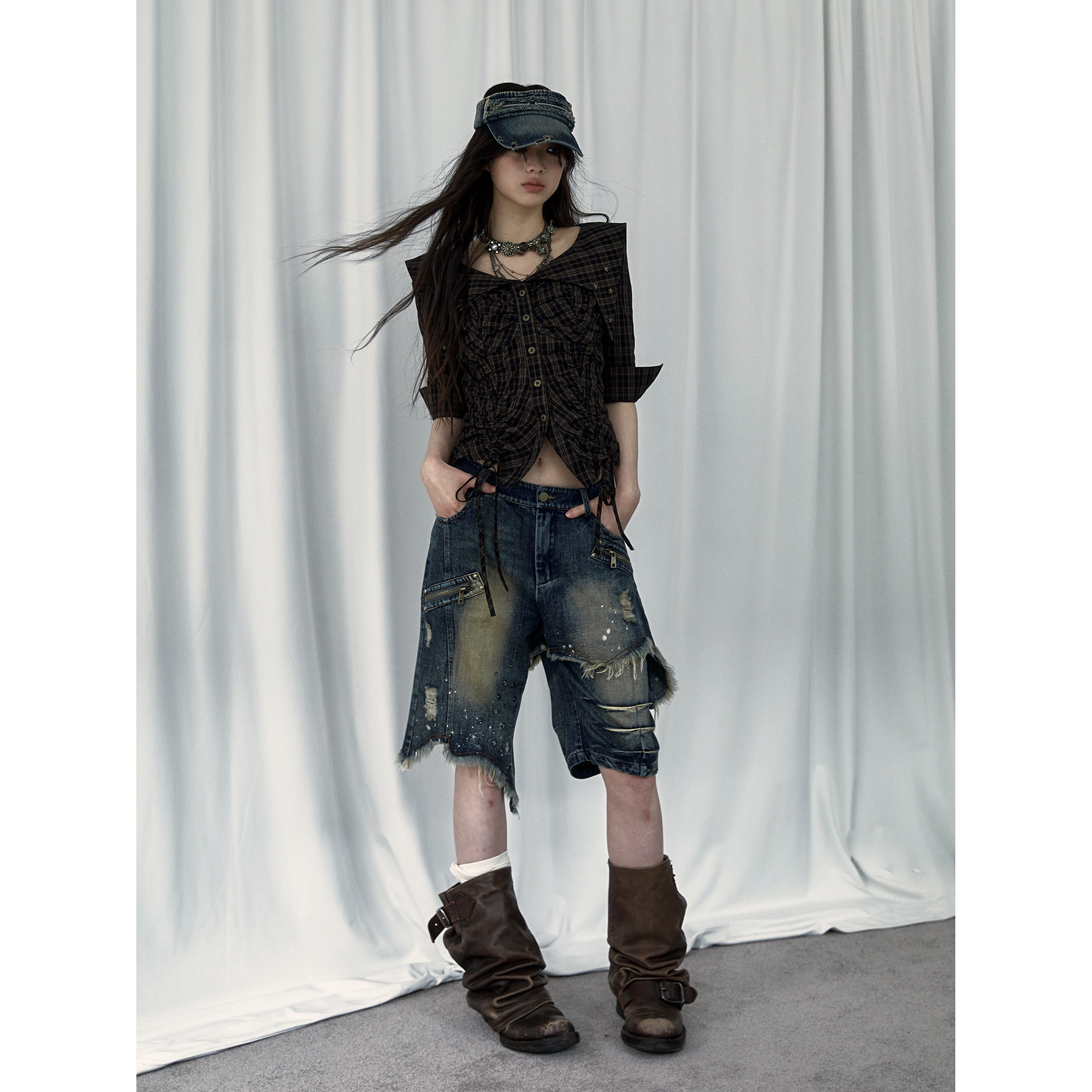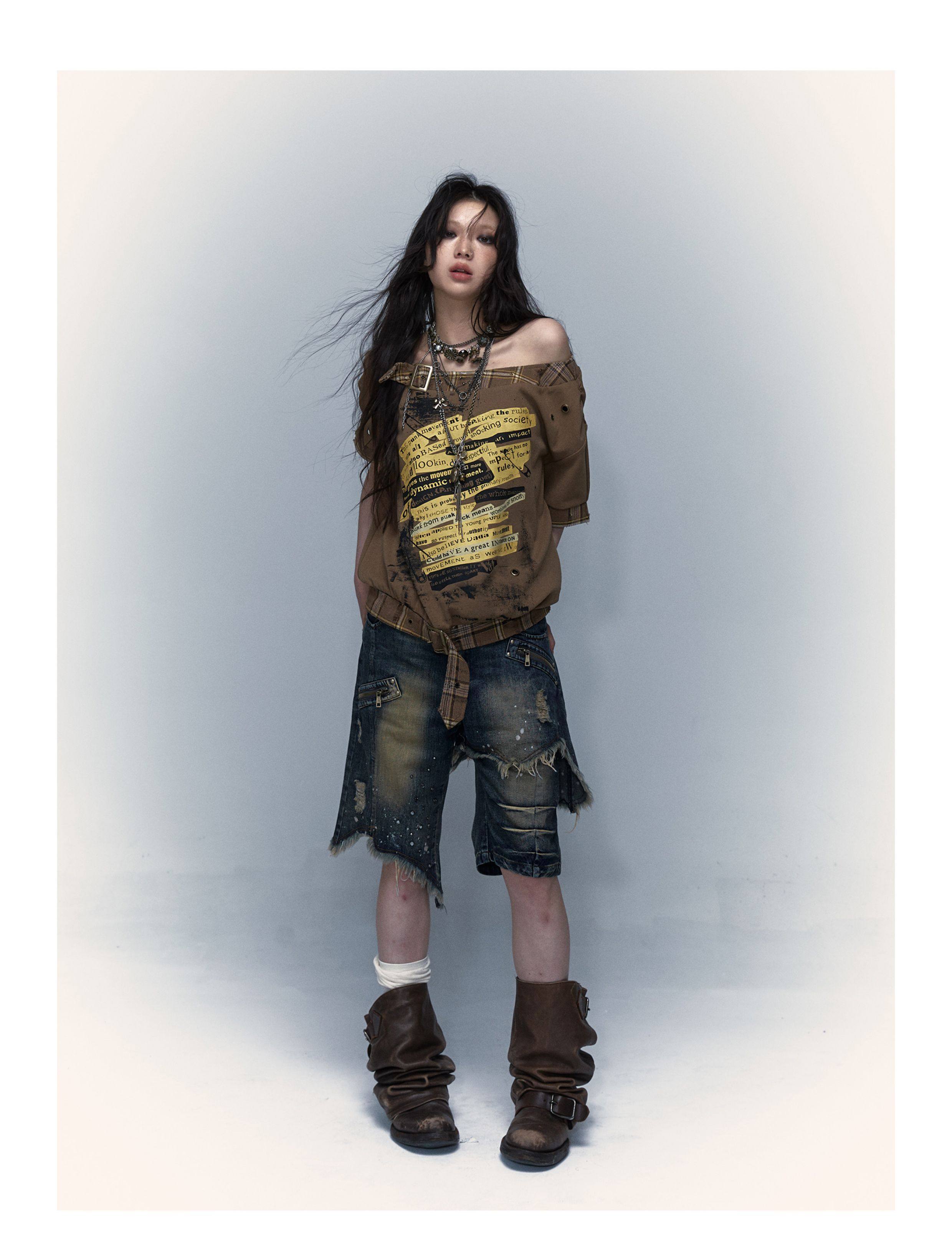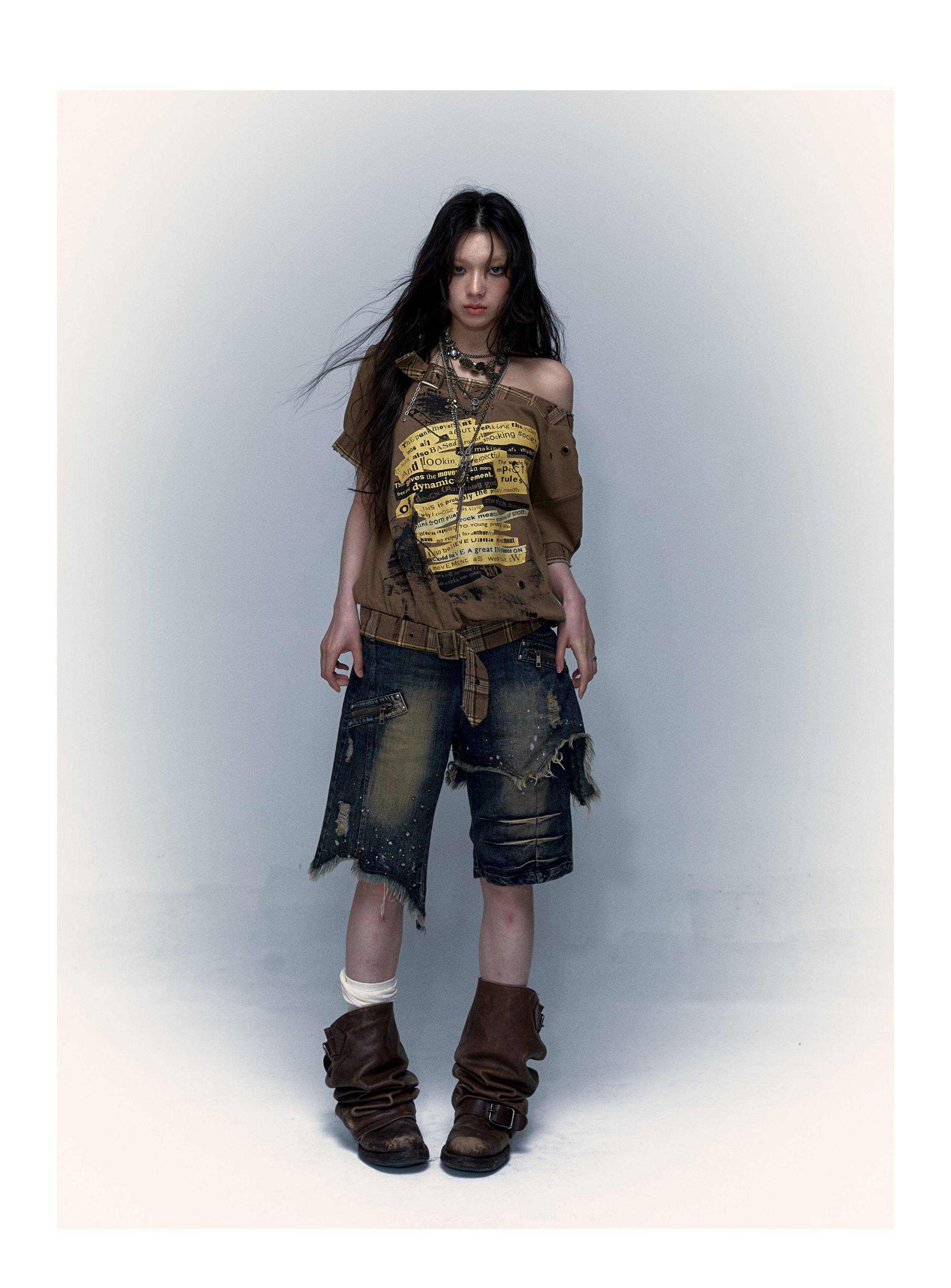 NOROMANCE Джинсы, дизайнерские штаны, свободный прямой крой, в стиле панк, стиль