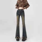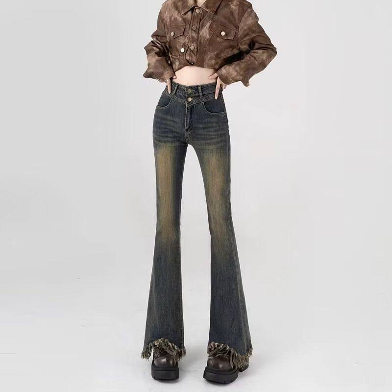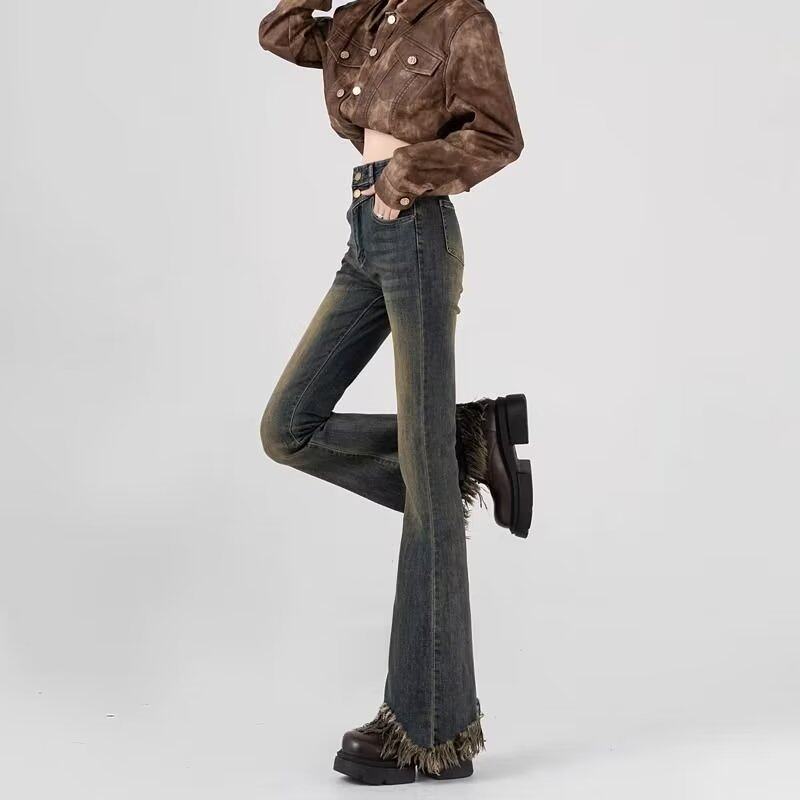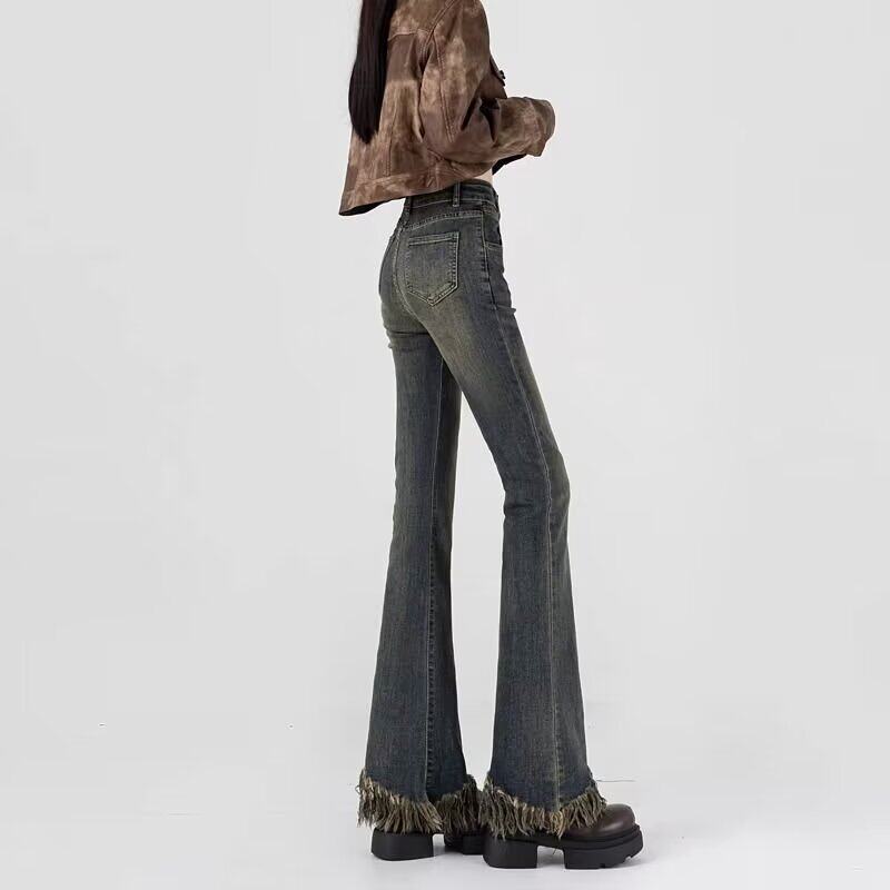 Ретро джинсы, летние штаны, эластичная пуля с кисточками, штаны-клёш, высокая талия, подходит для подростков, по фигуре