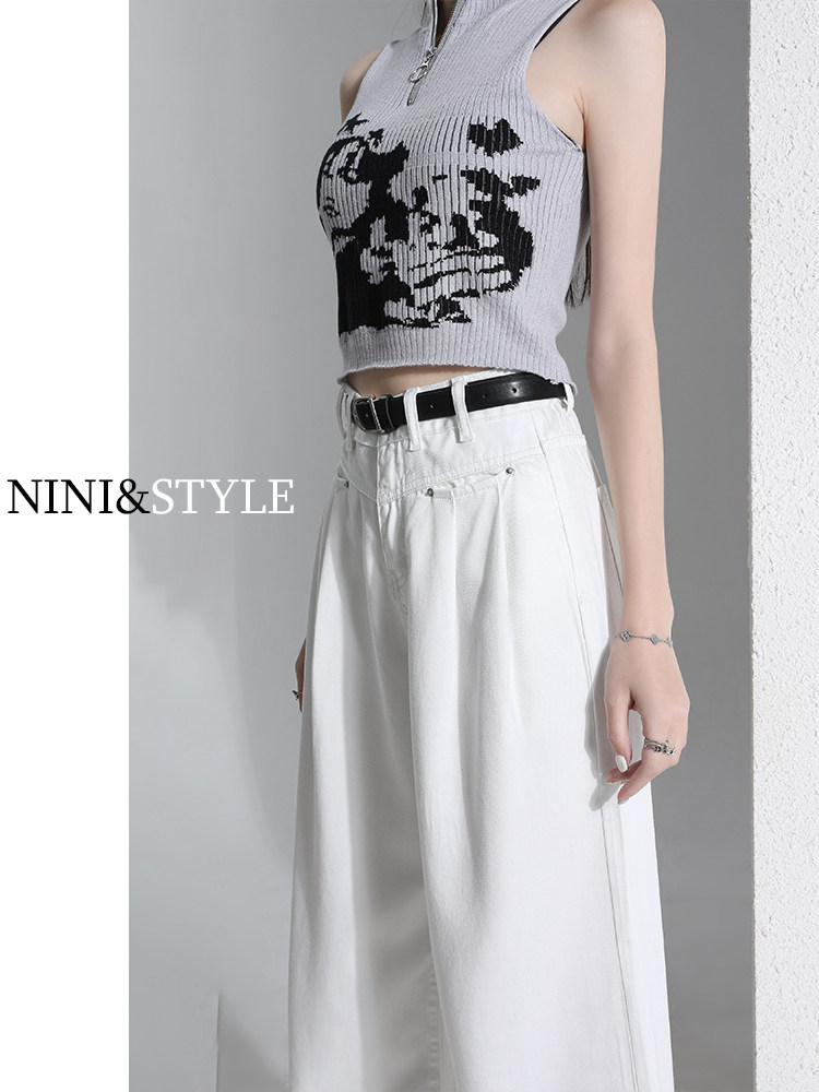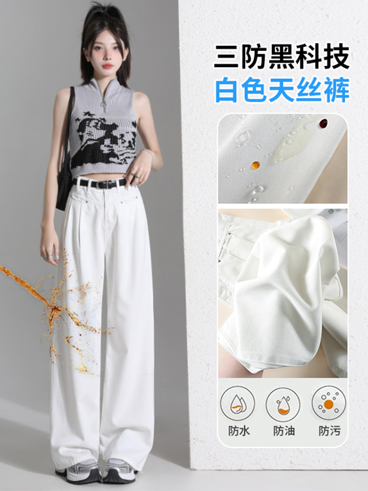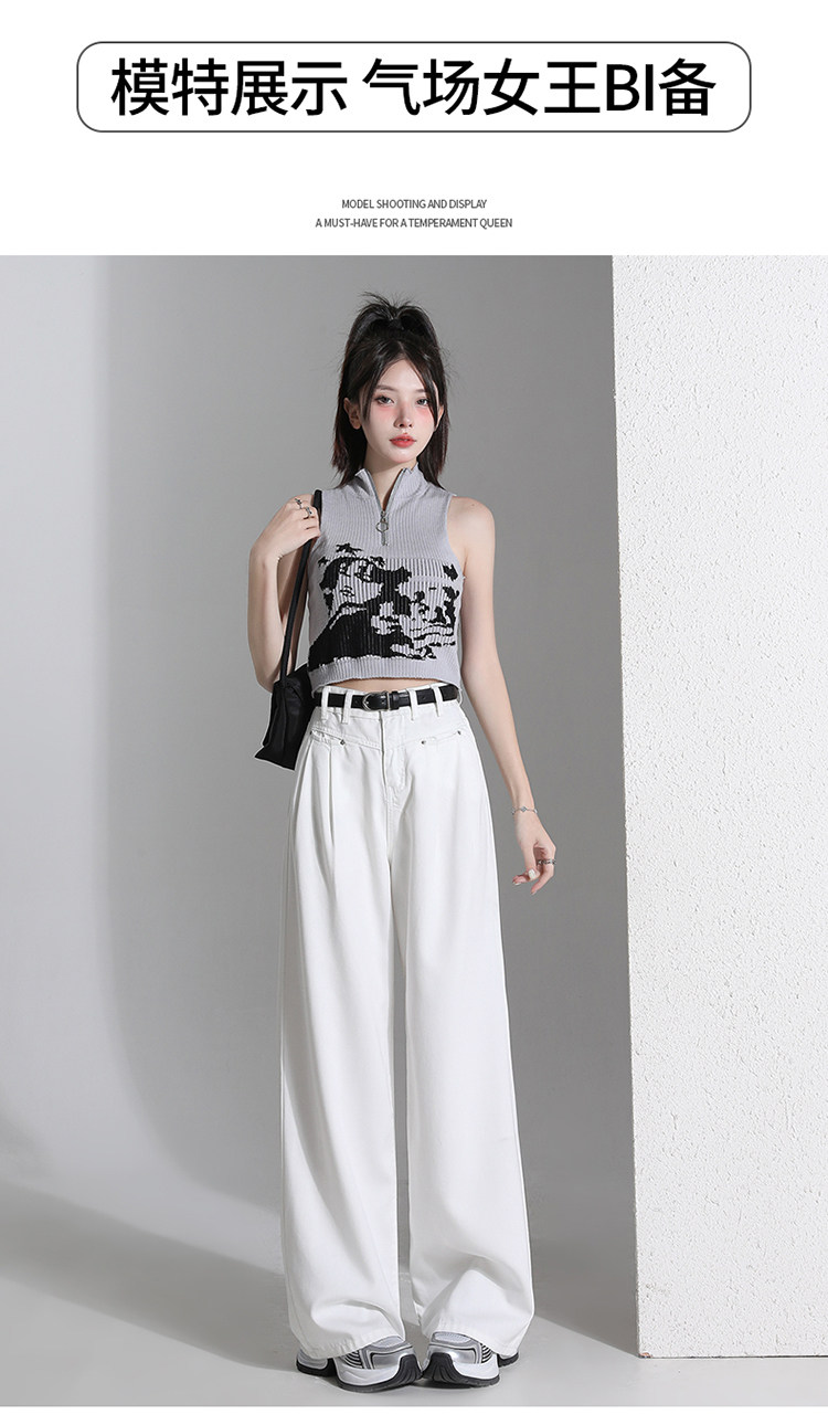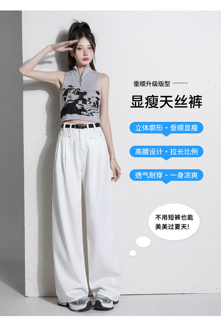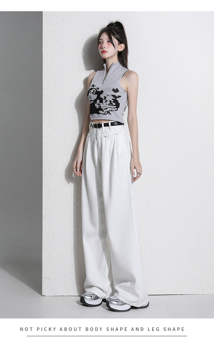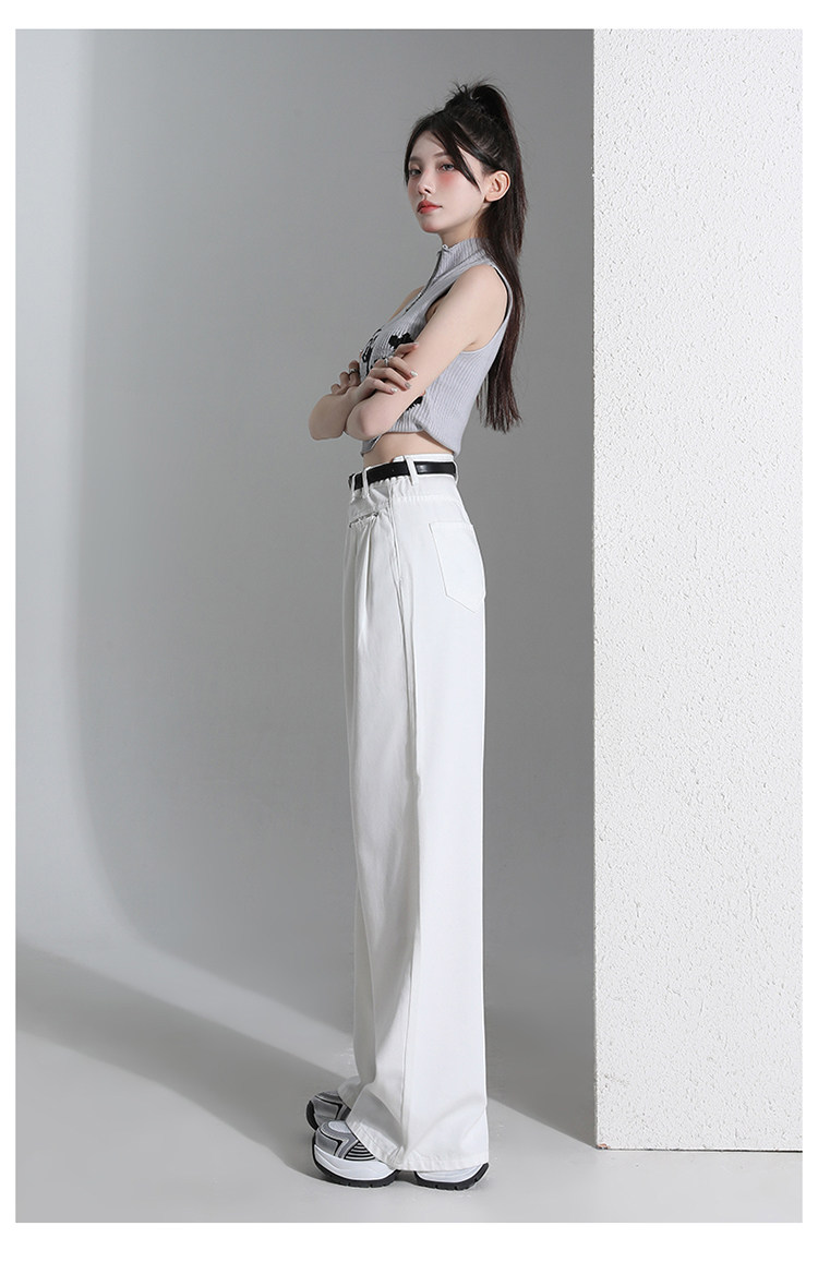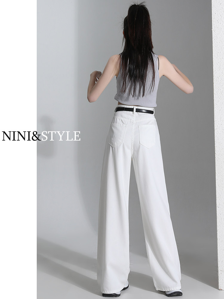 Белые джинсы, летние штаны, высокая талия, свободный прямой крой, стройный силуэт
