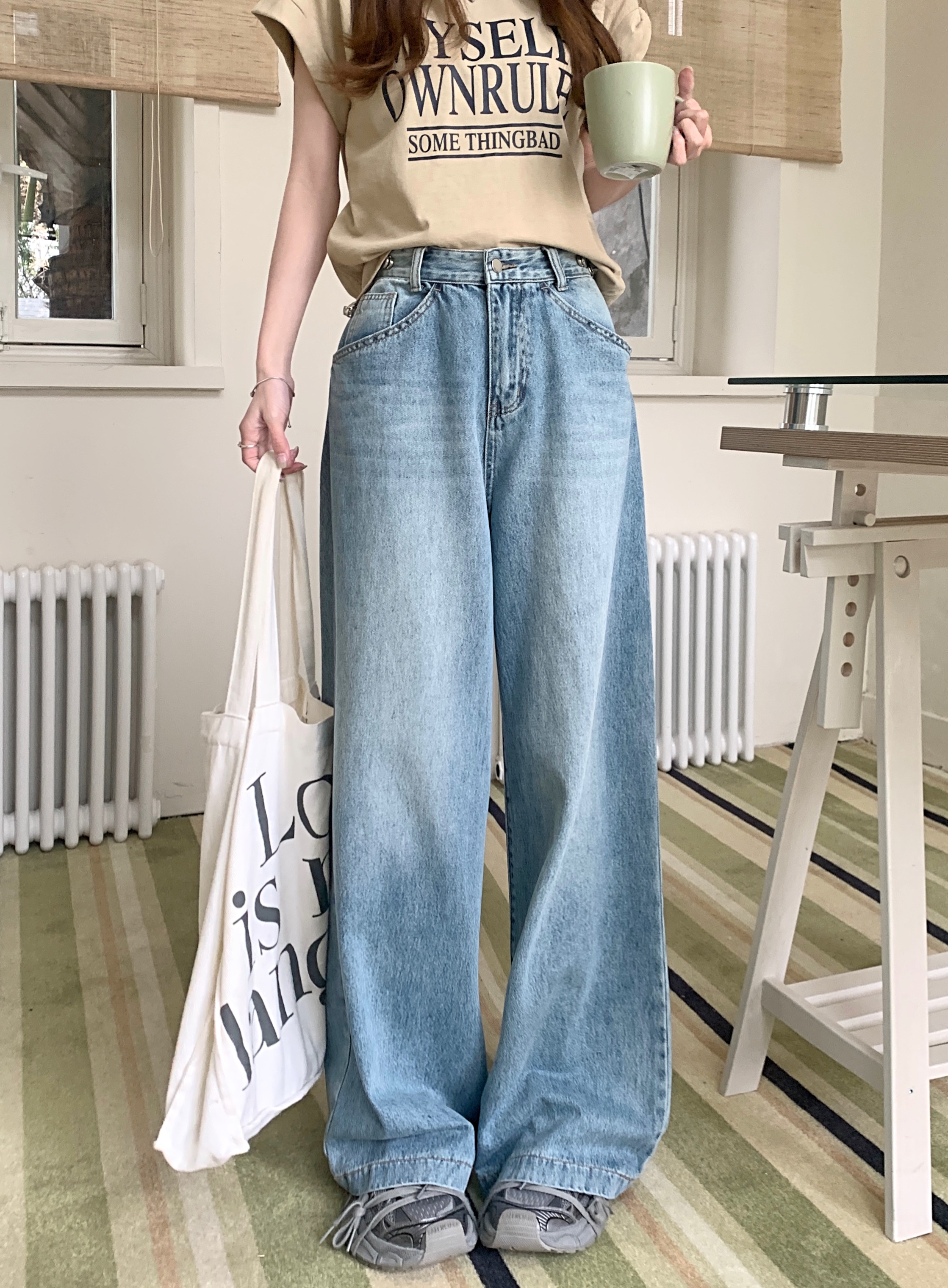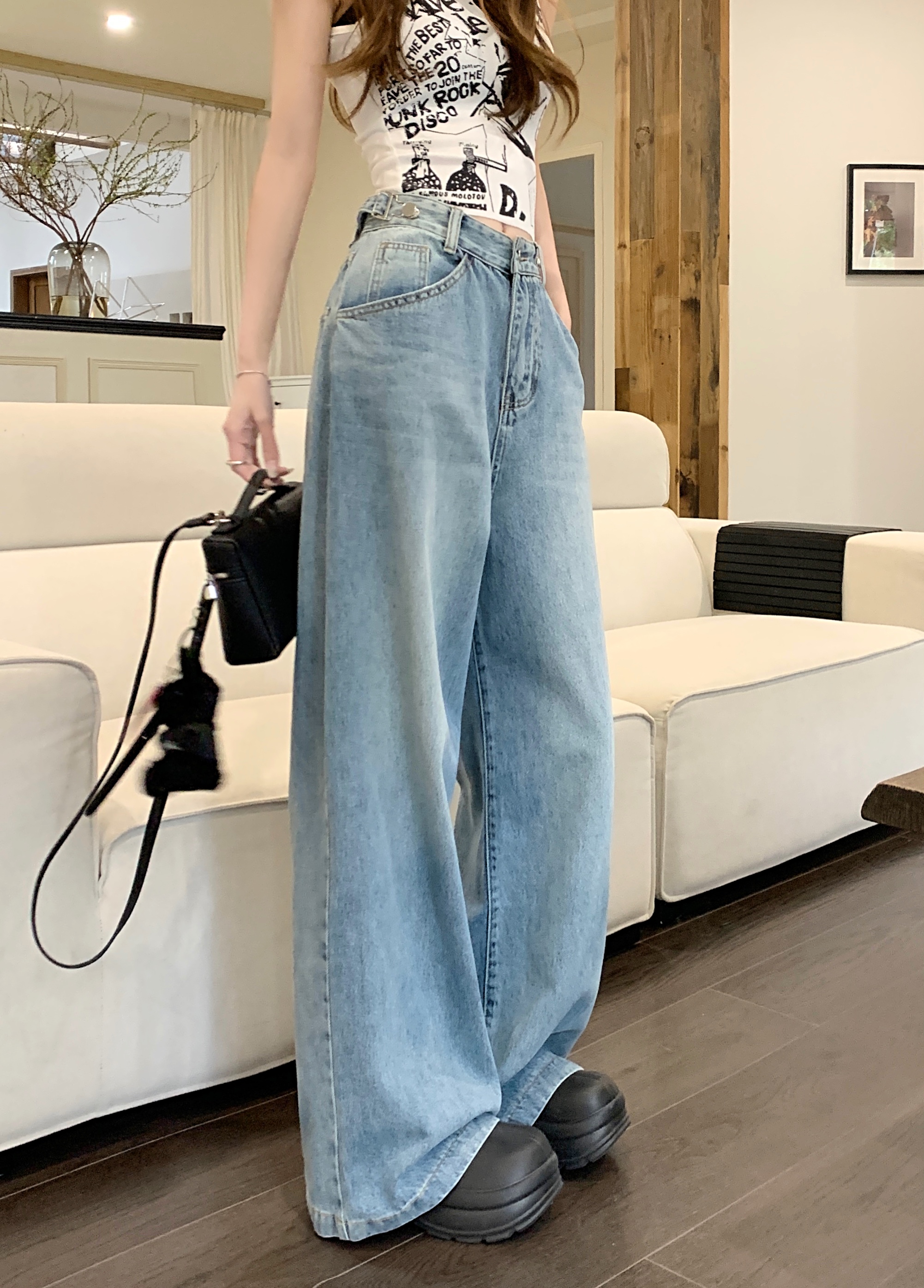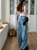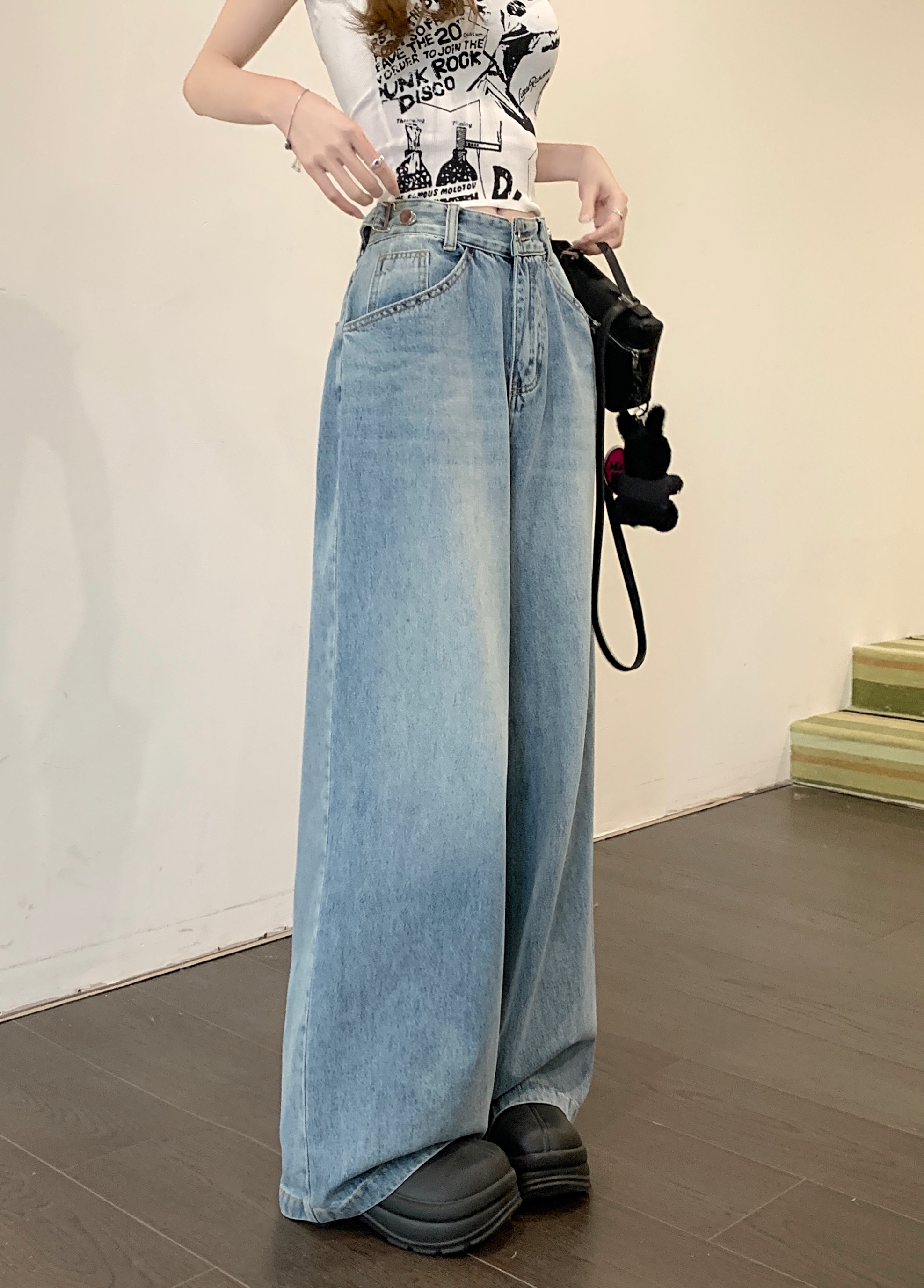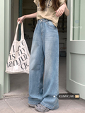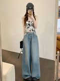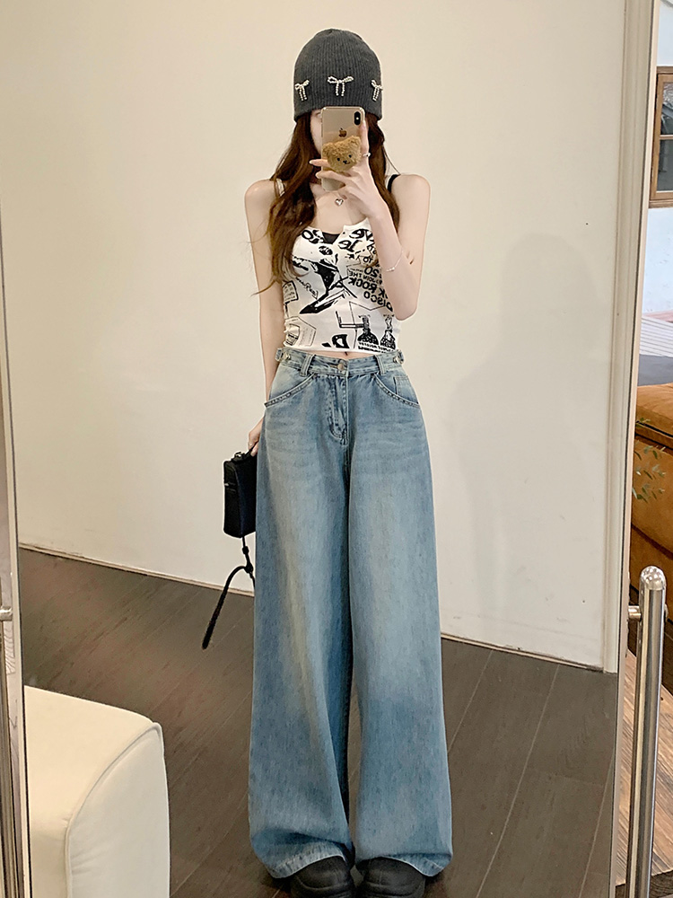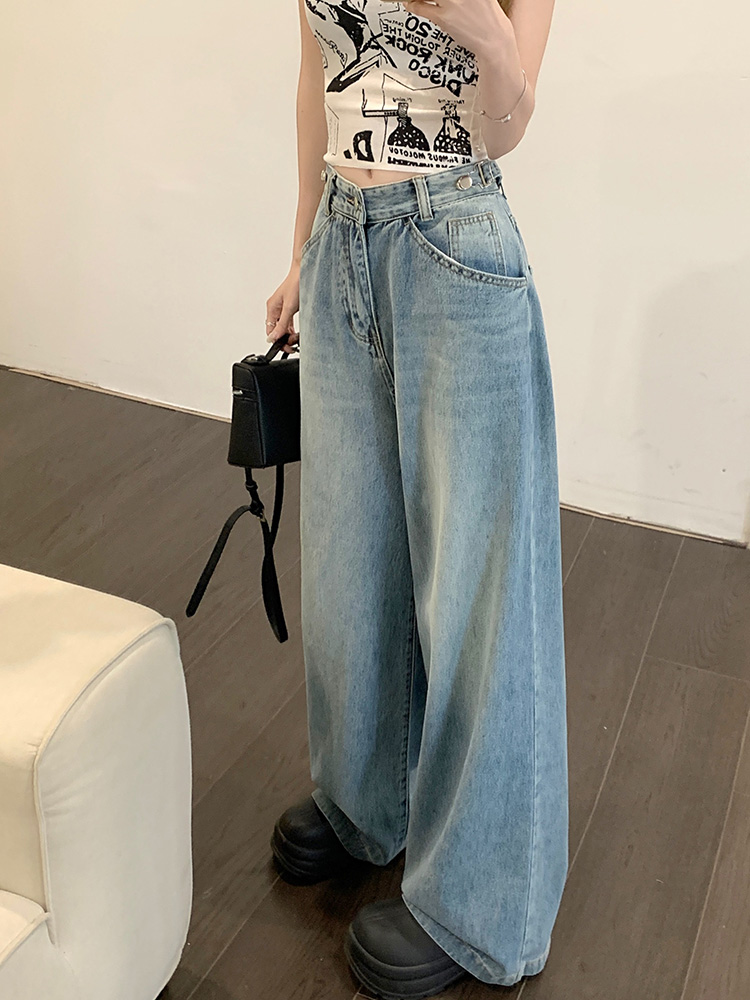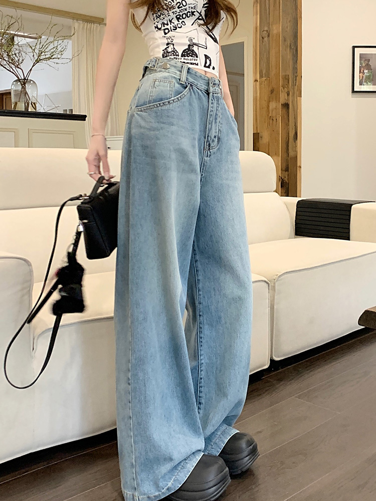 Ретро синие штаны, осенние прямые свободные джинсы, свободный прямой крой, высокая талия