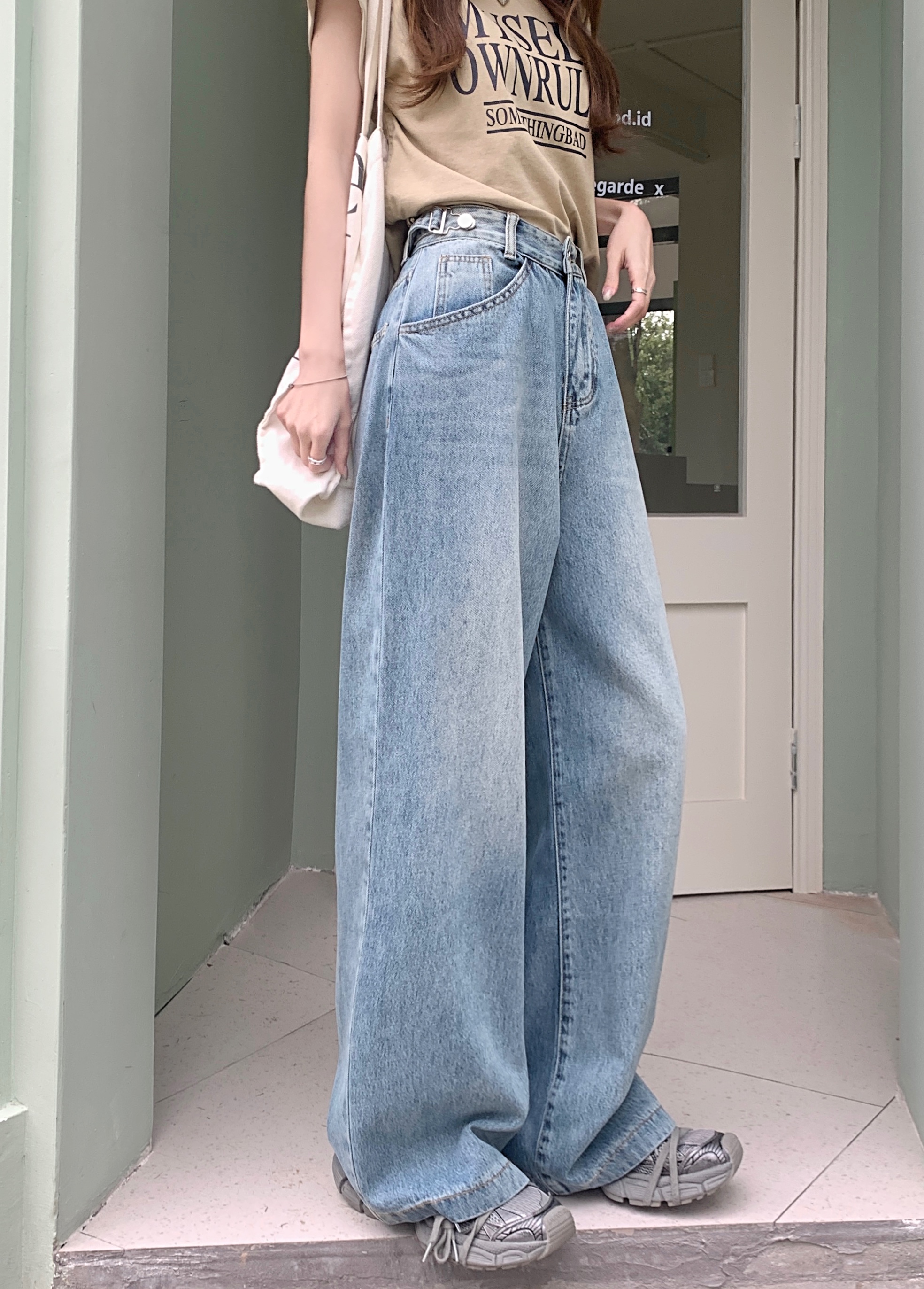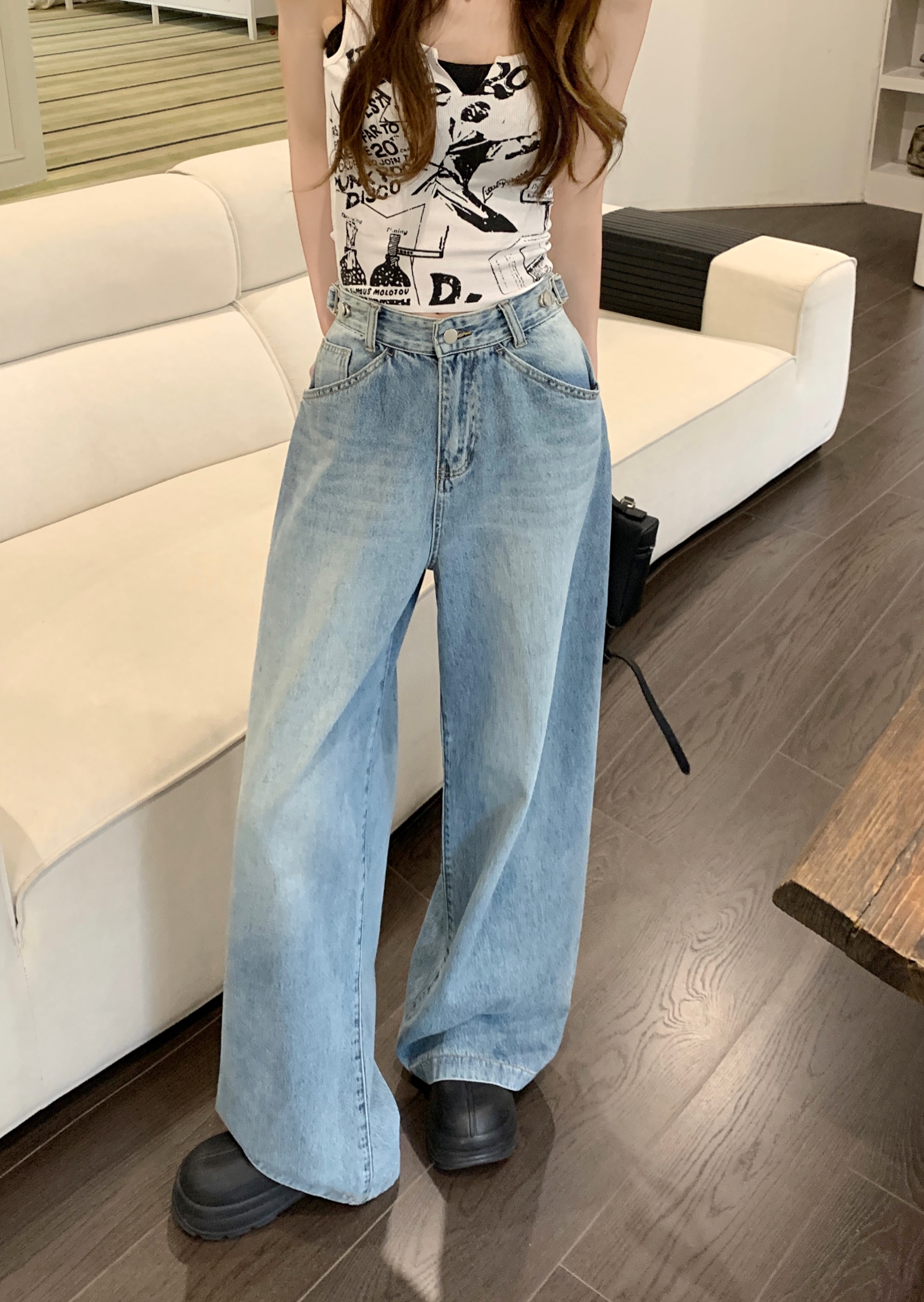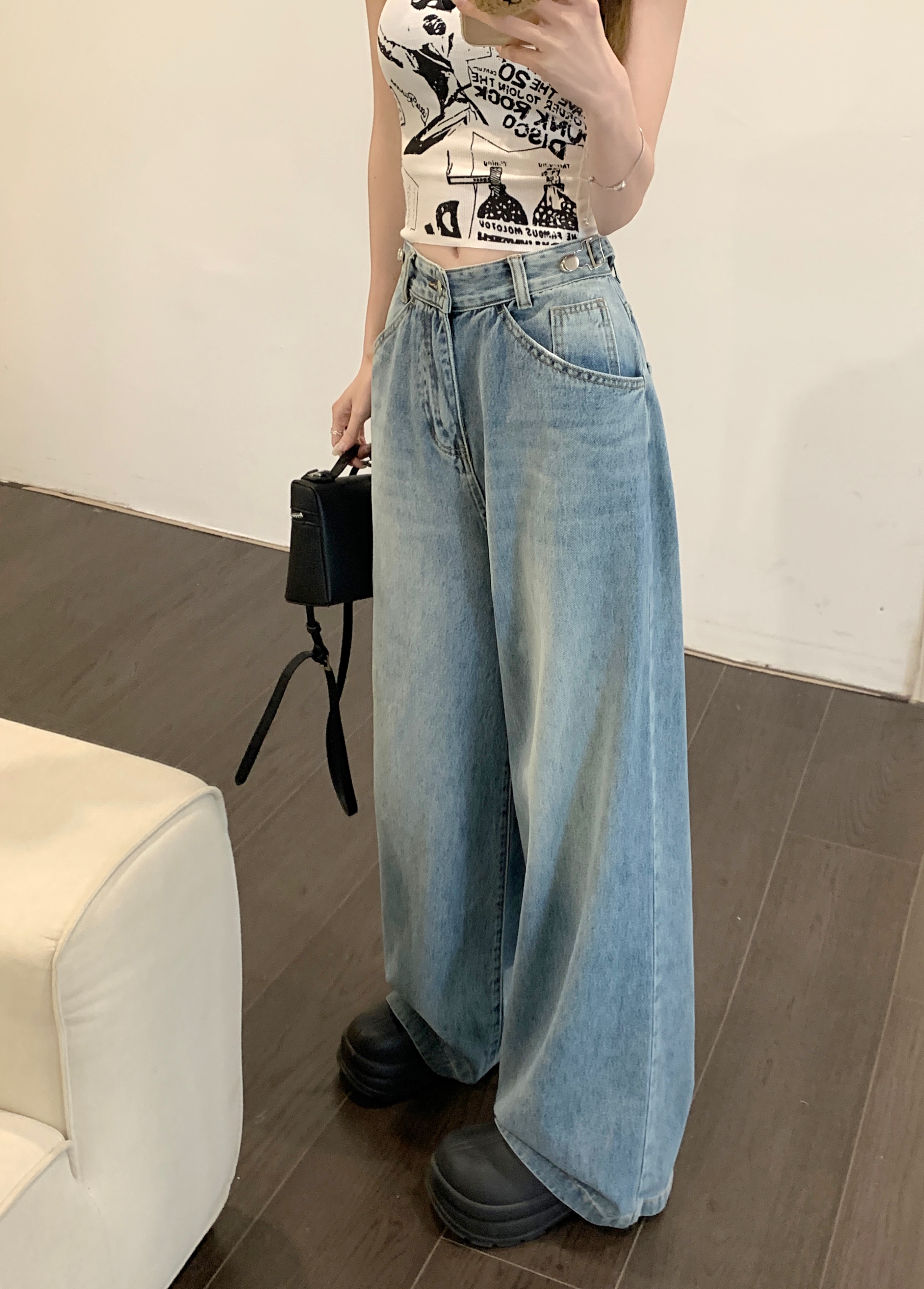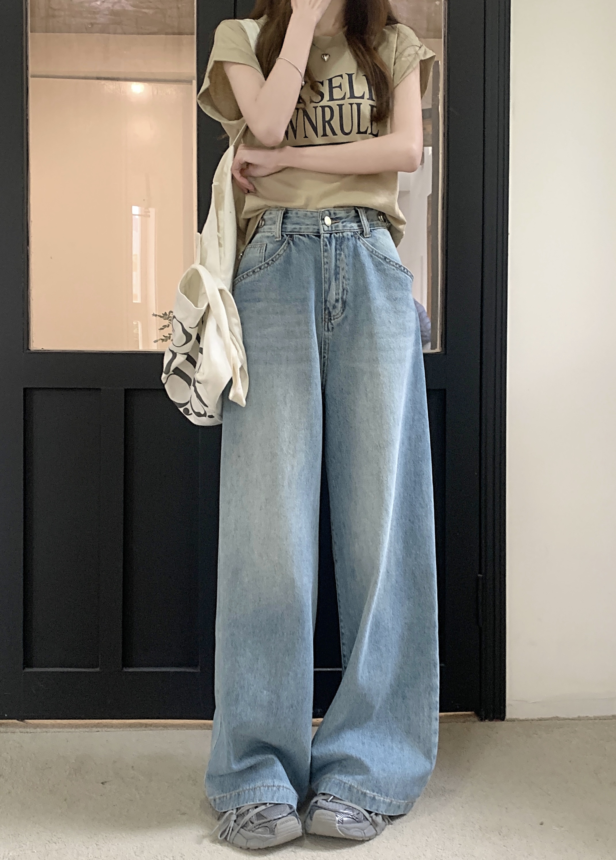 Ретро синие штаны, осенние прямые свободные джинсы, свободный прямой крой, высокая талия