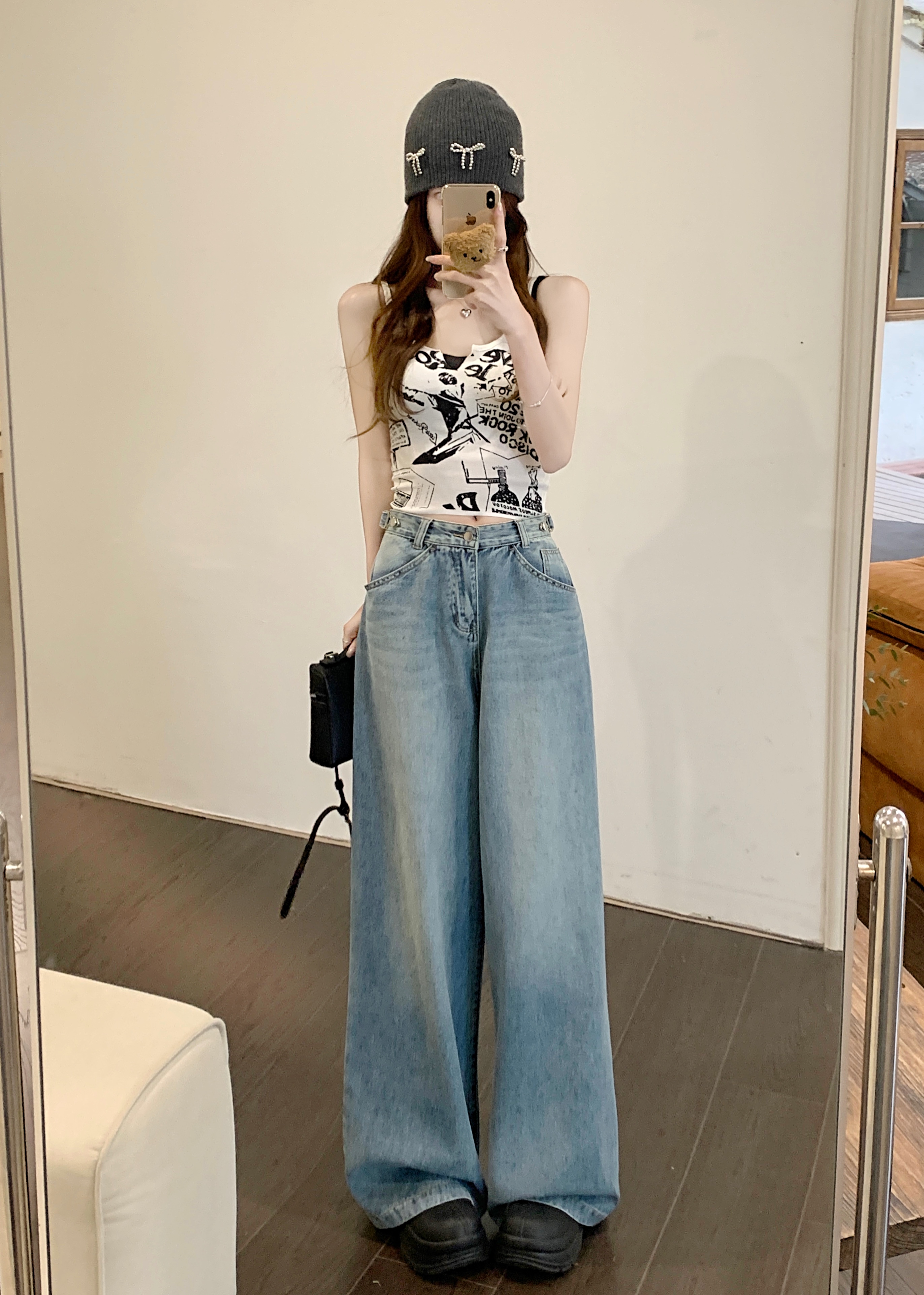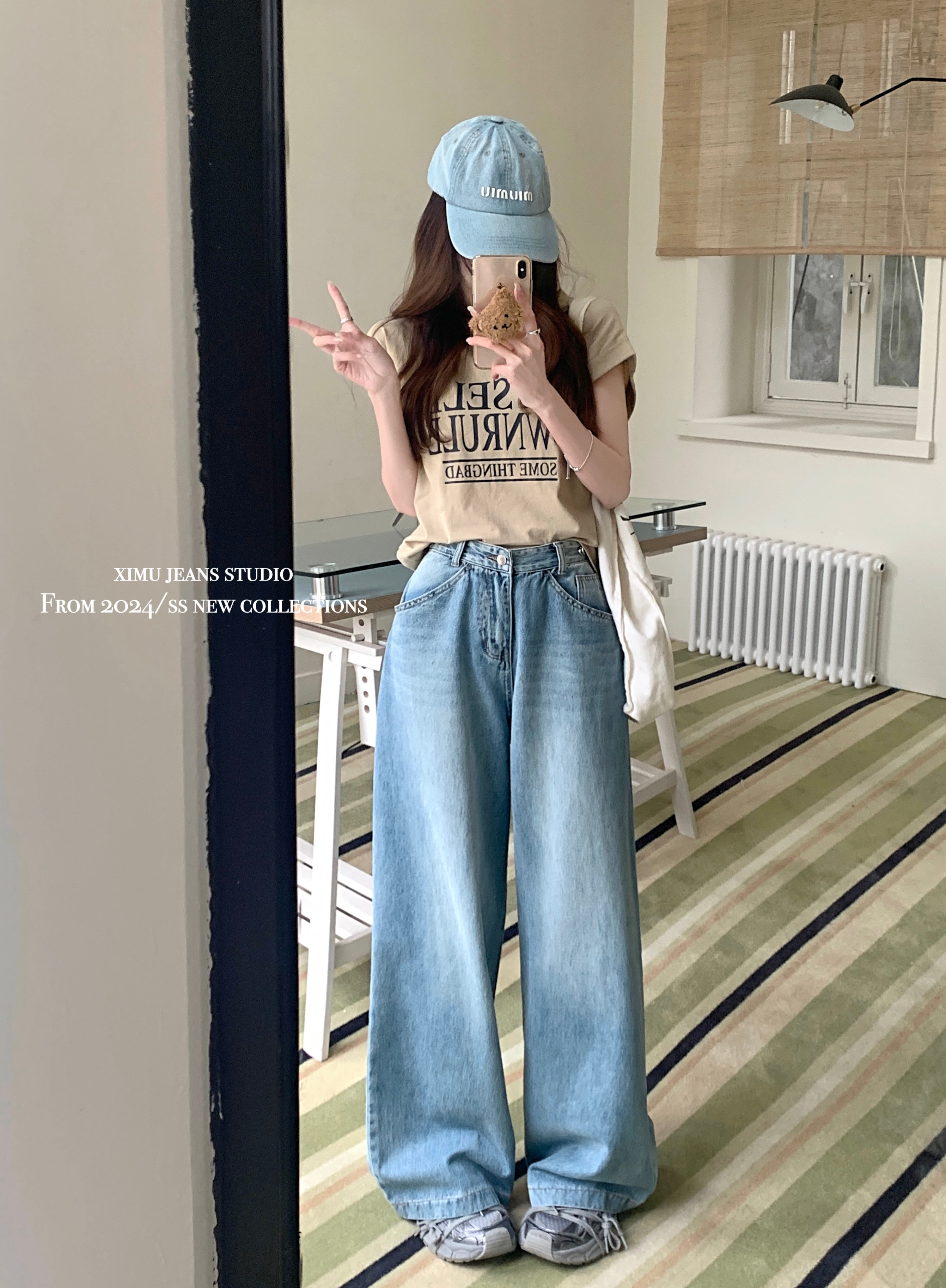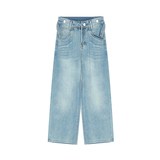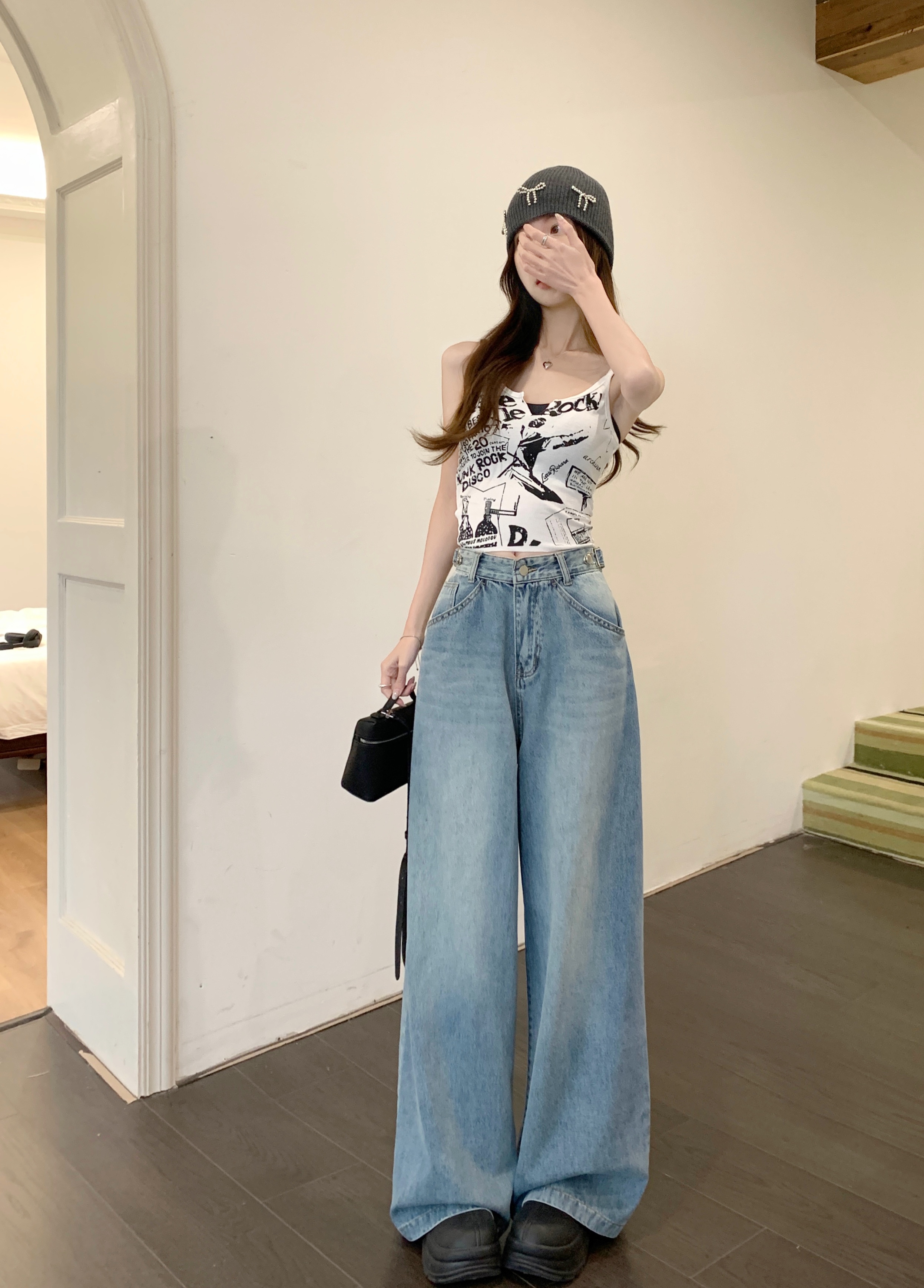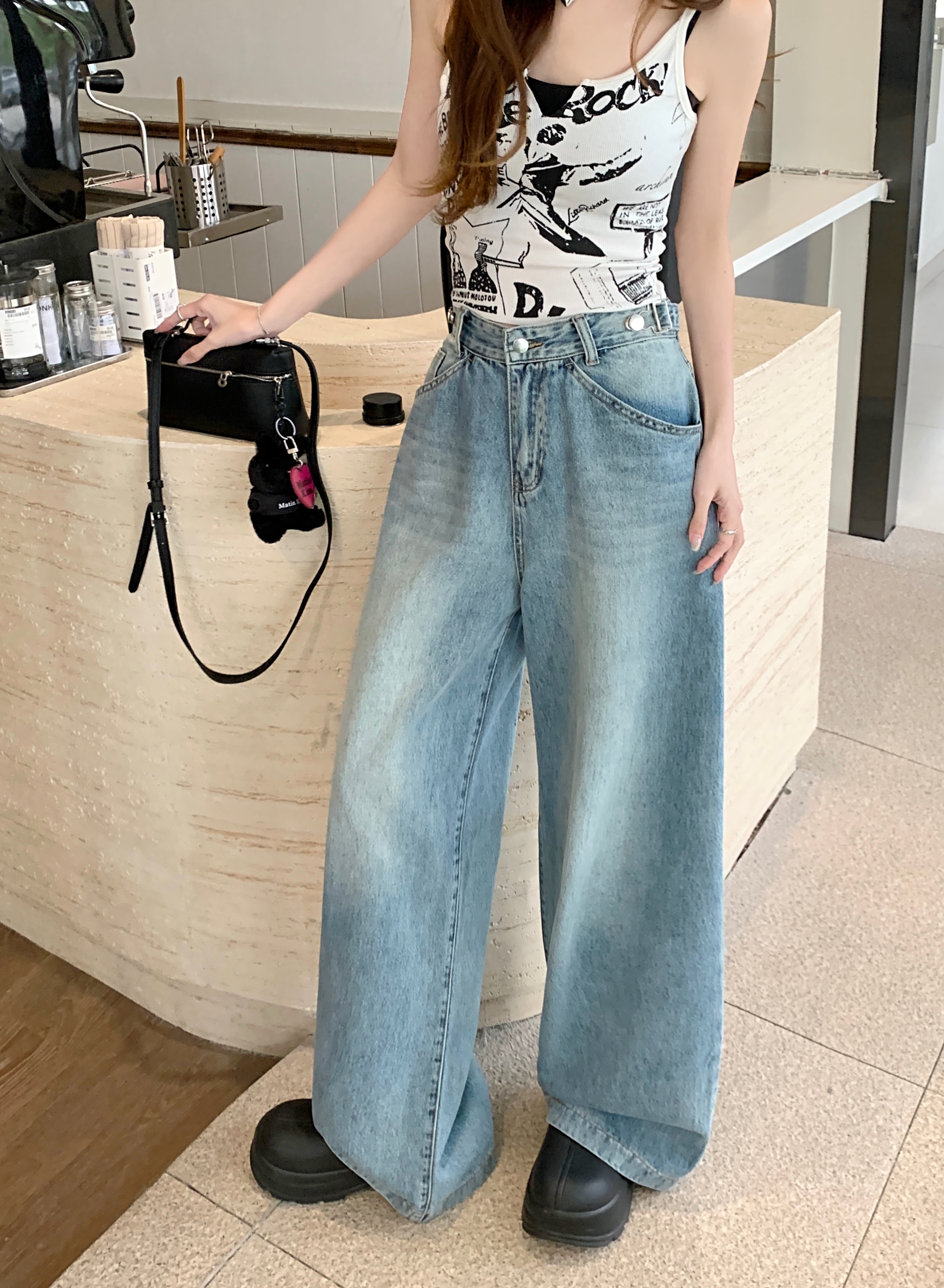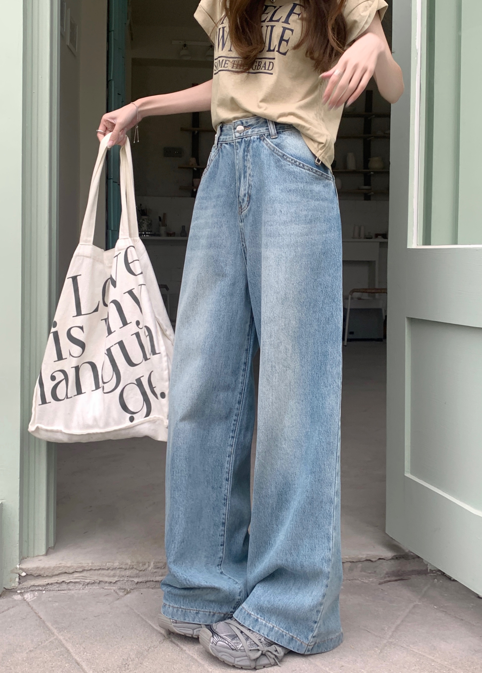 Ретро синие штаны, осенние прямые свободные джинсы, свободный прямой крой, высокая талия