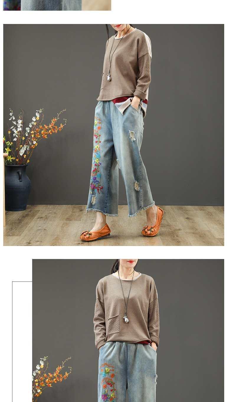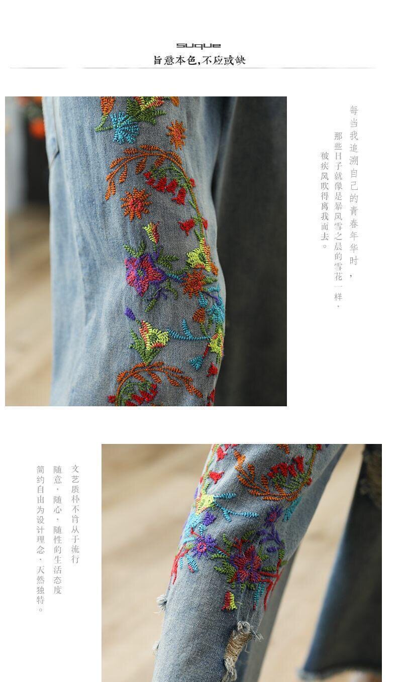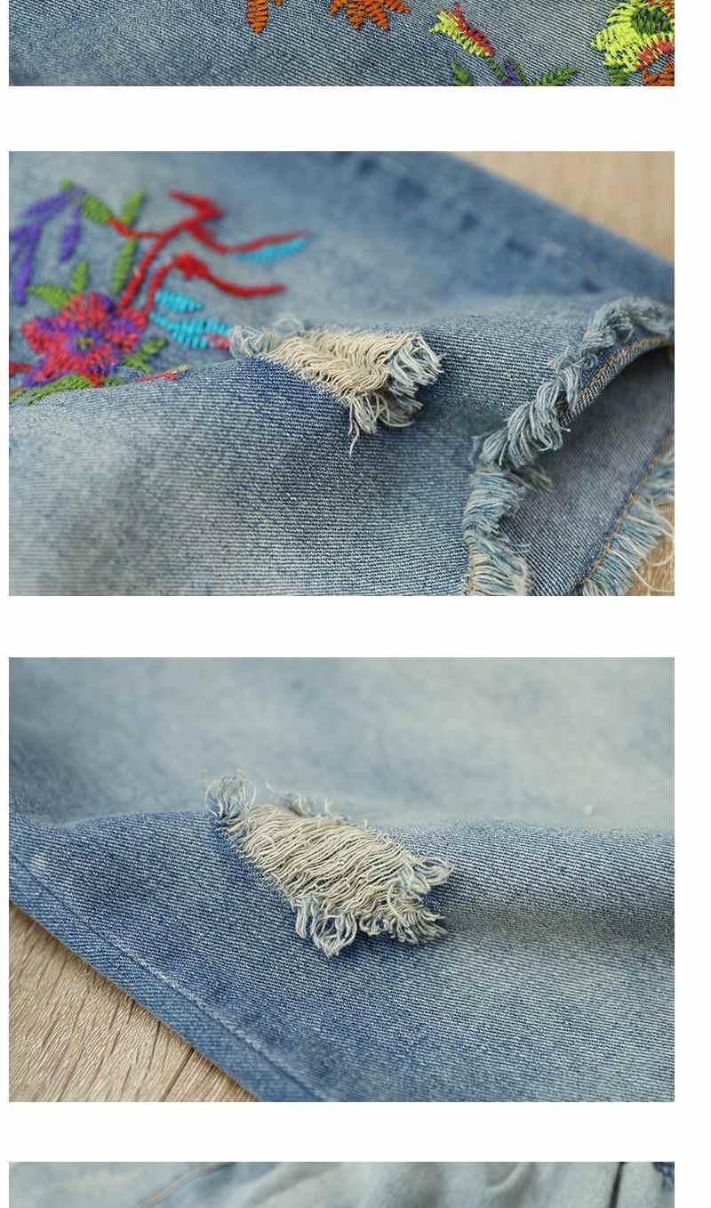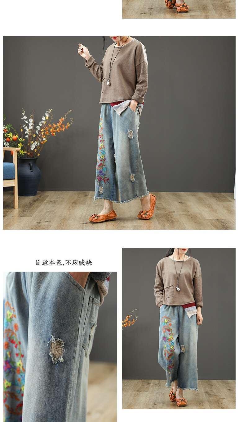 Летние джинсовые ретро штаны, оверсайз, эластичная талия, с вышивкой