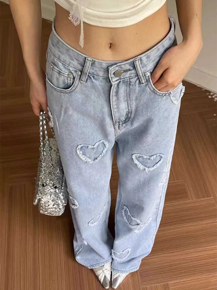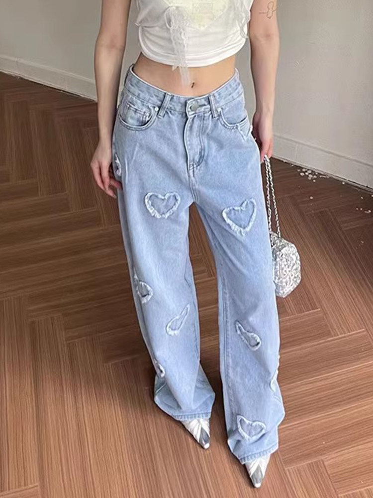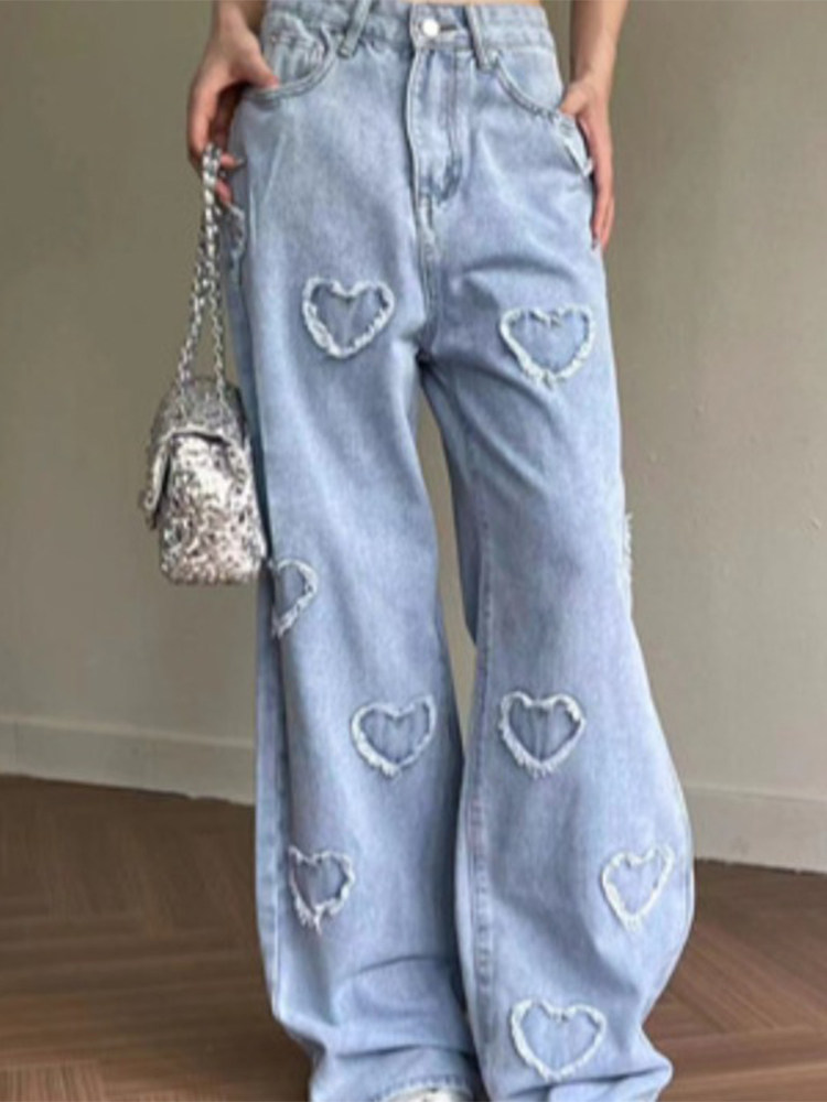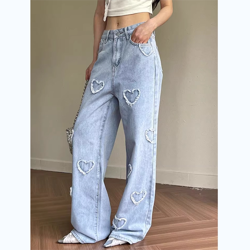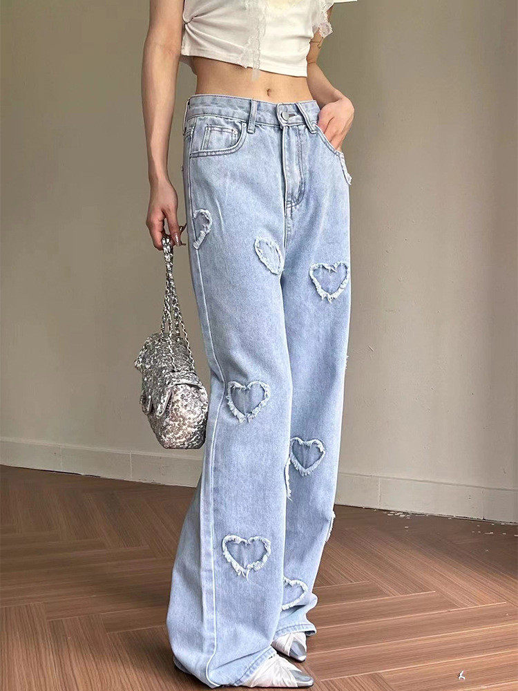 Весенние трехмерные дизайнерские прямые свободные джинсы, штаны, в корейском стиле, высокая талия