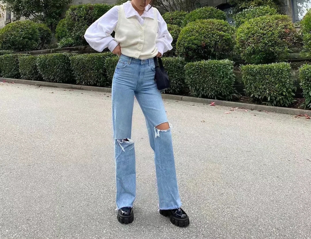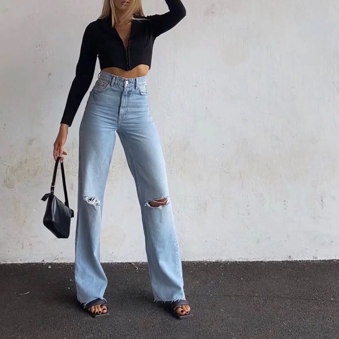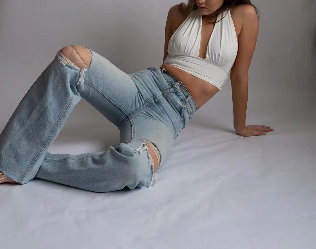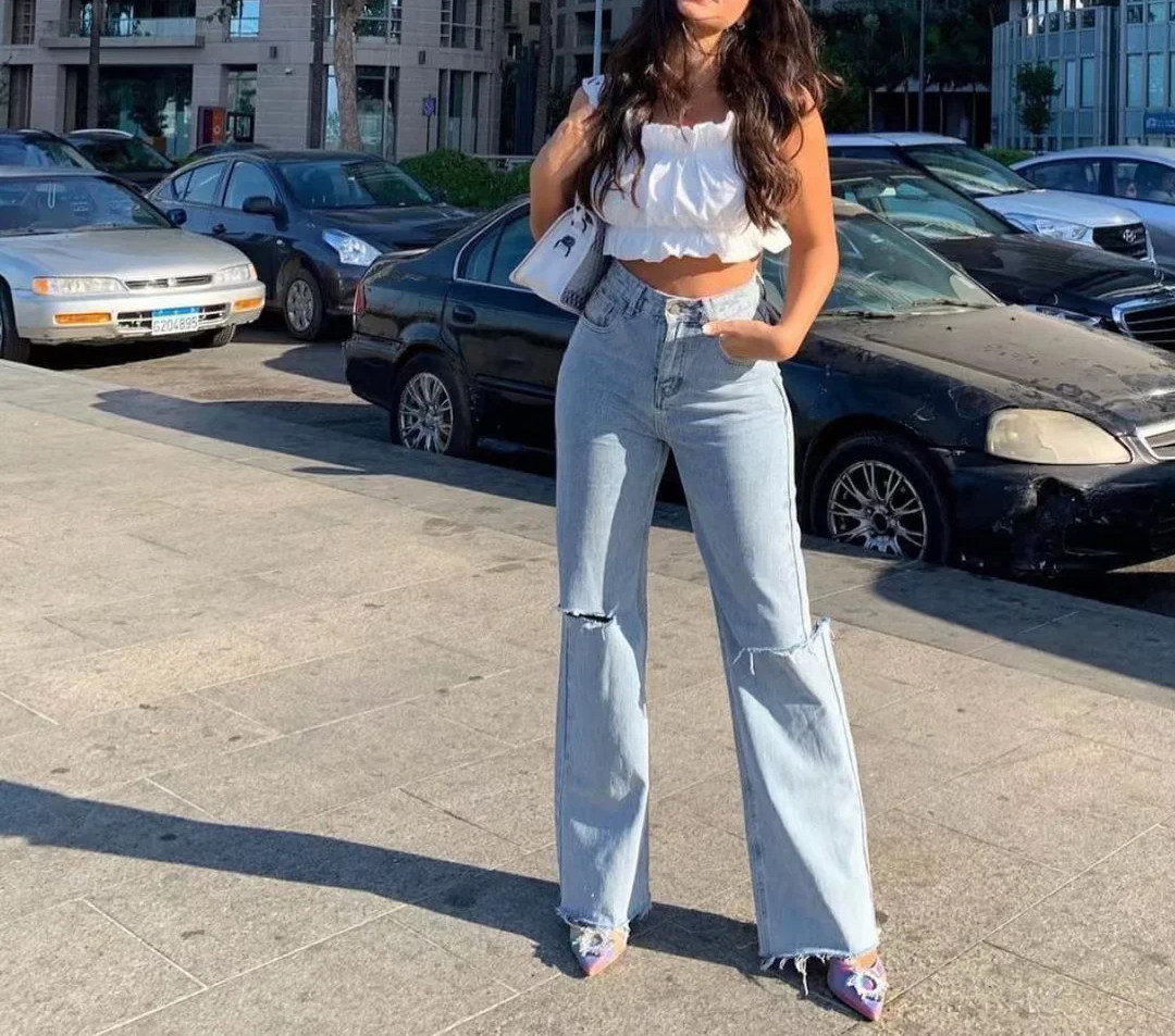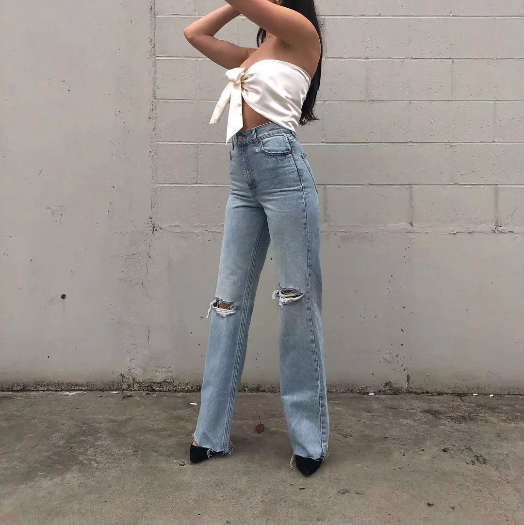 Летние джинсовые джинсы для отдыха, европейский стиль, высокая талия