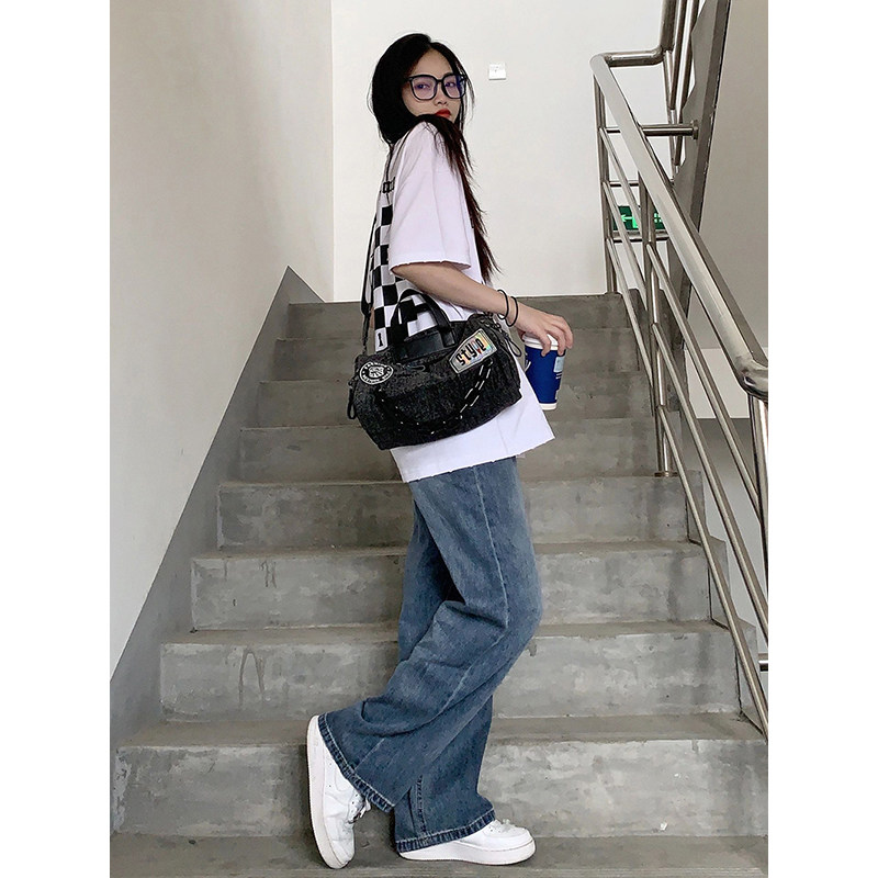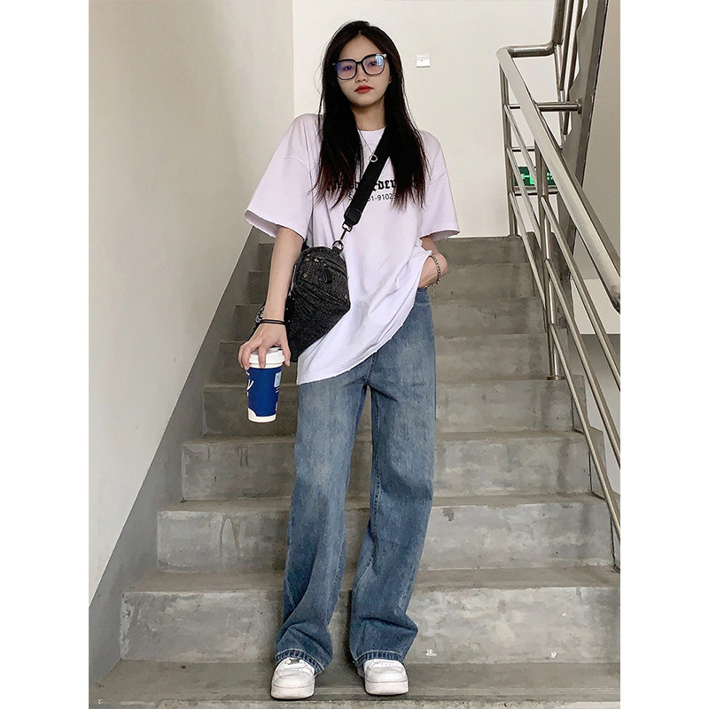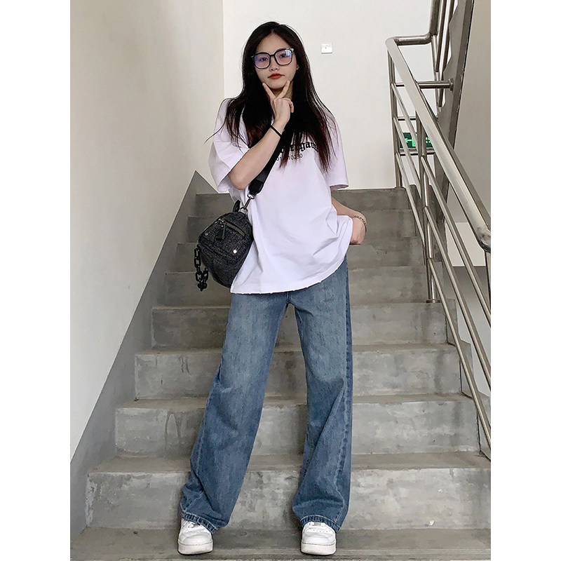 Джинсы, осенние демисезонные приталенные штаны, США, большой размер, свободный крой, высокая талия