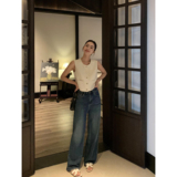 Синие ретро джинсы, штаны, приталенные повседневные брюки, оверсайз, свободный прямой крой