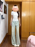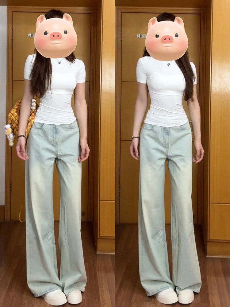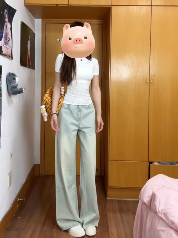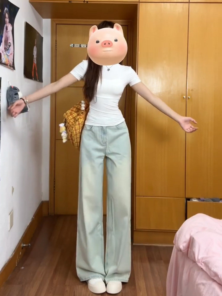 Светлые цветные тонкие джинсы, штаны, в американском стиле, ностальгия, высокая талия, свободный прямой крой, подходит для подростков
