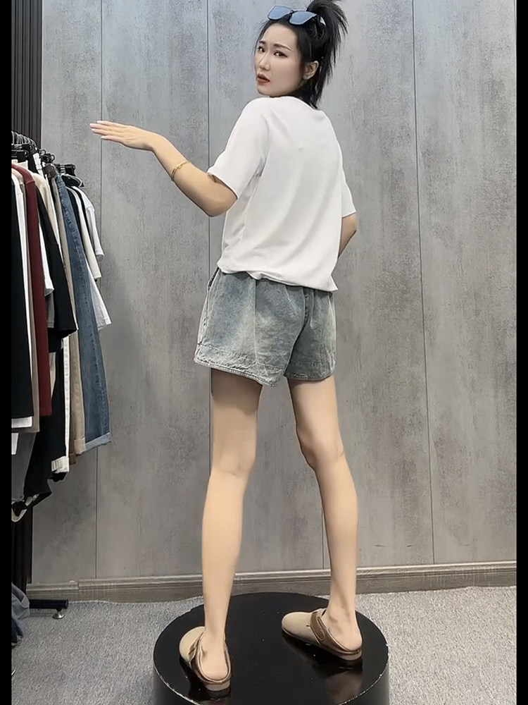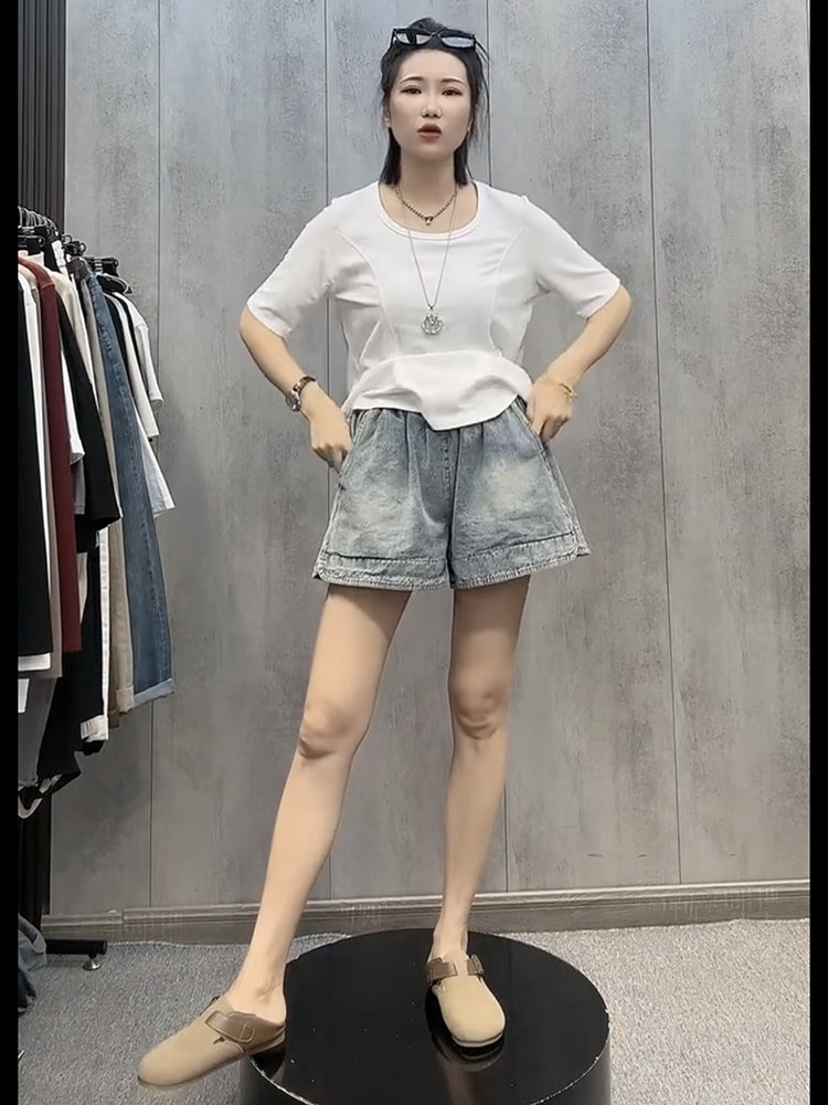 Джинсовая юбка, шорты, летние тонкие штаны, размер, подходит для полных девушек, 2025 года, свободный прямой крой, эластичная талия