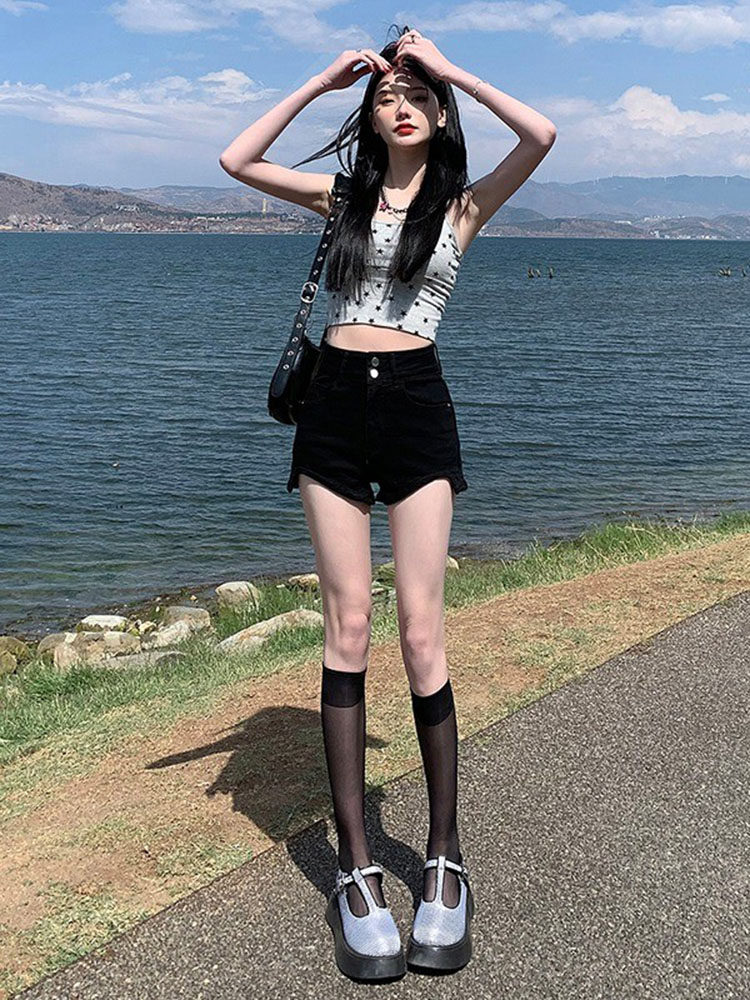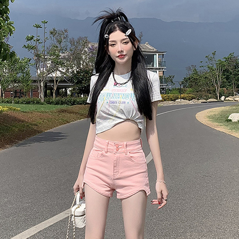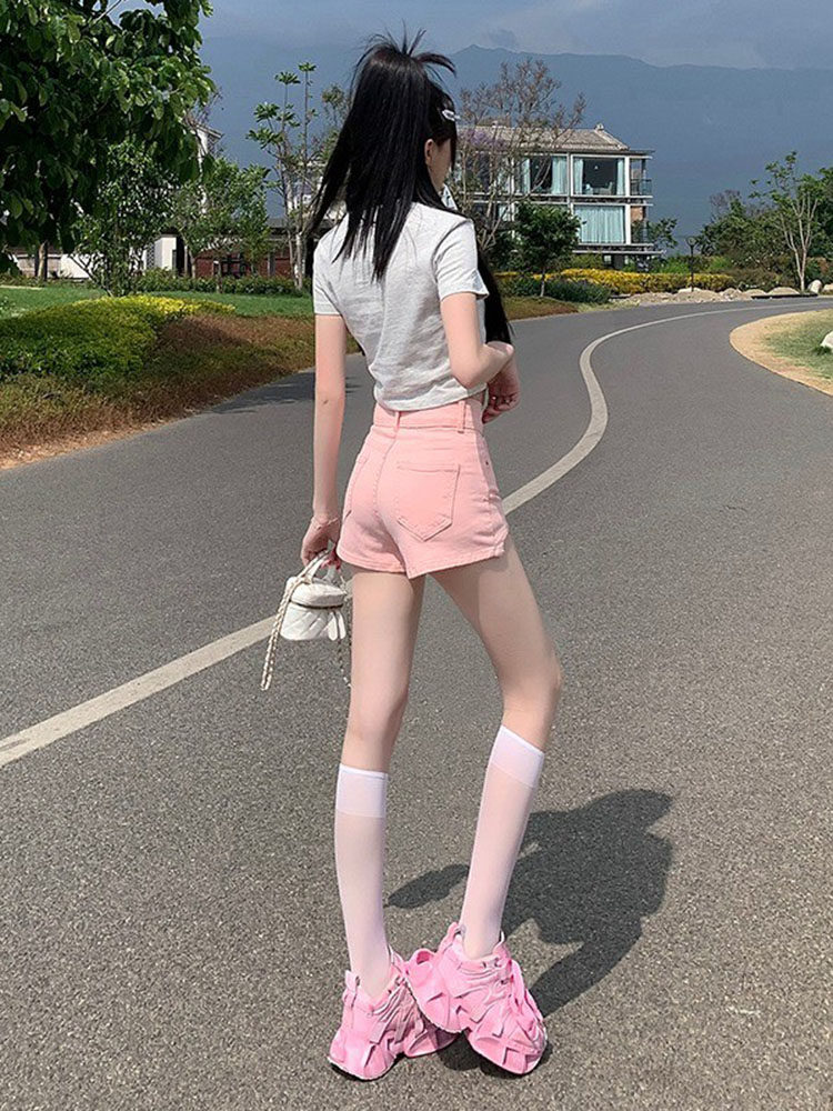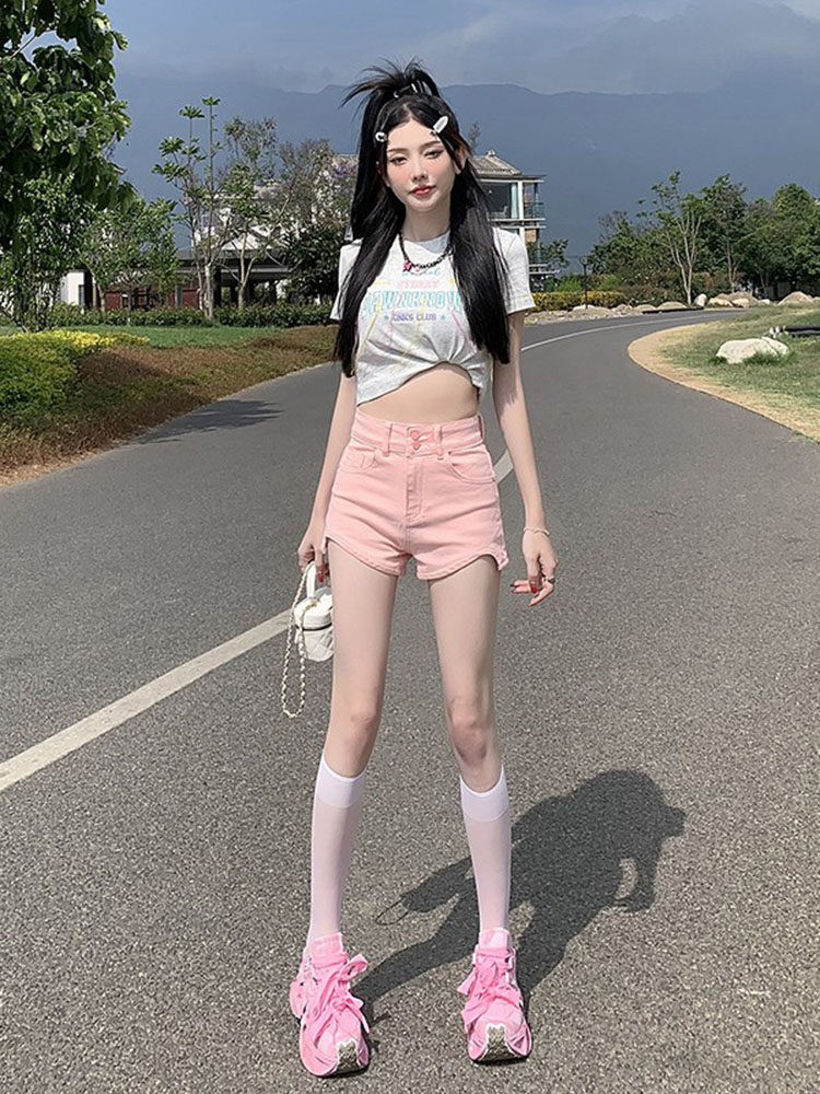 Розовая джинсовая юбка, шорты, летние тонкие модные приталенные штаны, 2025 года, А-силуэт, в обтяжку
