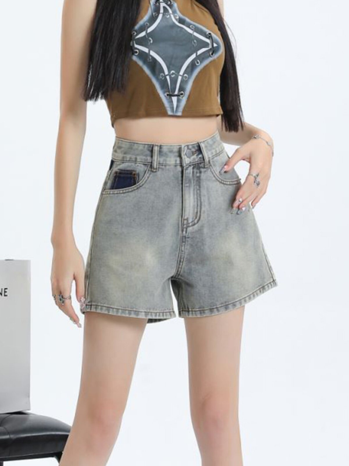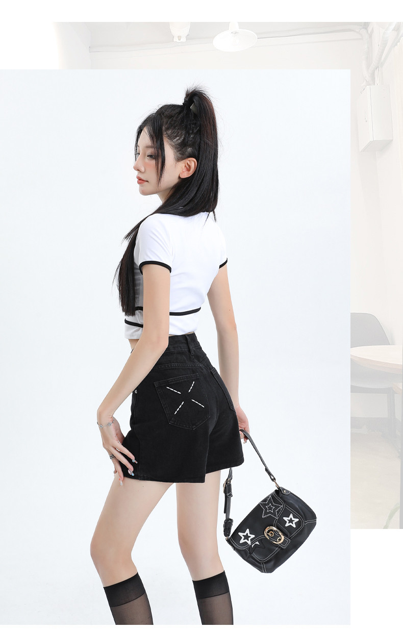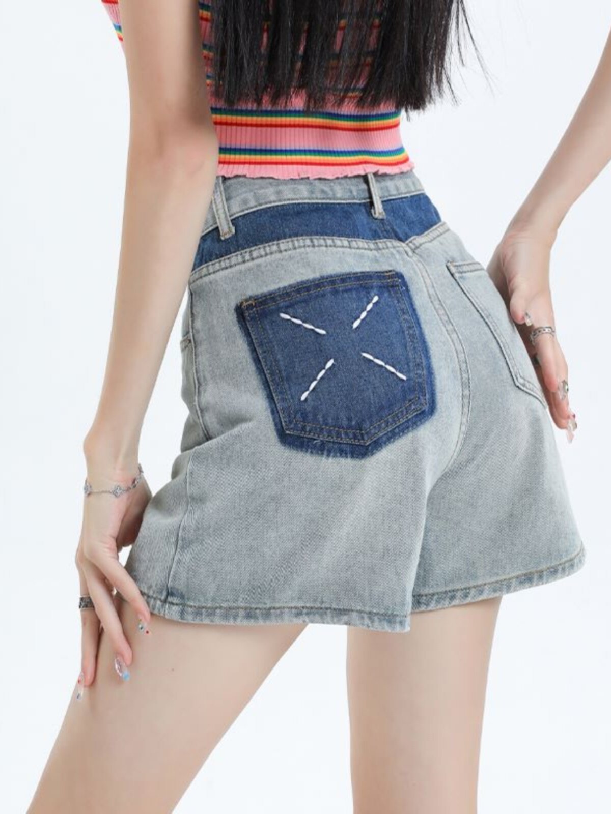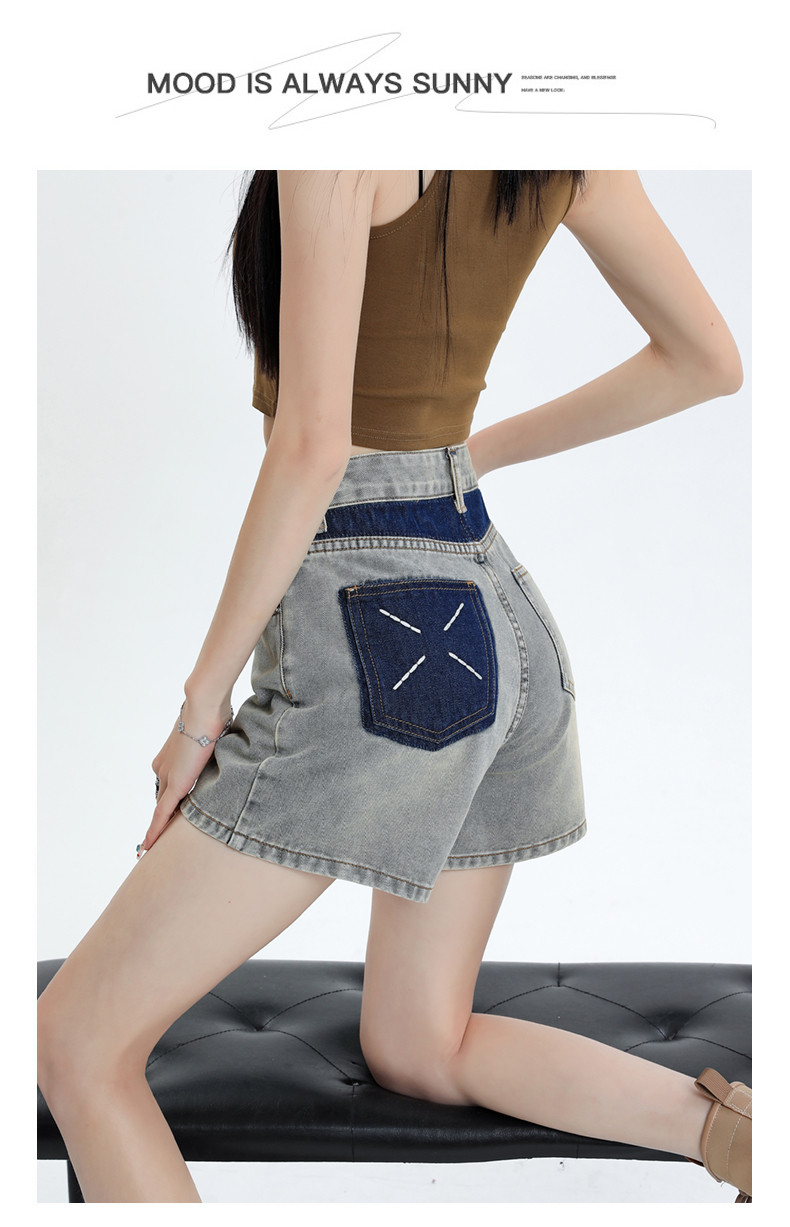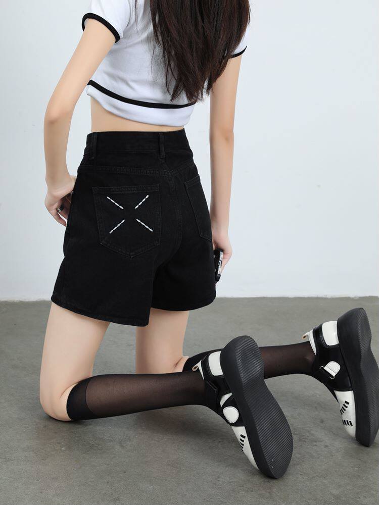 Джинсовая юбка, шорты, летние дизайнерские штаны, с вышивкой, высокая талия, свободный крой, тренд сезона, А-силуэт, по фигуре