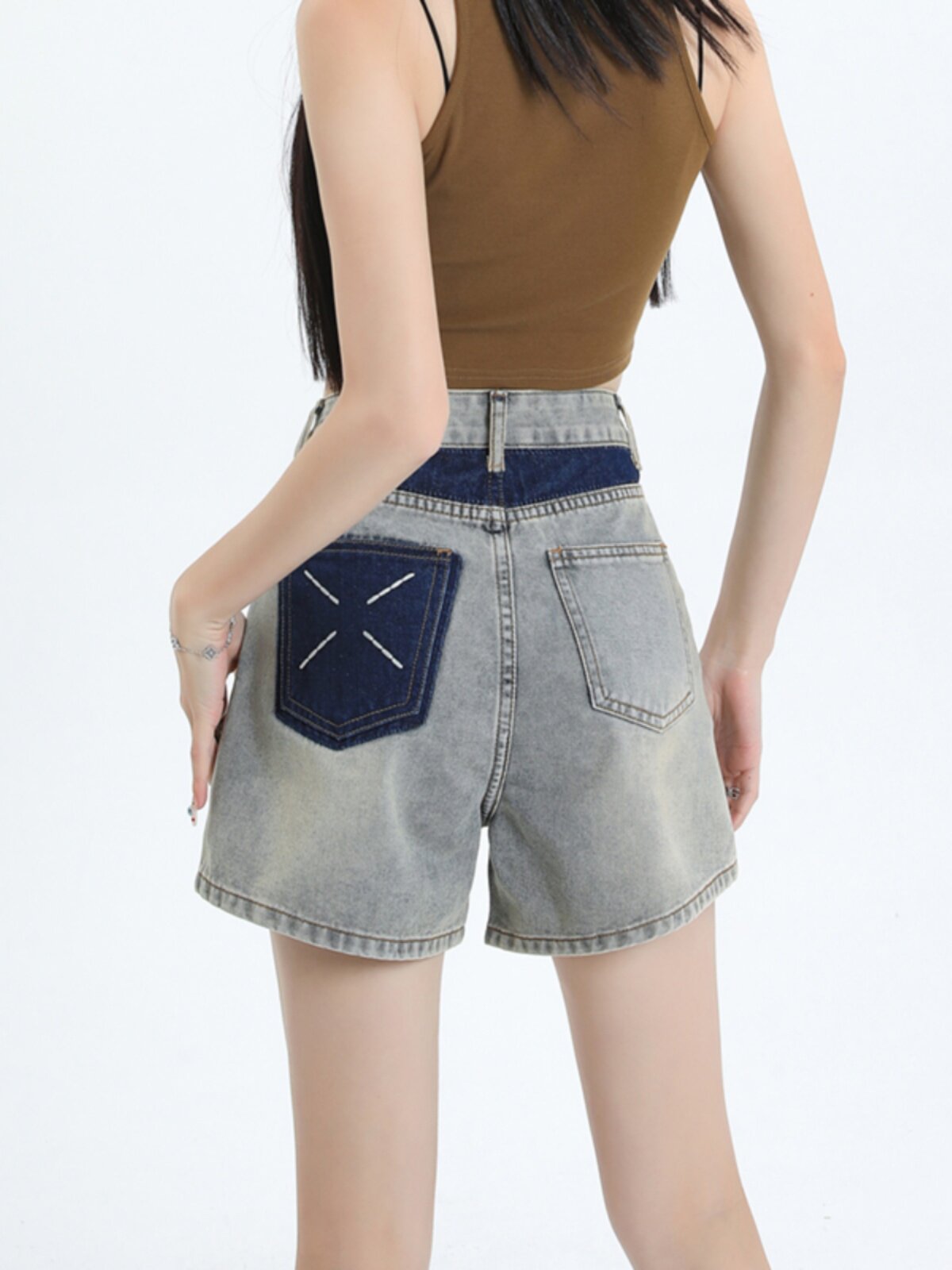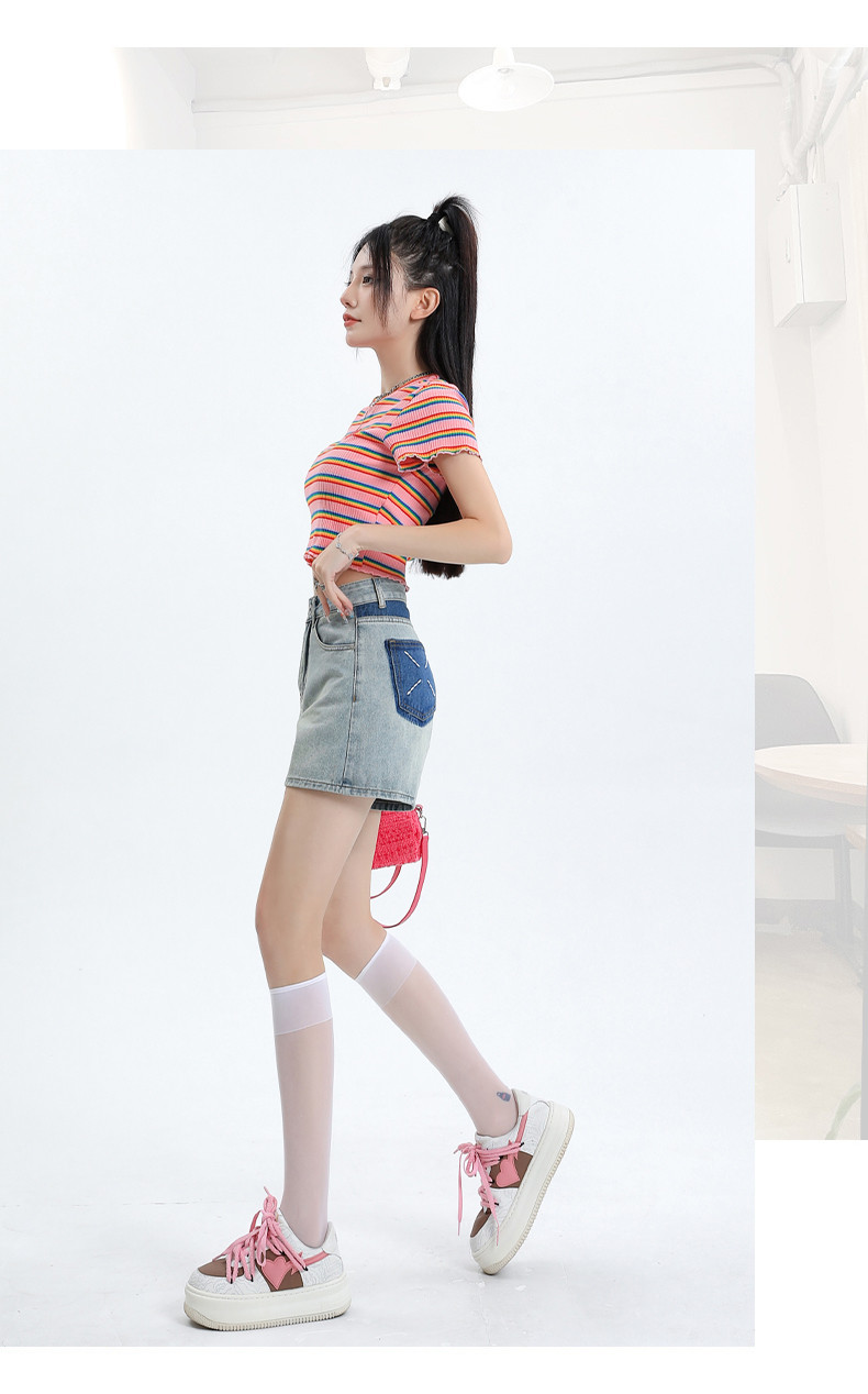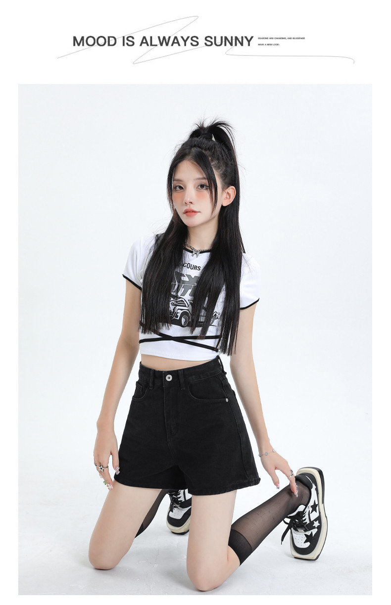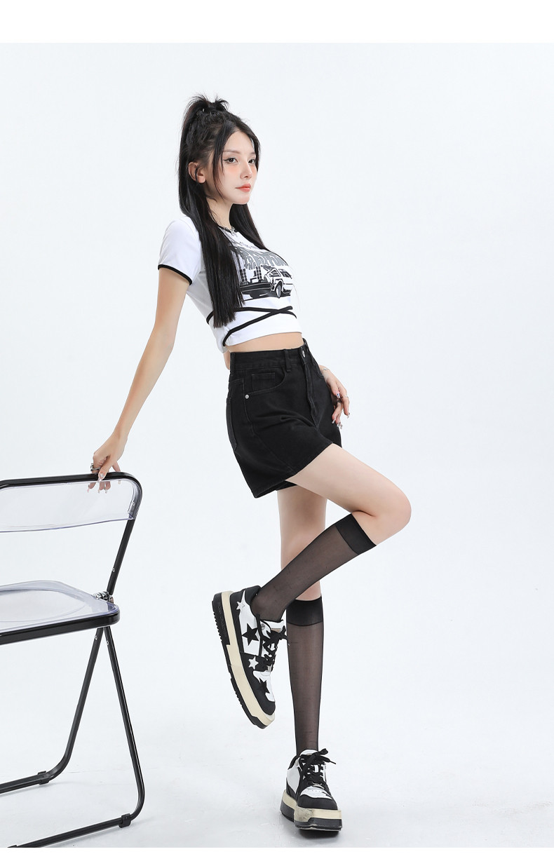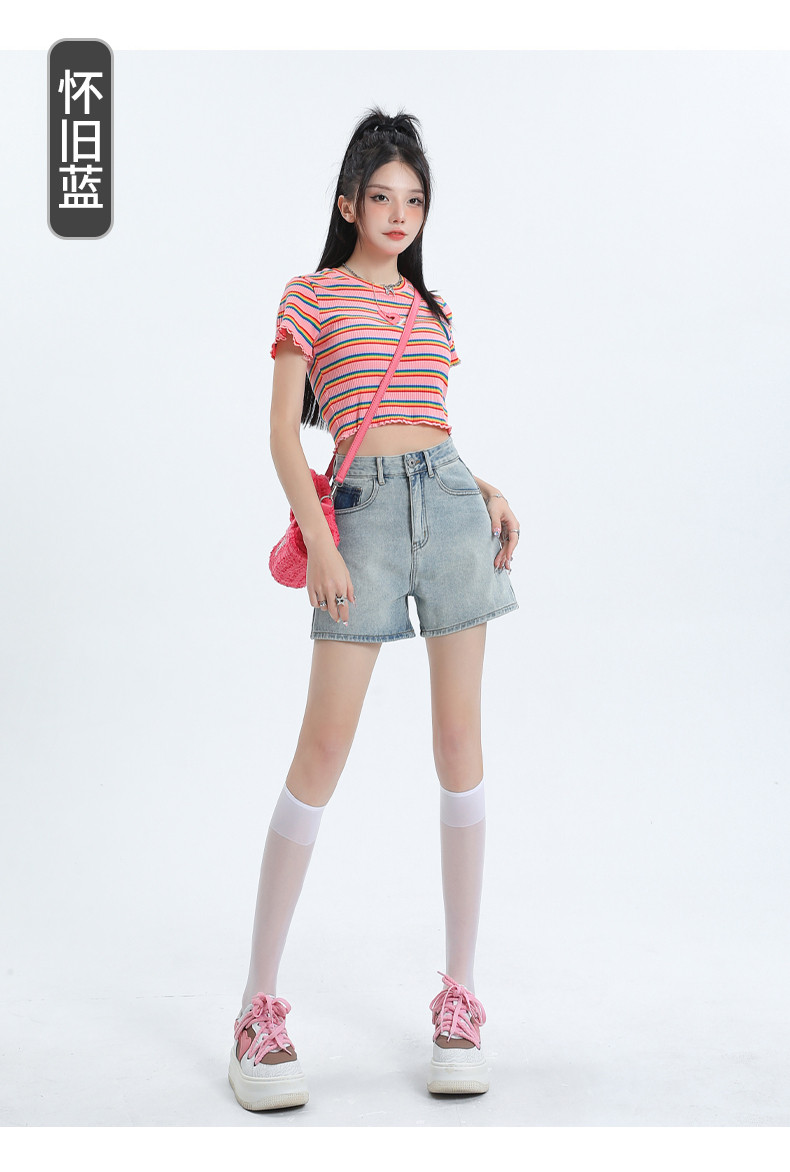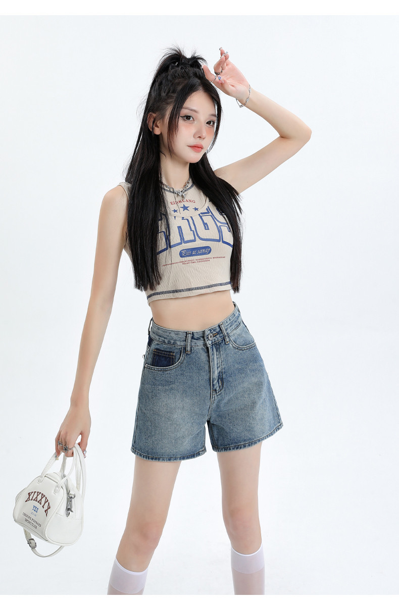 Джинсовая юбка, шорты, летние дизайнерские штаны, с вышивкой, высокая талия, свободный крой, тренд сезона, А-силуэт, по фигуре