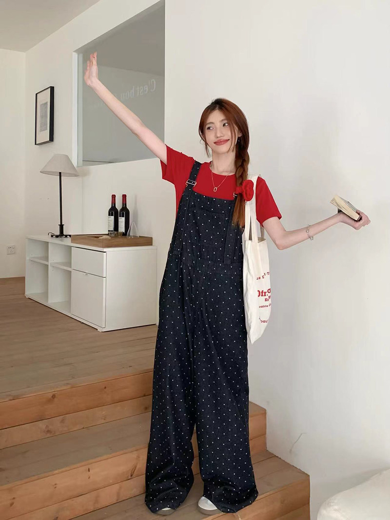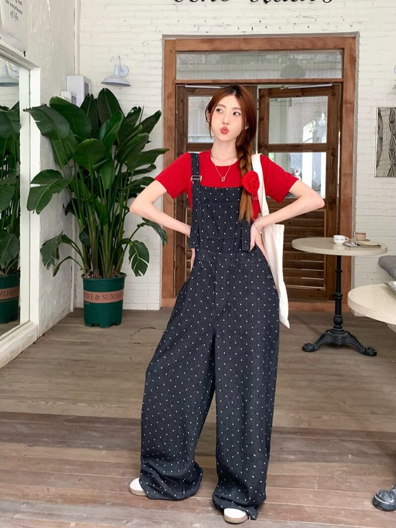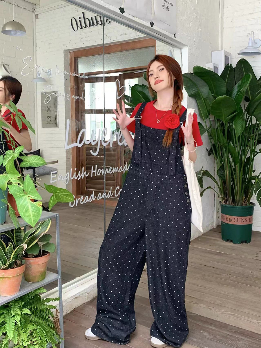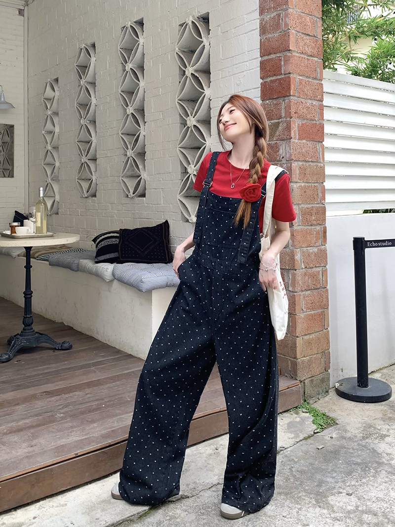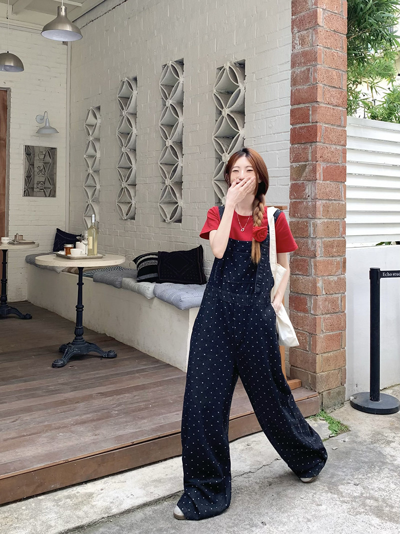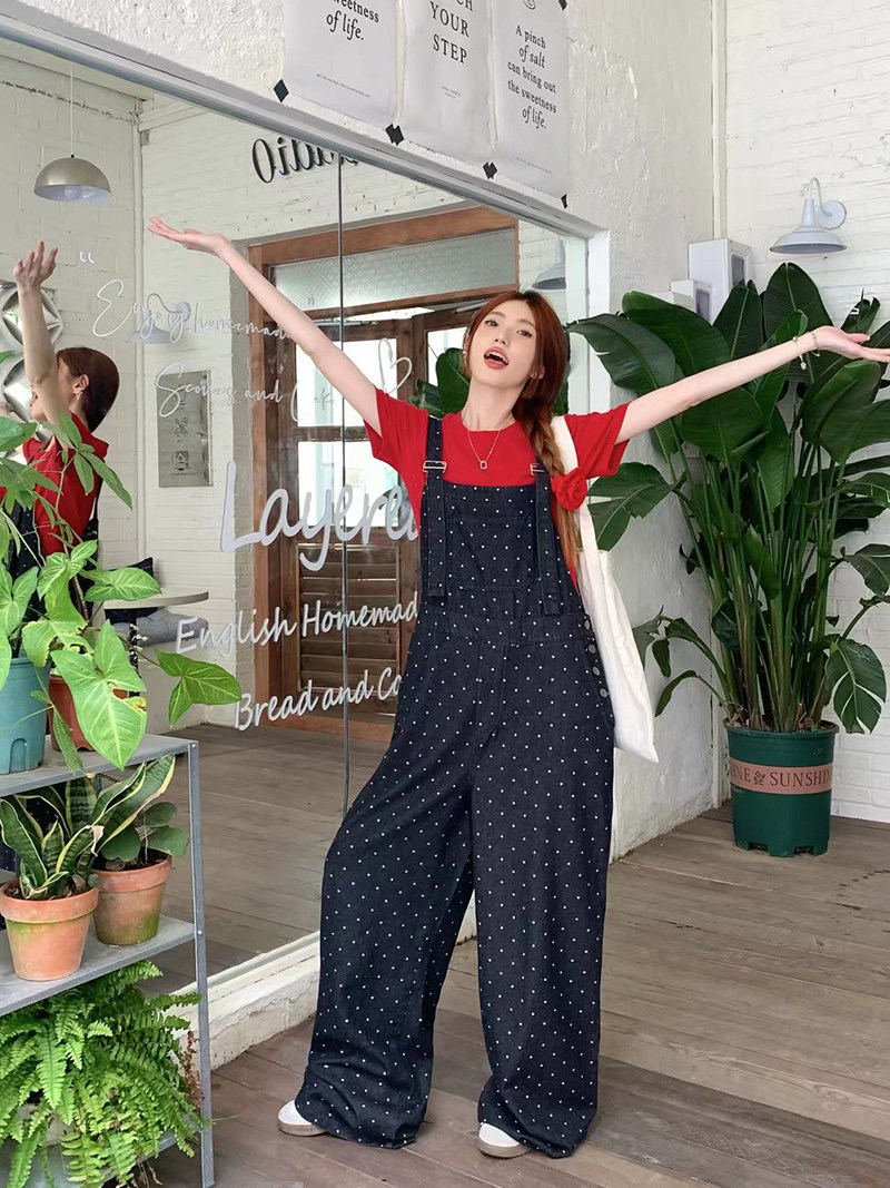 Джинсовый комбинезон, штаны, в корейском стиле, свободный прямой крой