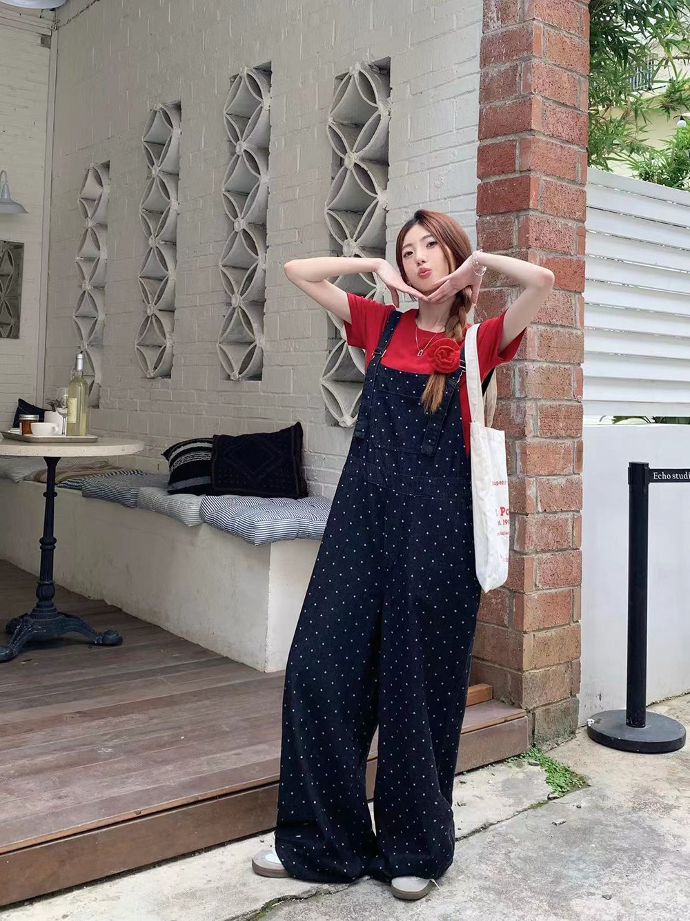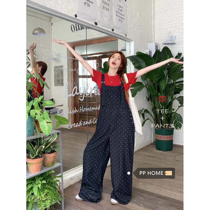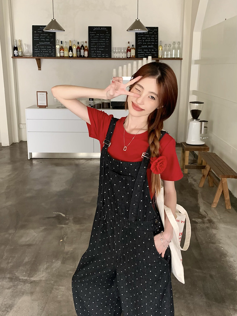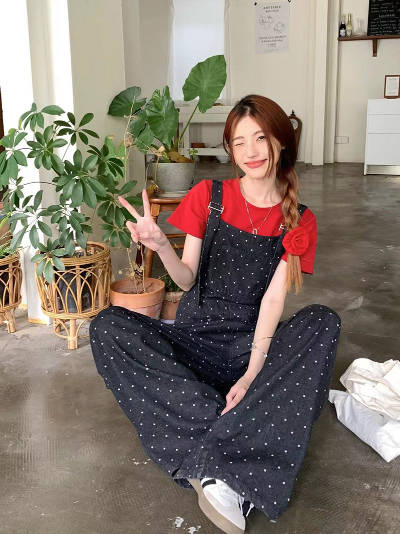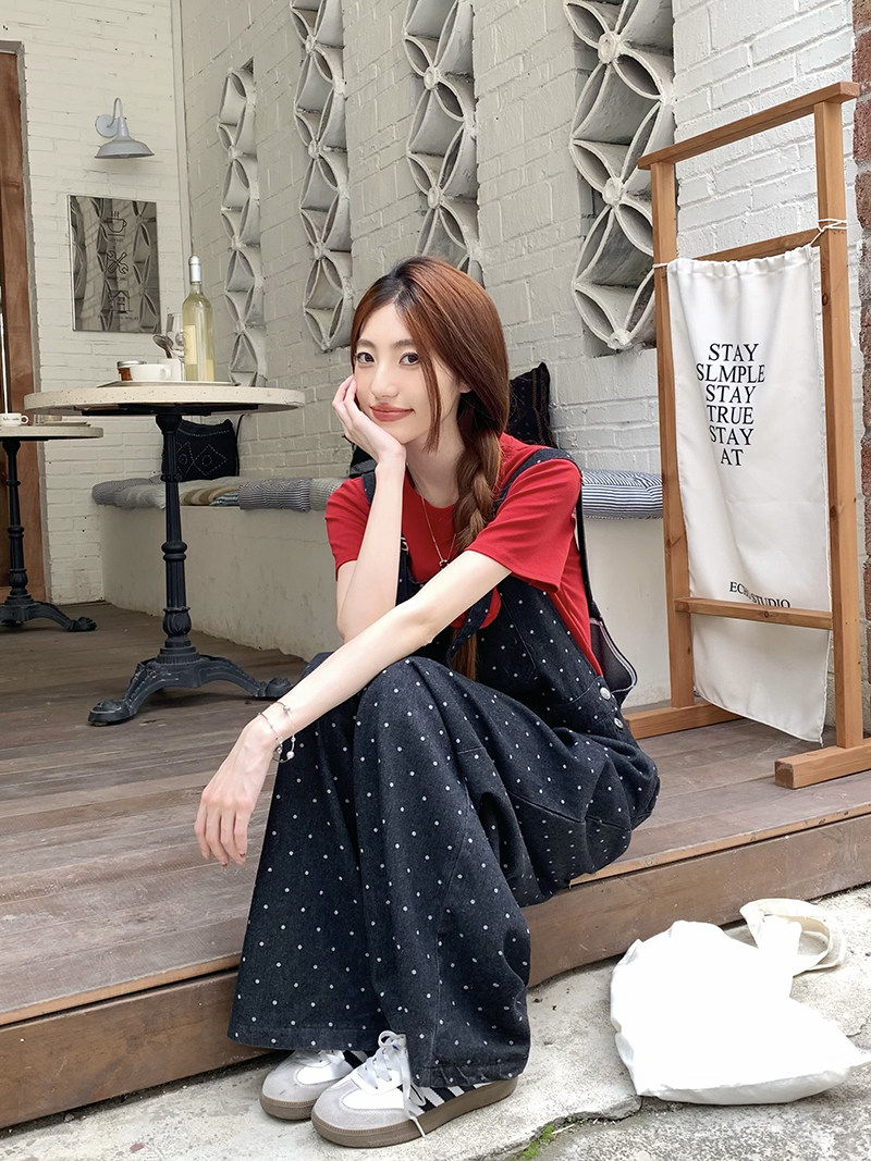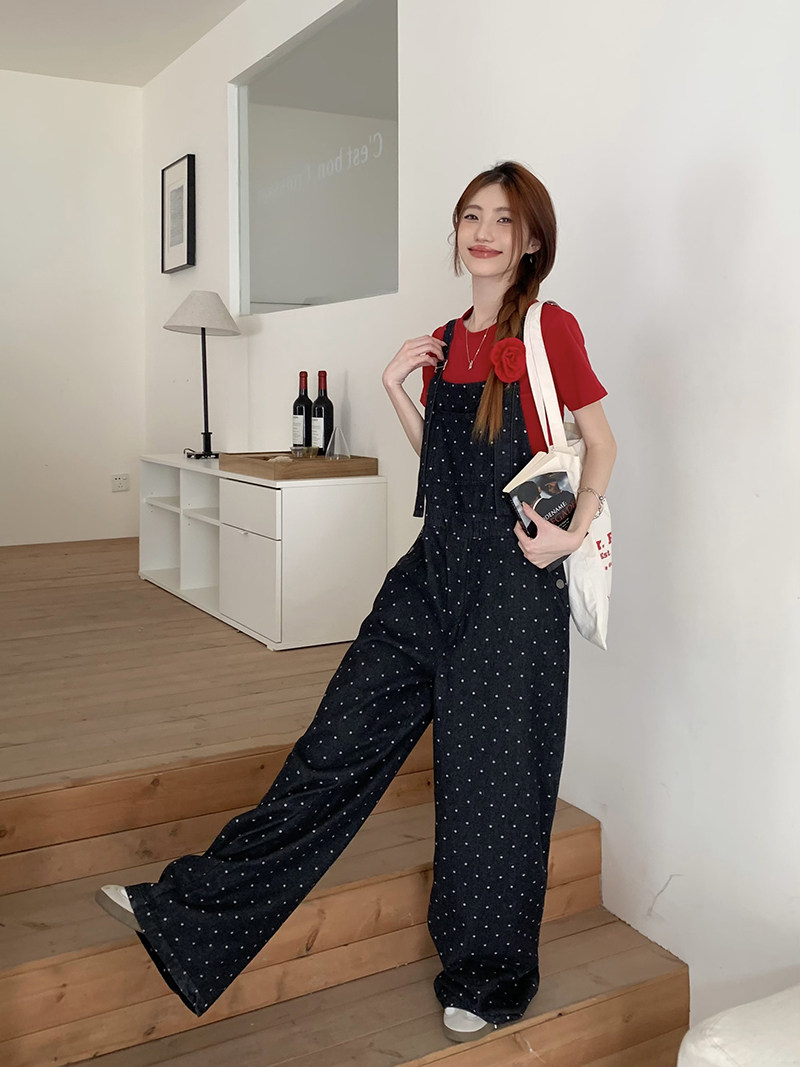 Джинсовый комбинезон, штаны, в корейском стиле, свободный прямой крой