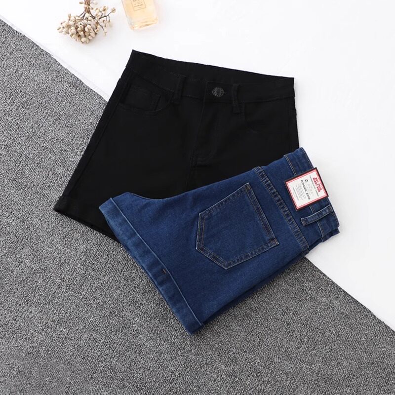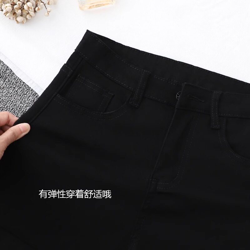 Черная джинсовая юбка, летние шорты, эластичные базовые штаны, в обтяжку, по фигуре, высокая талия, А-силуэт