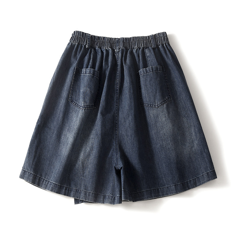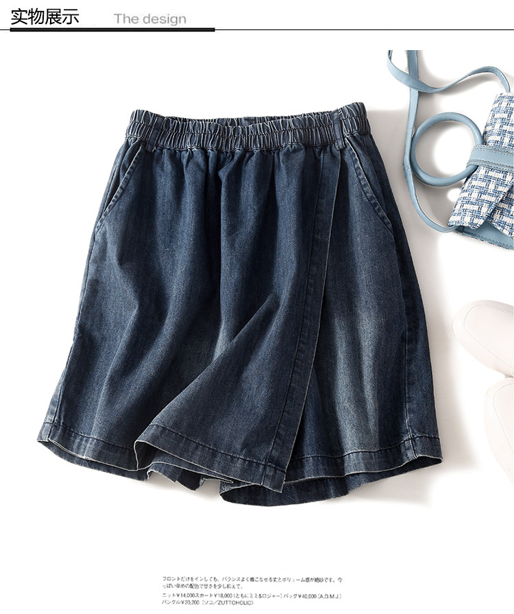 Комплект, приталенная джинсовая юбка, шорты, штаны, большой размер, свободный крой, подходит для полных девушек, высокая талия