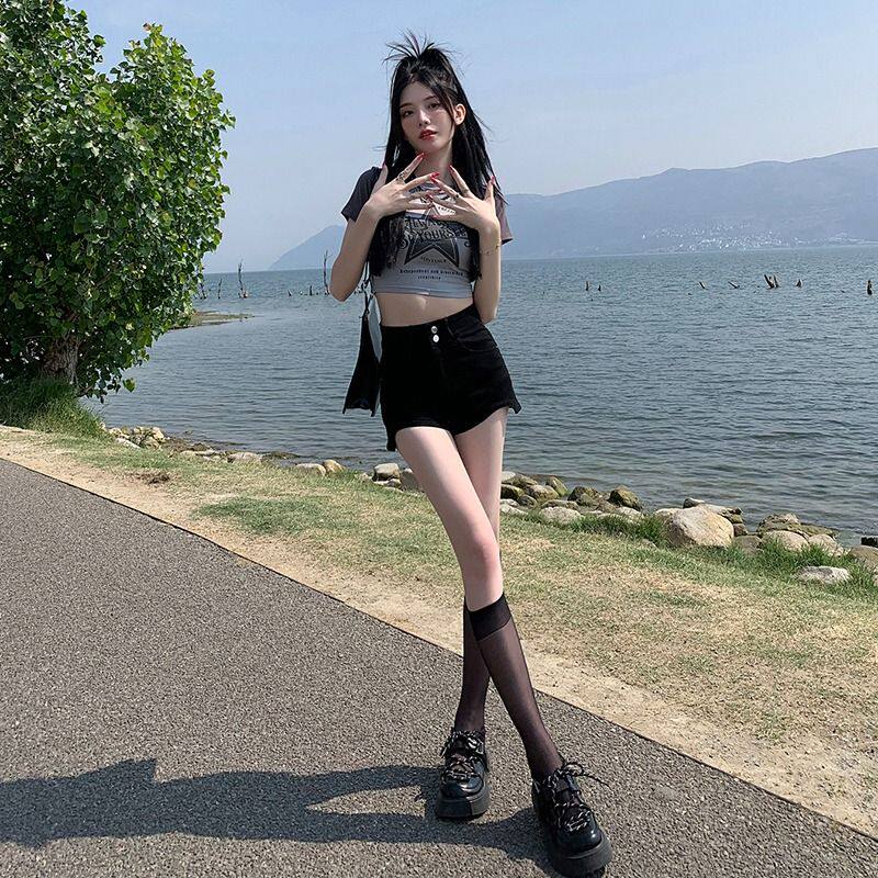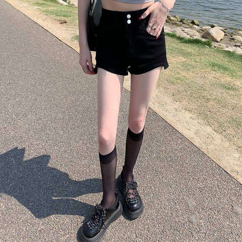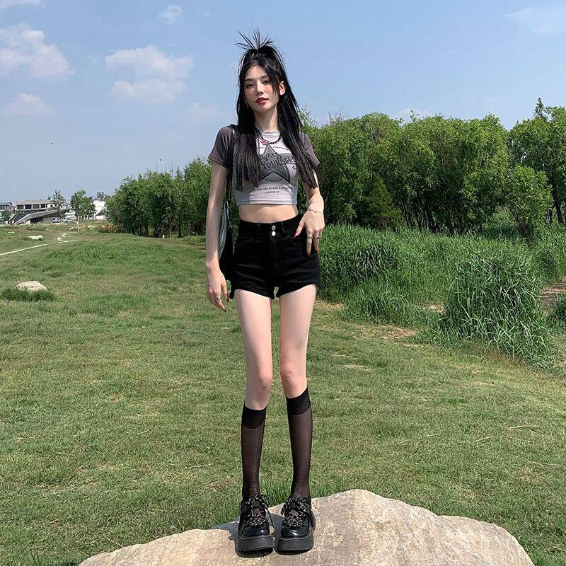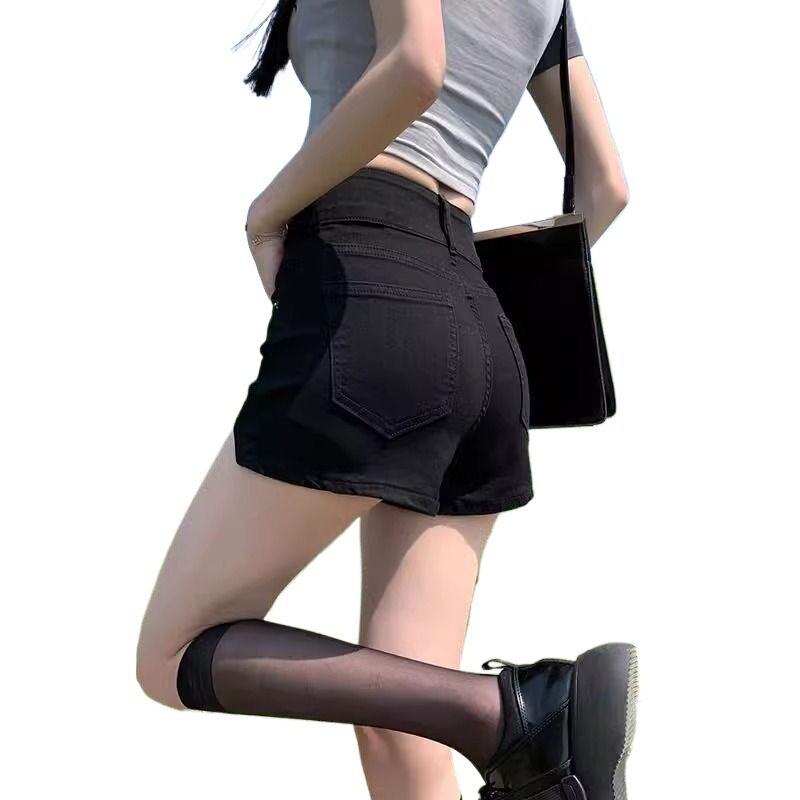 Черная джинсовая юбка, шорты, летние приталенные эластичные штаны, 2024 года, высокая талия, с акцентом на бедрах, подходит для подростков