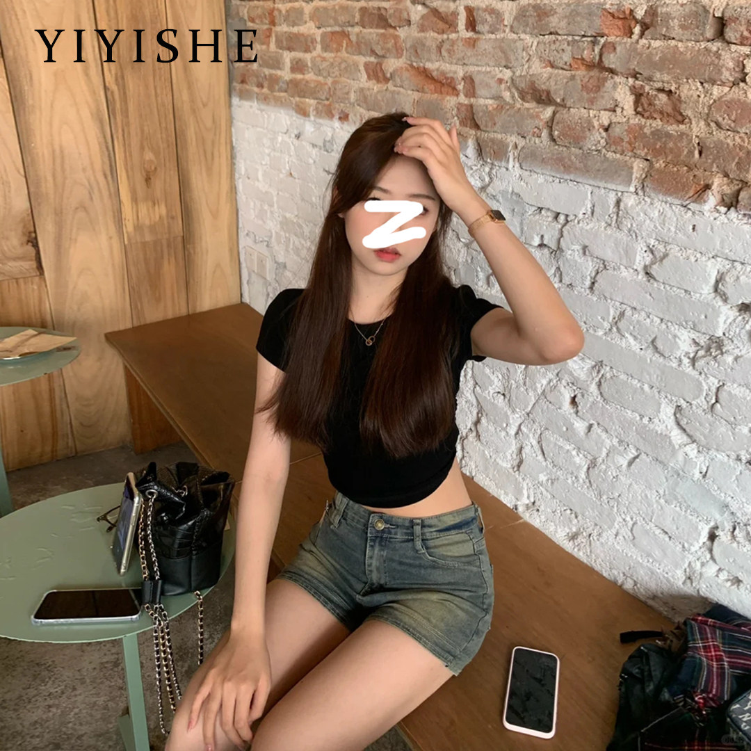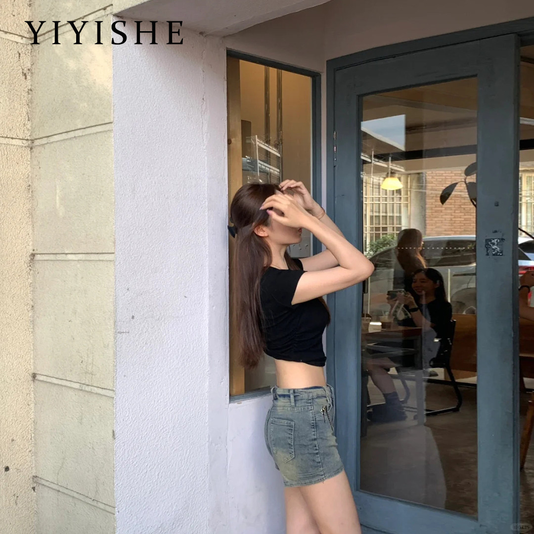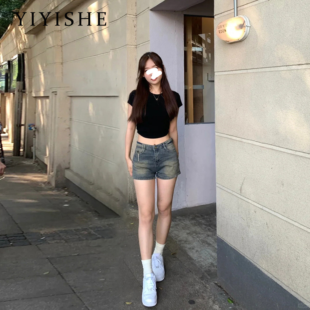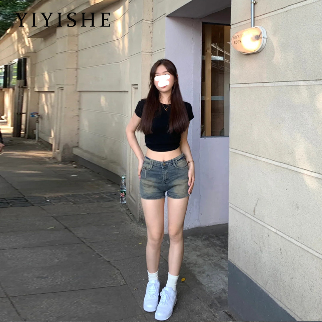 Ретро джинсовая юбка, шорты, летние приталенные эластичные штаны, в американском стиле, в обтяжку, А-силуэт
