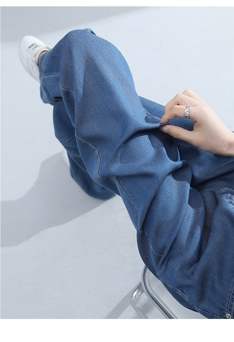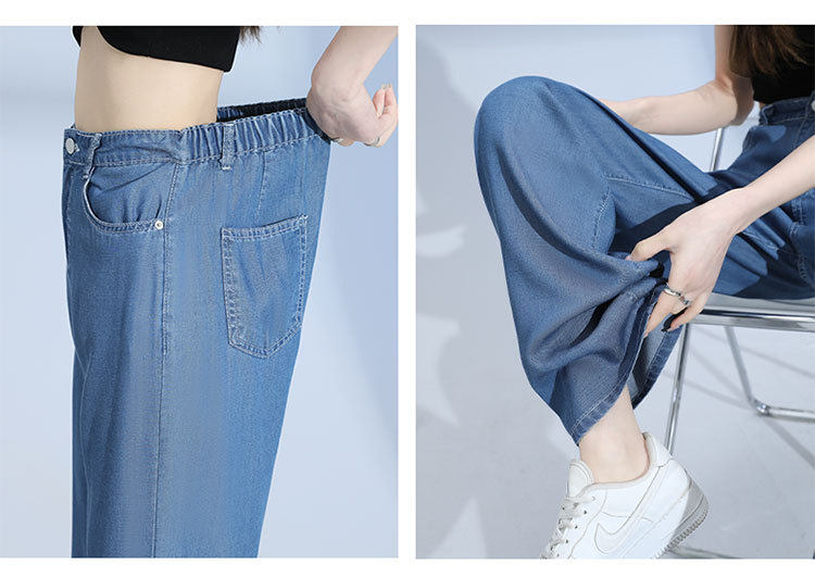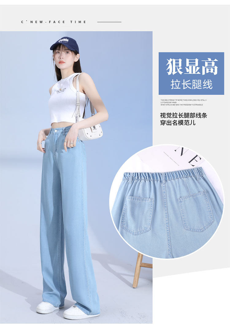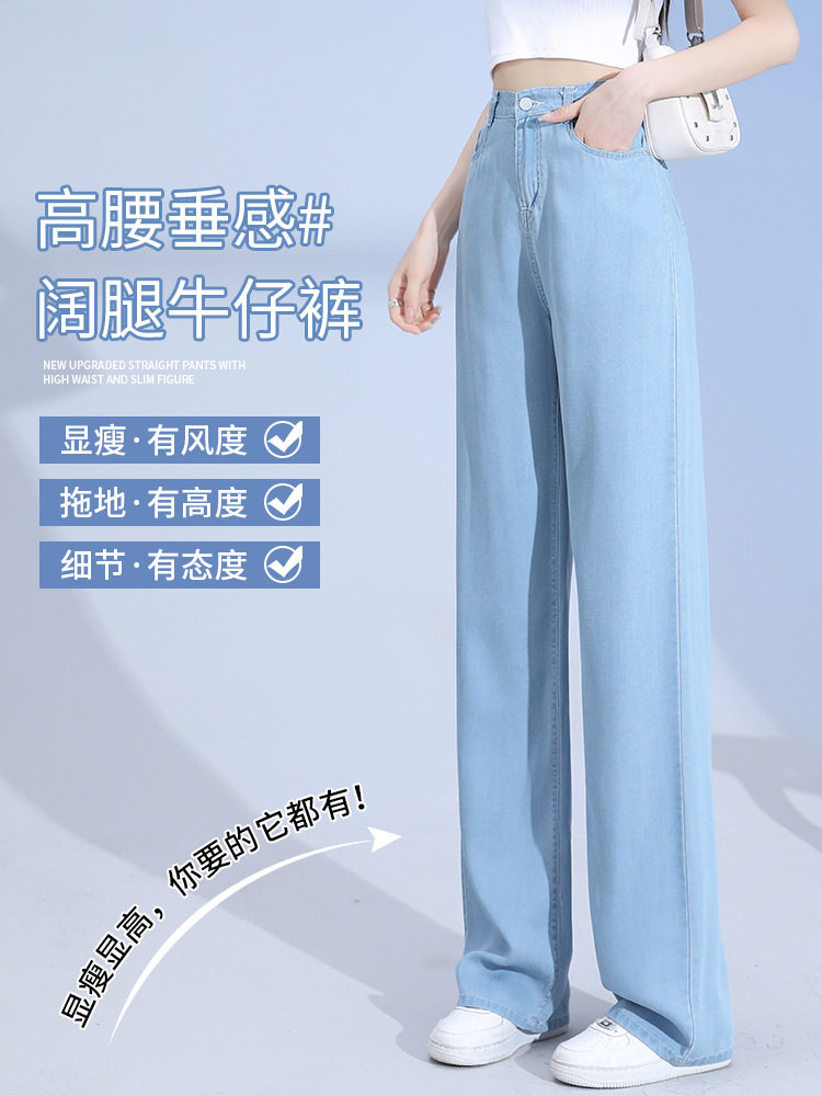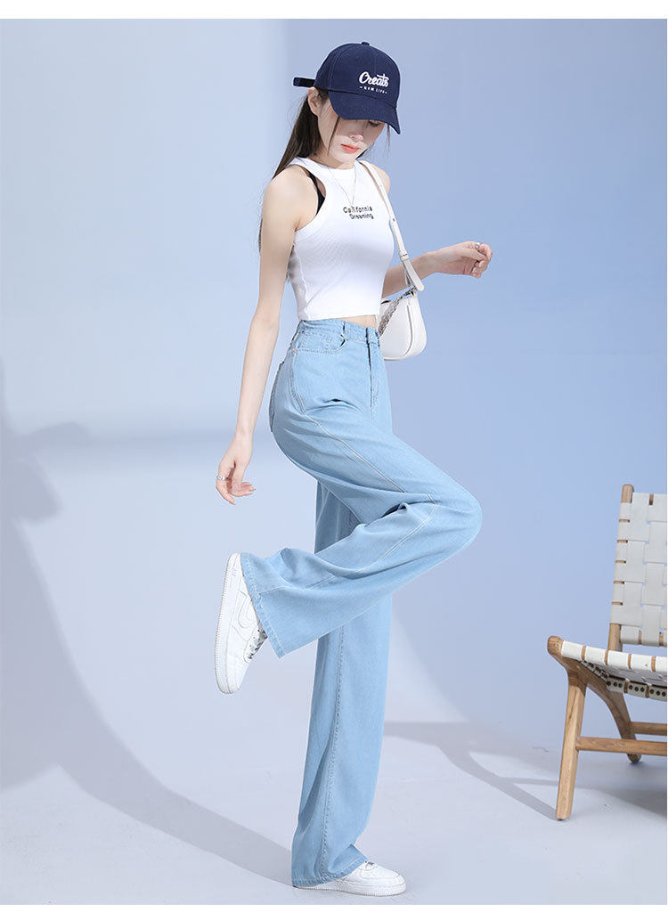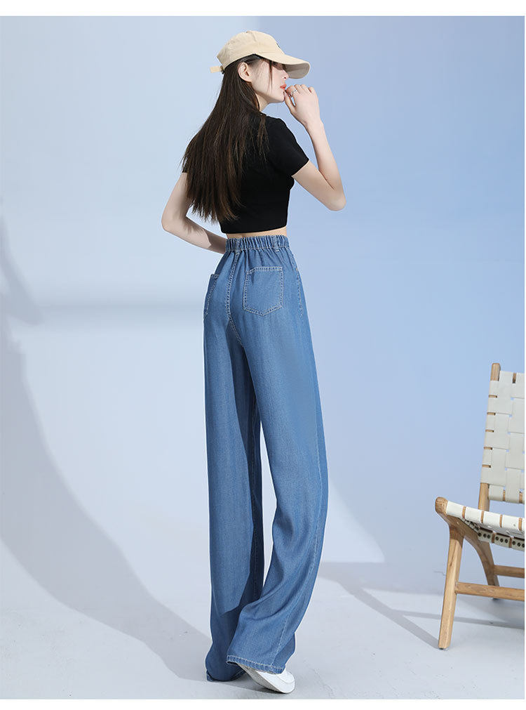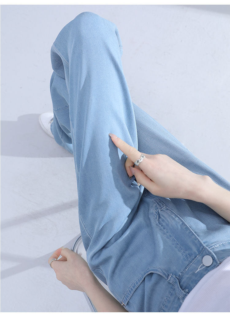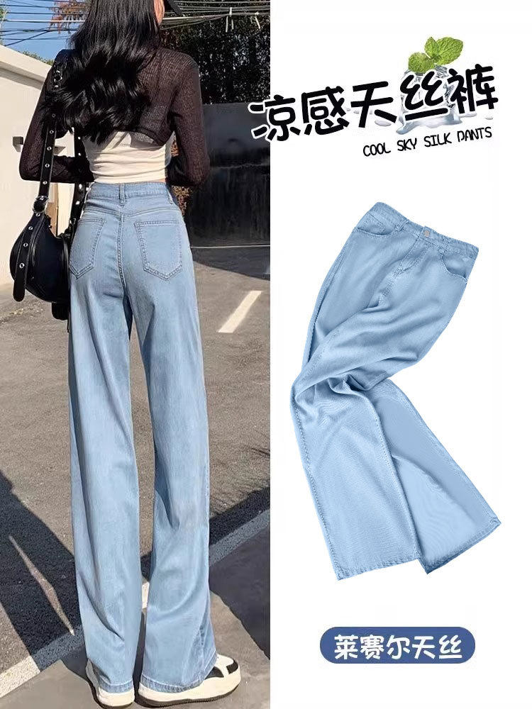Джинсы, шелковые летние длинные штаны, свободный прямой крой, высокая талия