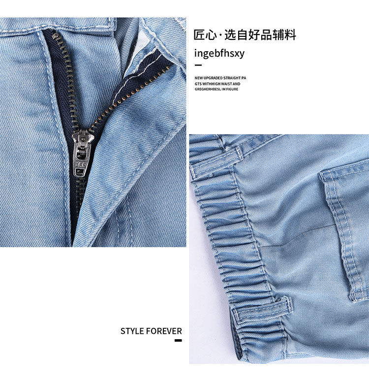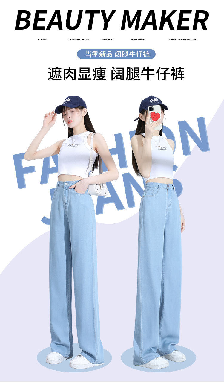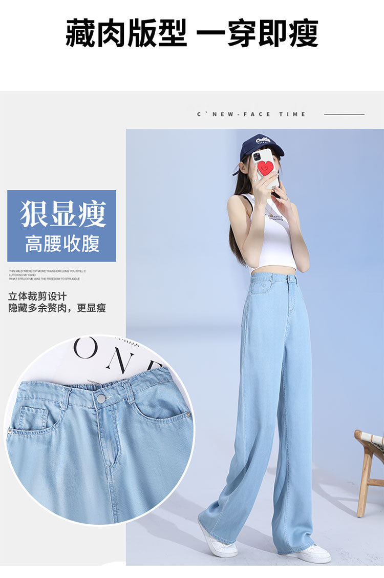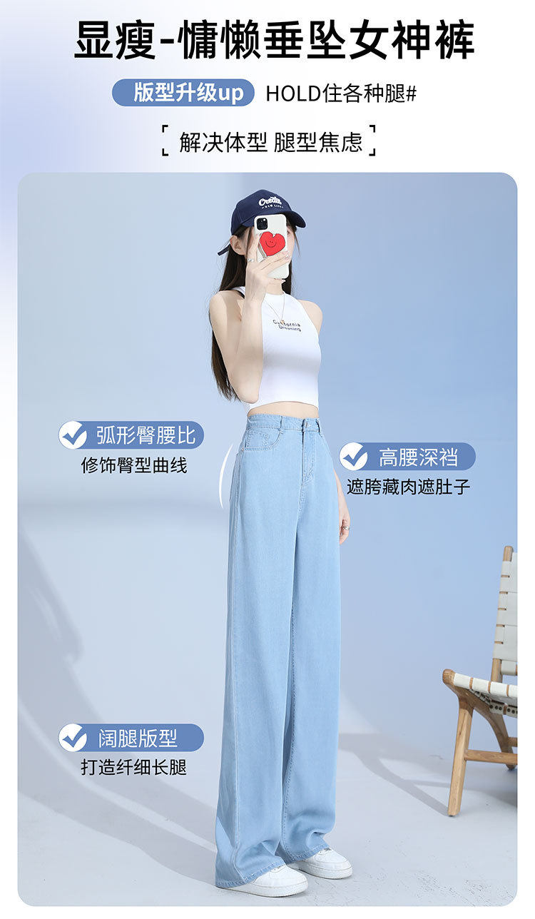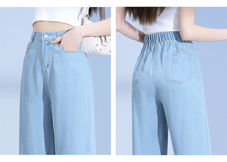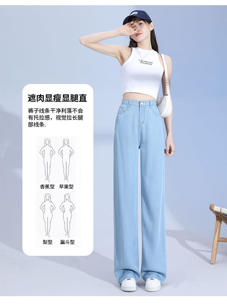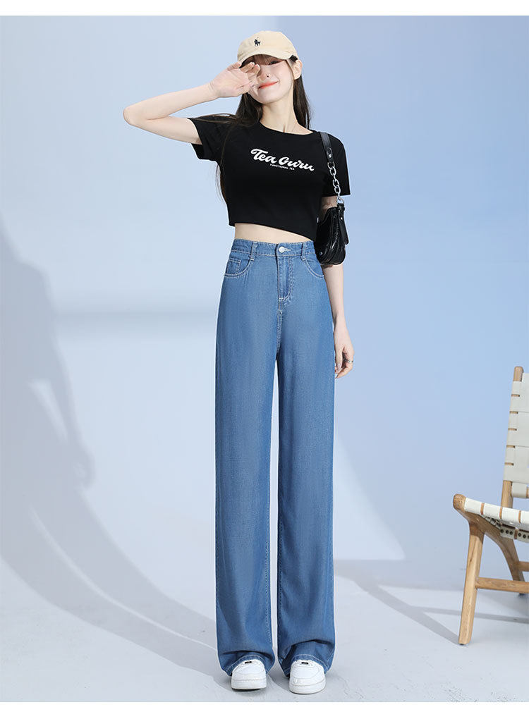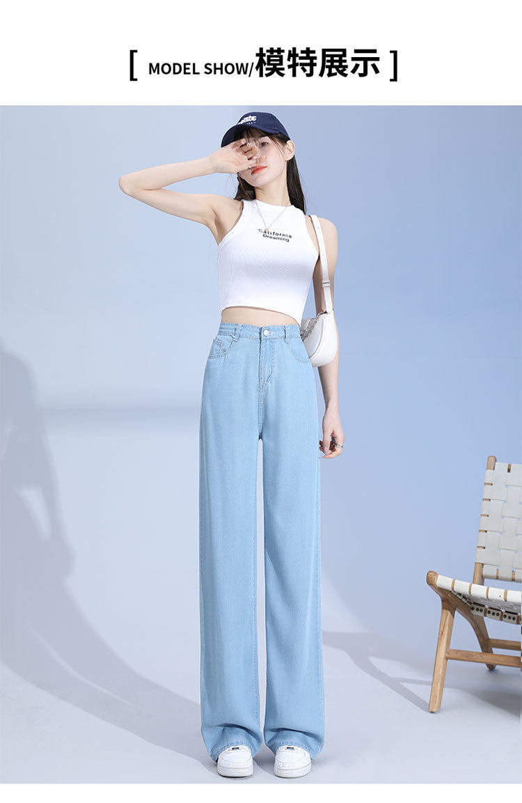 Джинсы, шелковые летние длинные штаны, свободный прямой крой, высокая талия