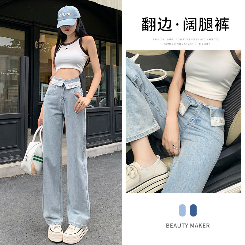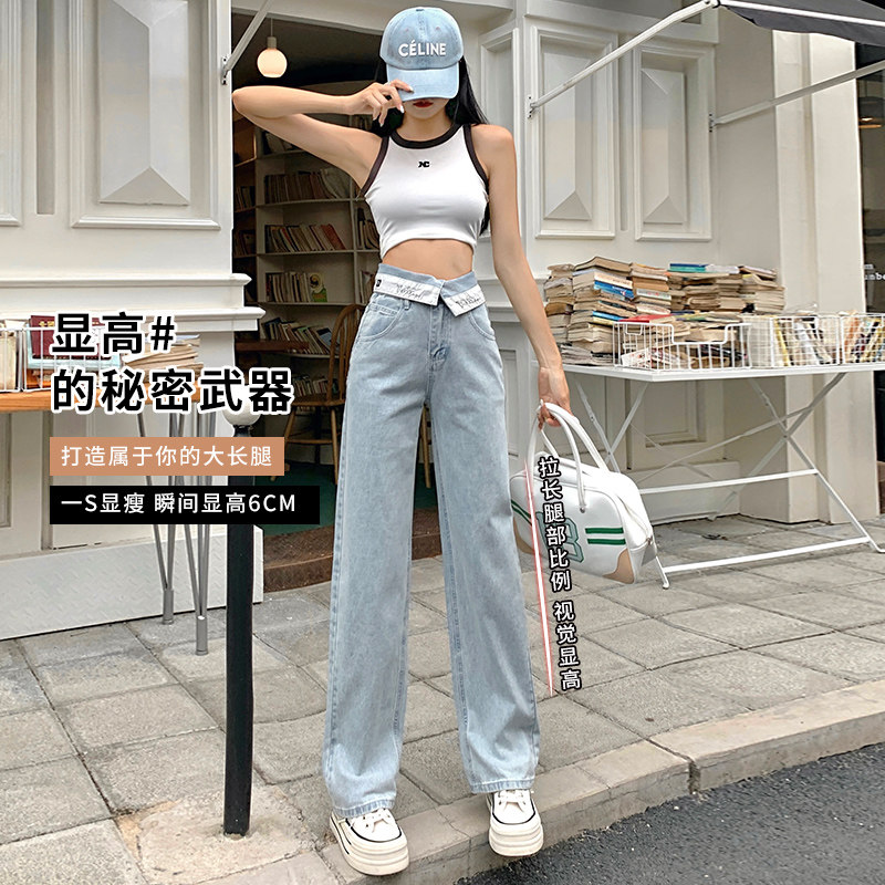 Весенние прямые свободные джинсы, летние небольшие дизайнерские штаны, в американском стиле, высокая талия, тренд сезона