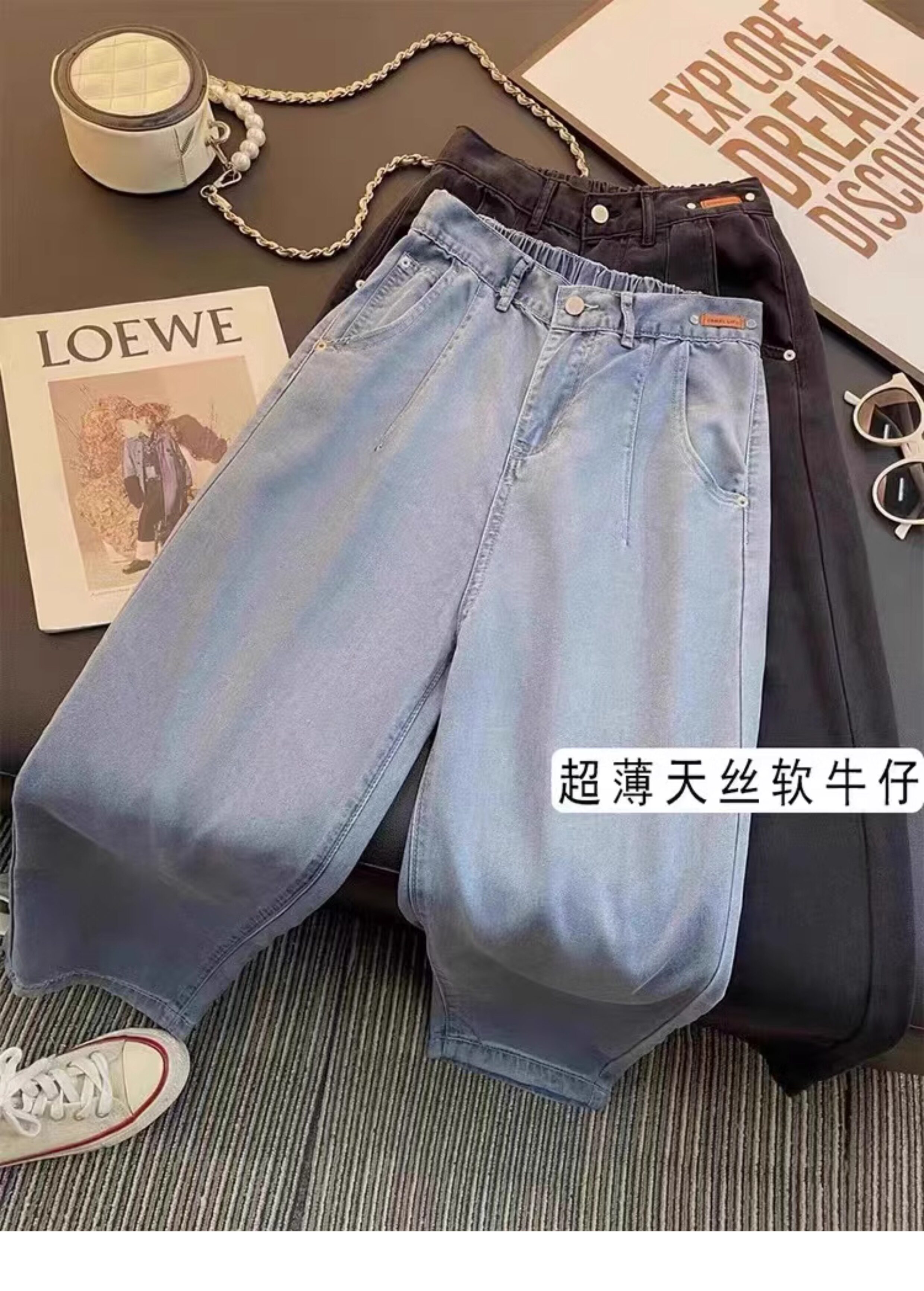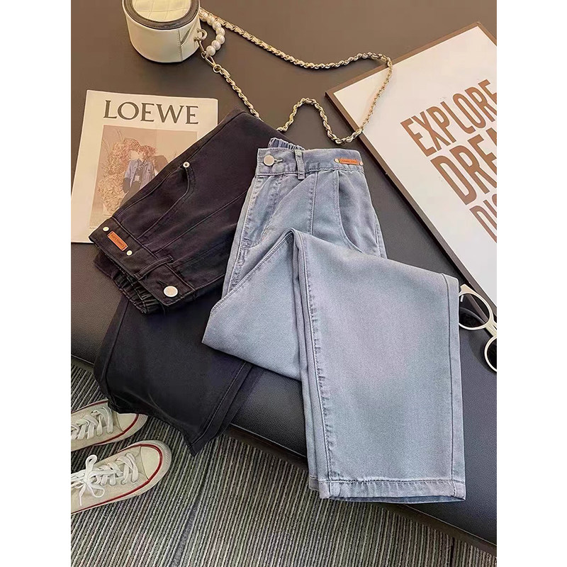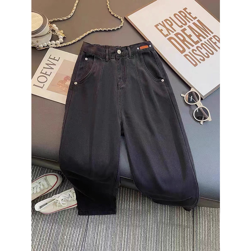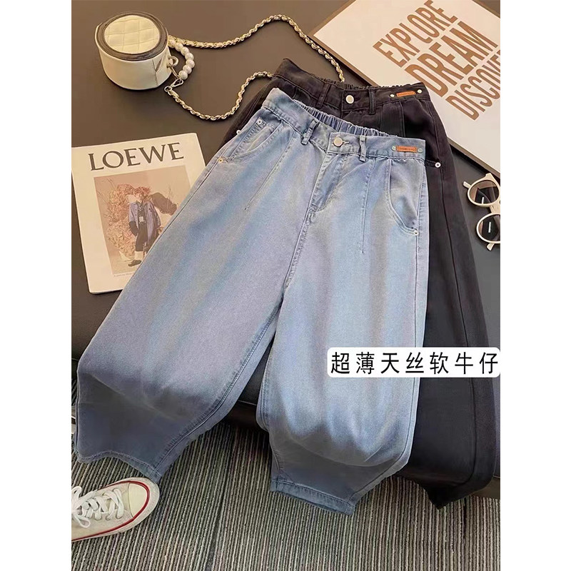 Штаны, тонкие приталенные шелковые джинсы, высокая талия, свободный прямой крой
