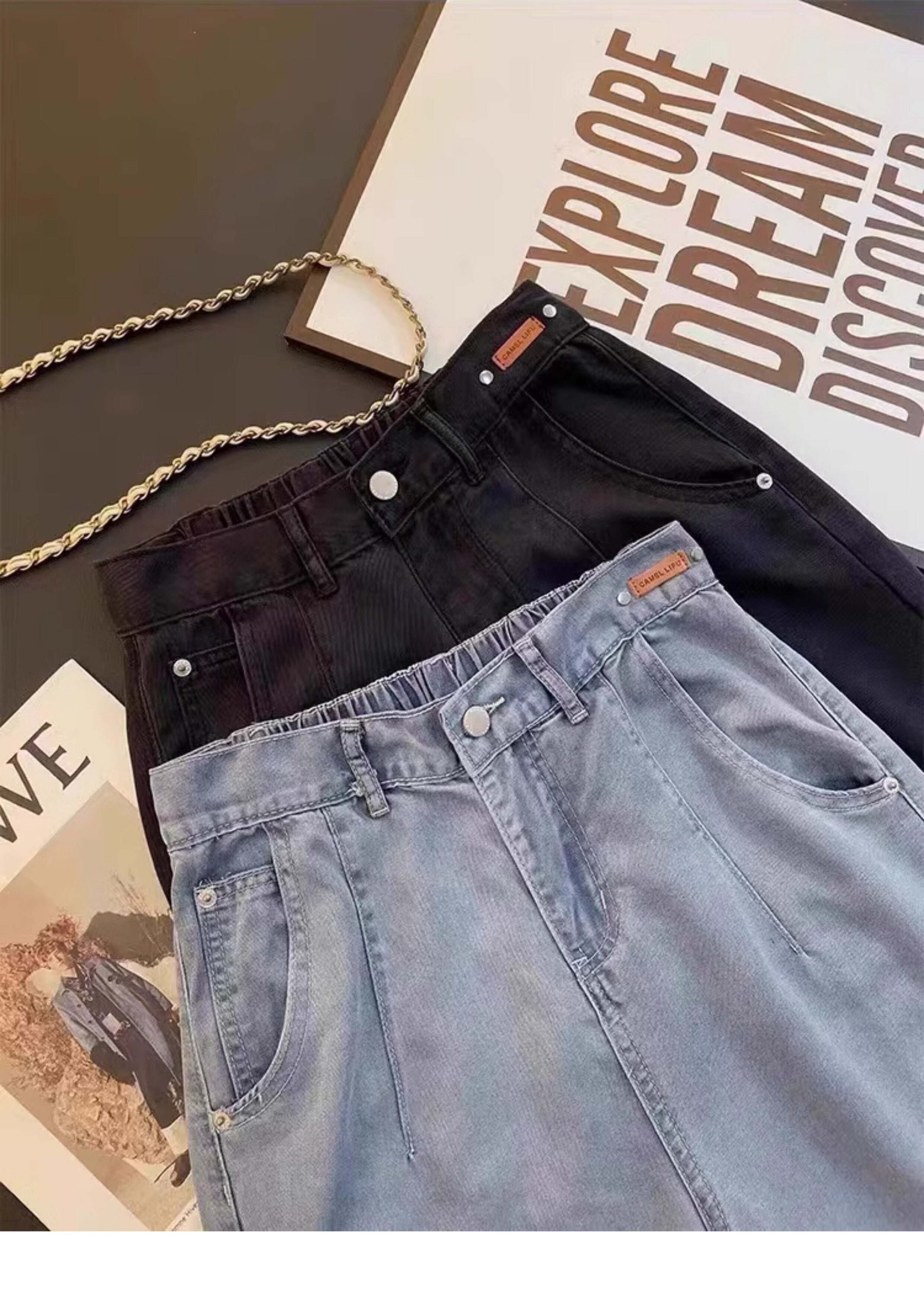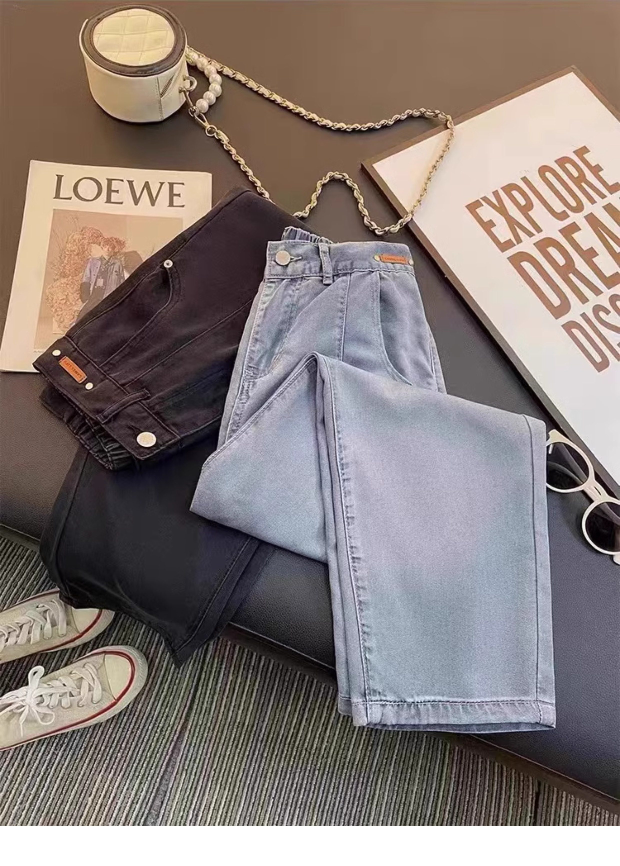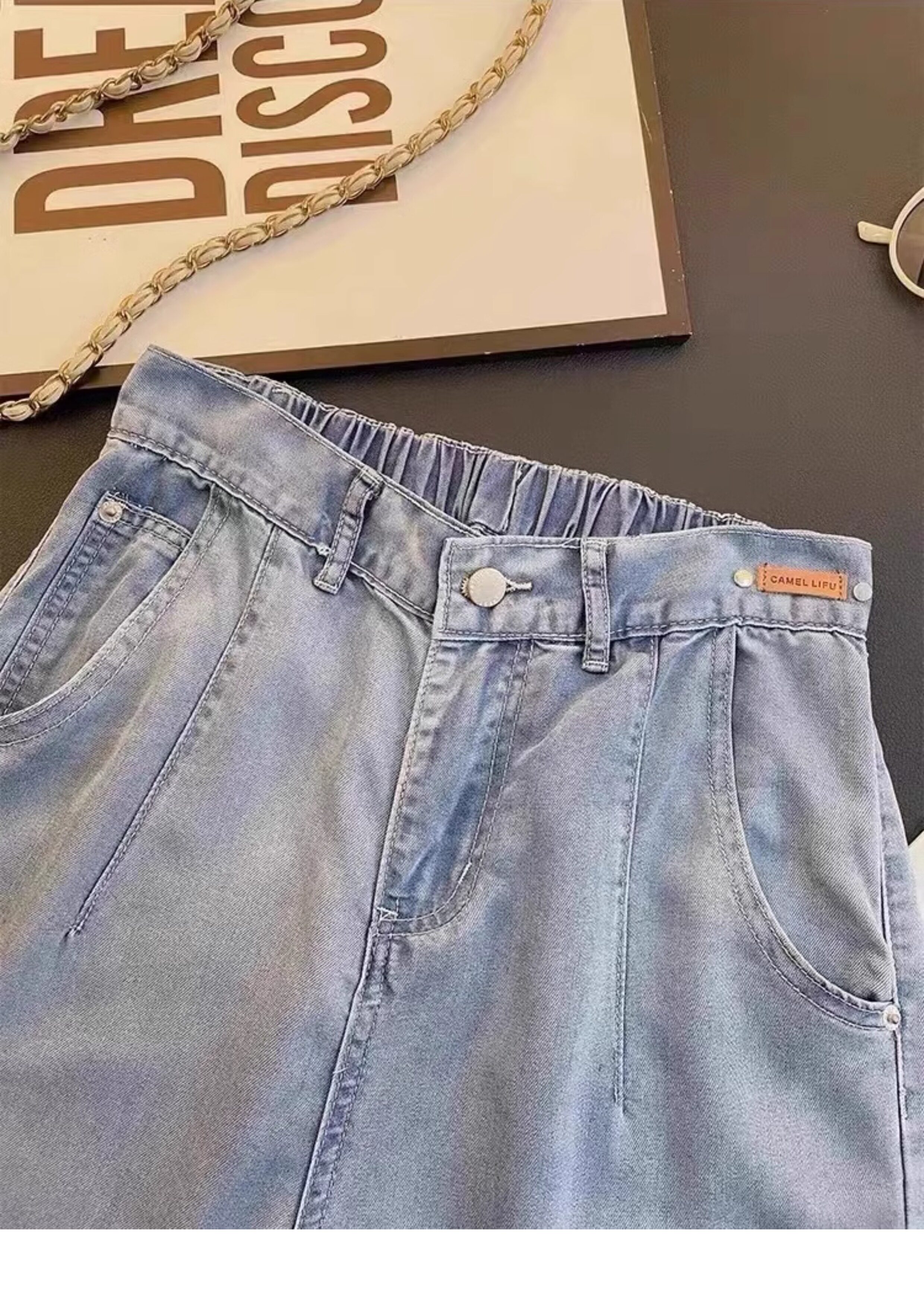 Штаны, тонкие приталенные шелковые джинсы, высокая талия, свободный прямой крой
