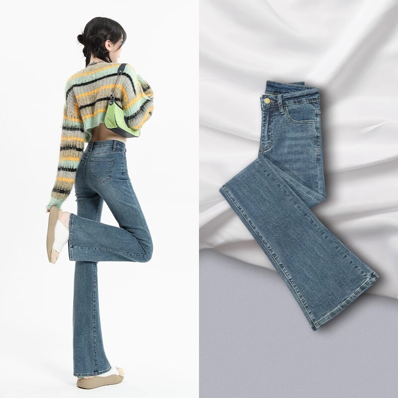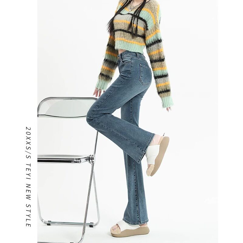 Тонкие джинсы, штаны, приталенные ретро штаны-клёш, 2024 года, новая коллекция, высокая талия