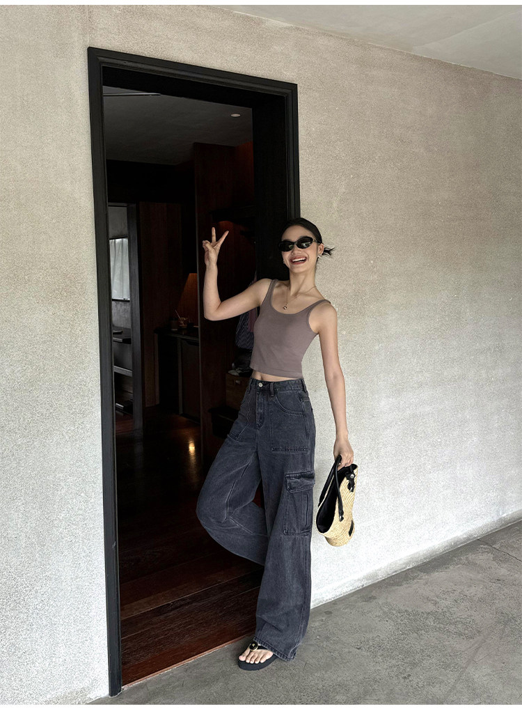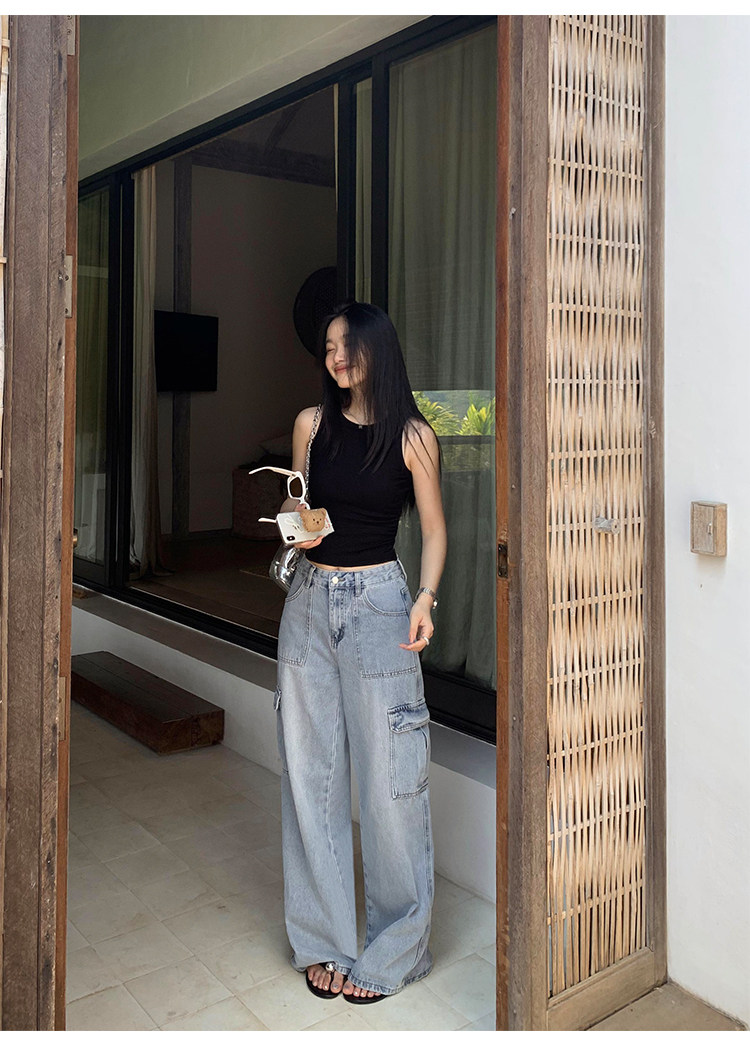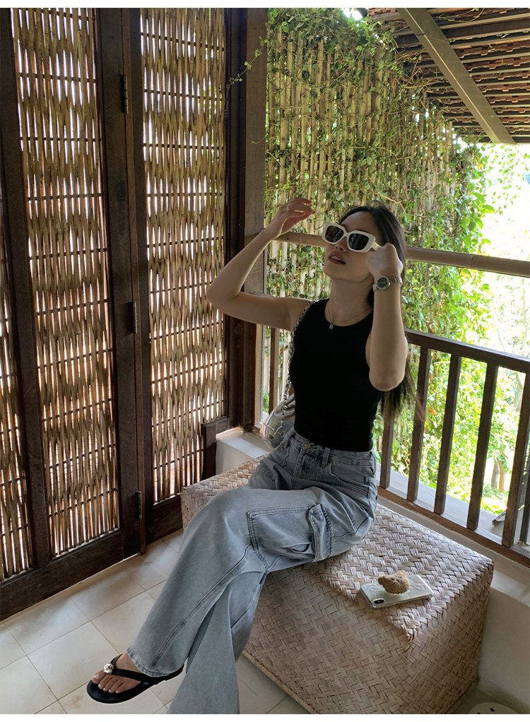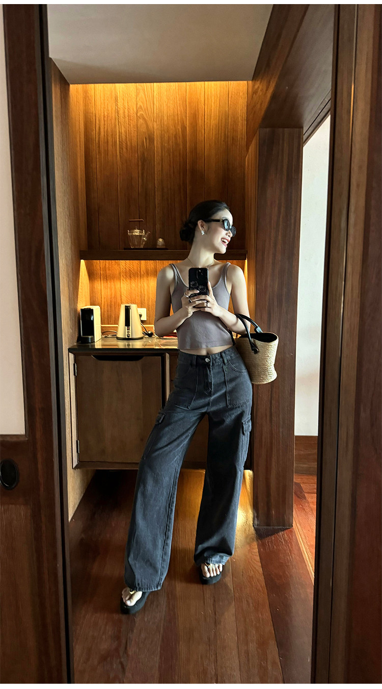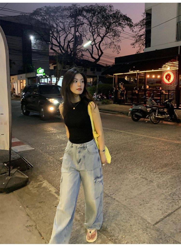 pusumede Штаны, летние джинсы для отдыха, высокая талия