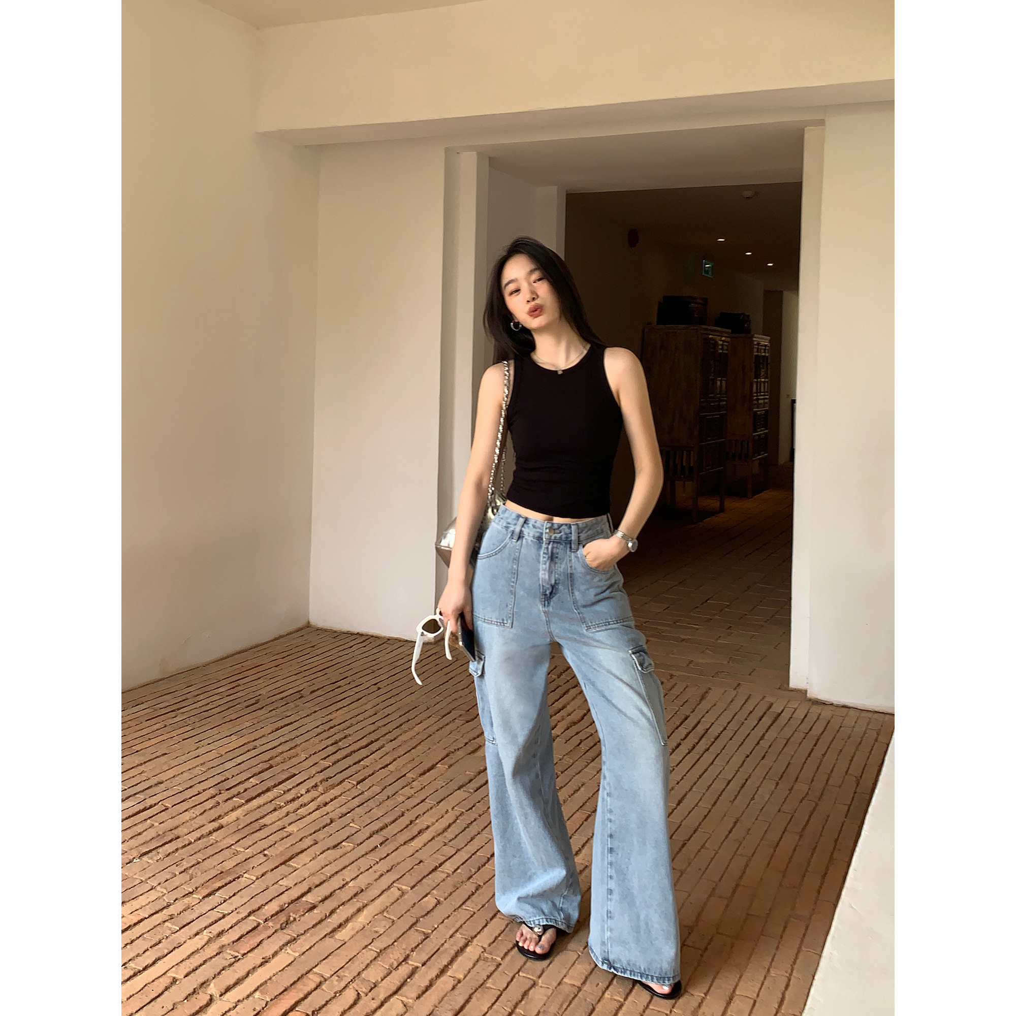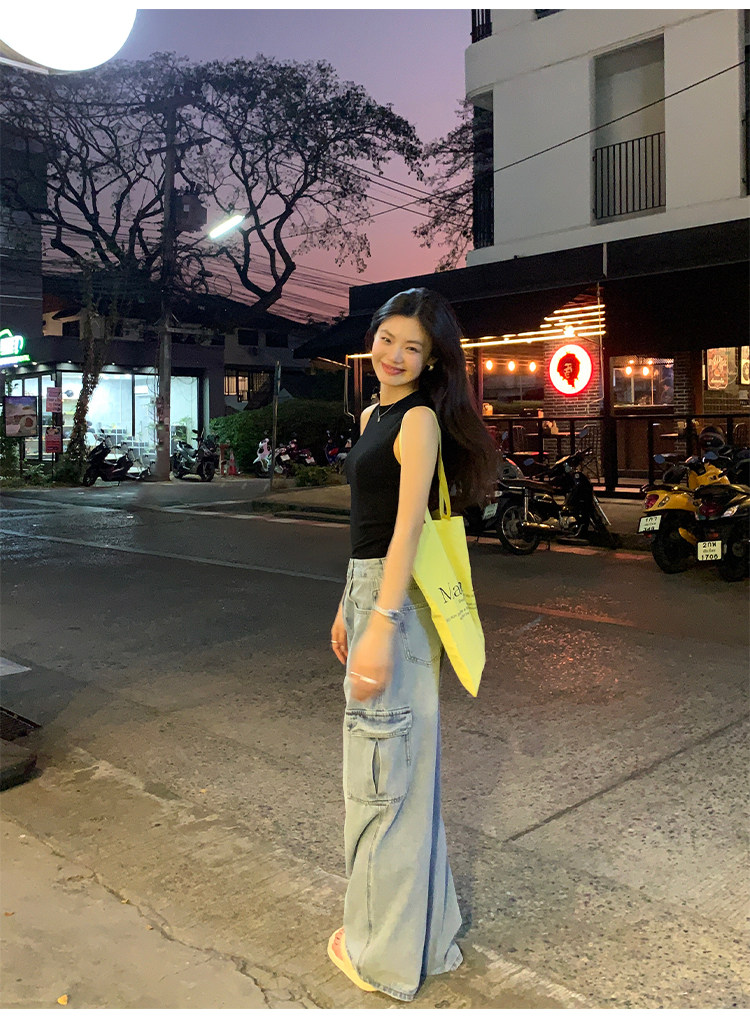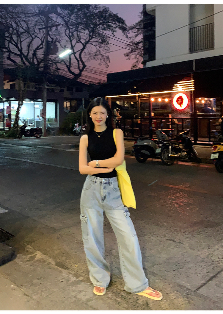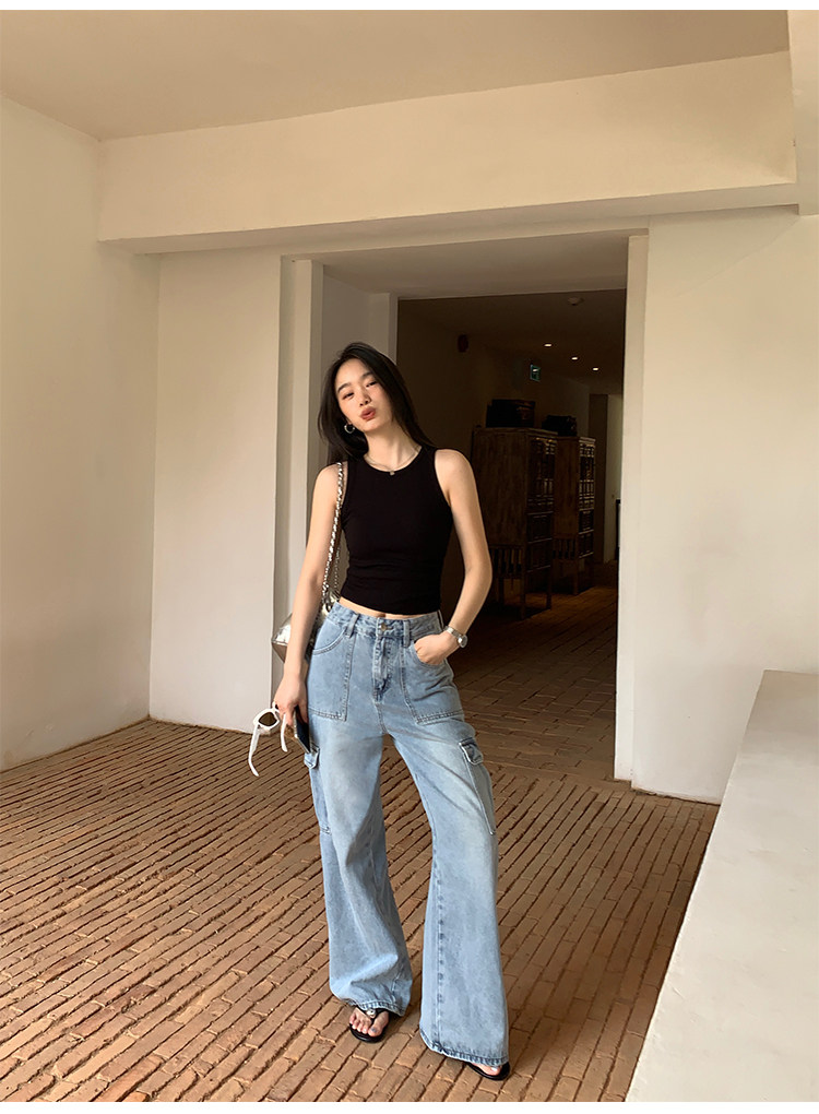 pusumede Штаны, летние джинсы для отдыха, высокая талия