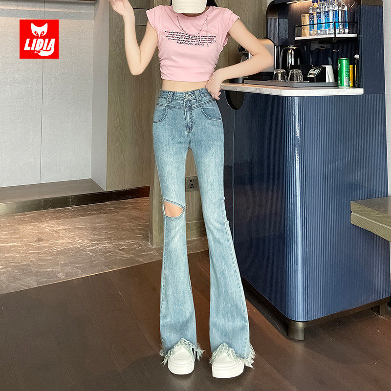 Синие джинсы, летние штаны, тонкий эластичный мегафон, высокая талия