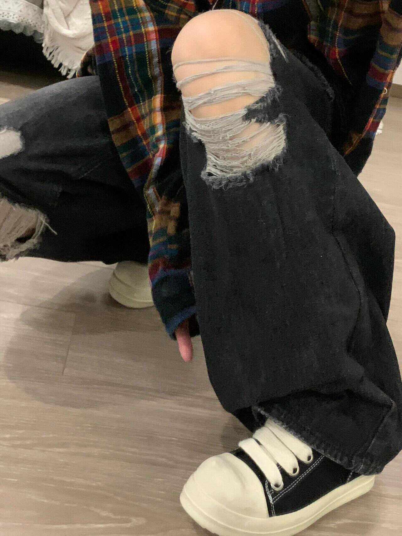 Черные летние джинсы, штаны, большой размер, в американском стиле, свободный прямой крой
