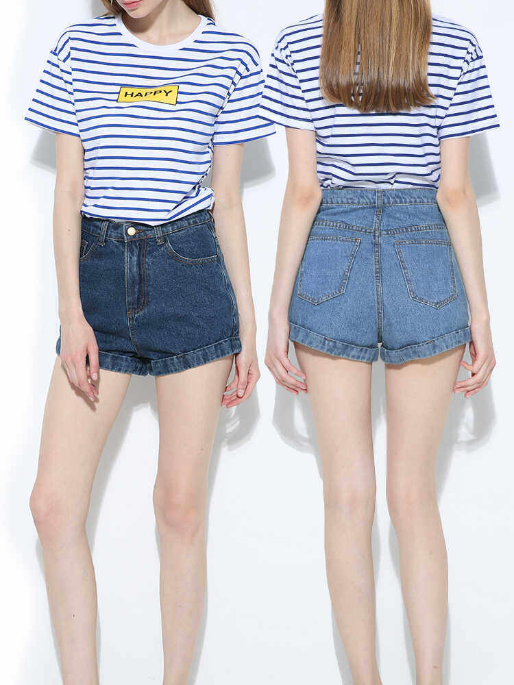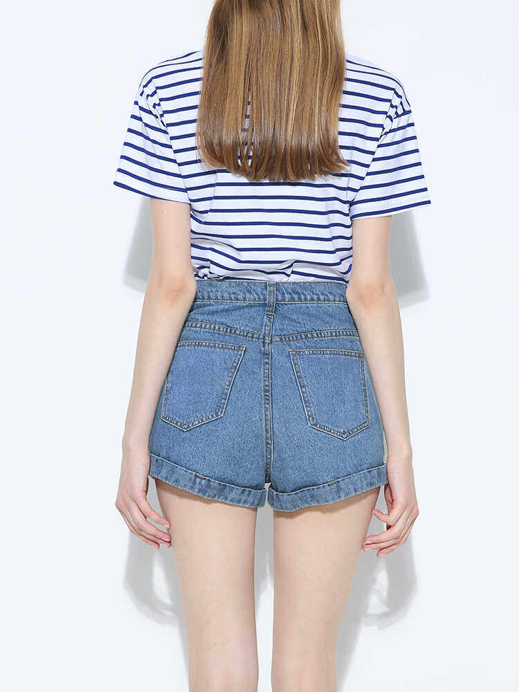 Ретро джинсовая юбка, шорты, штаны, европейский стиль, высокая талия, по фигуре, свободный крой, А-силуэт