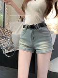 Джинсы, штаны, приталенные шорты, с акцентом на бедрах, высокая талия, в западном стиле, А-силуэт