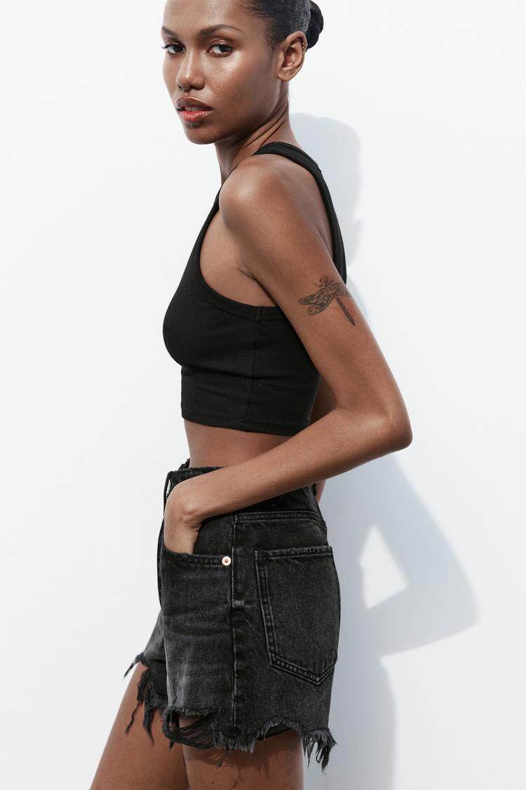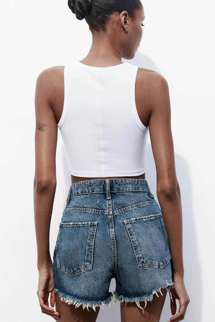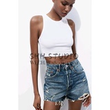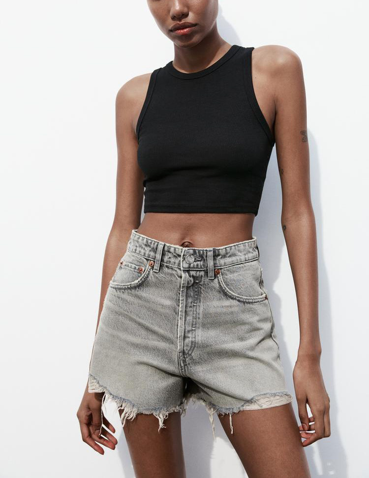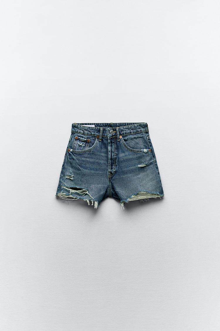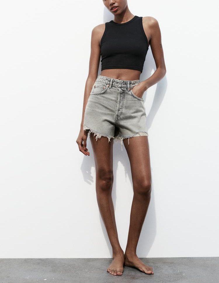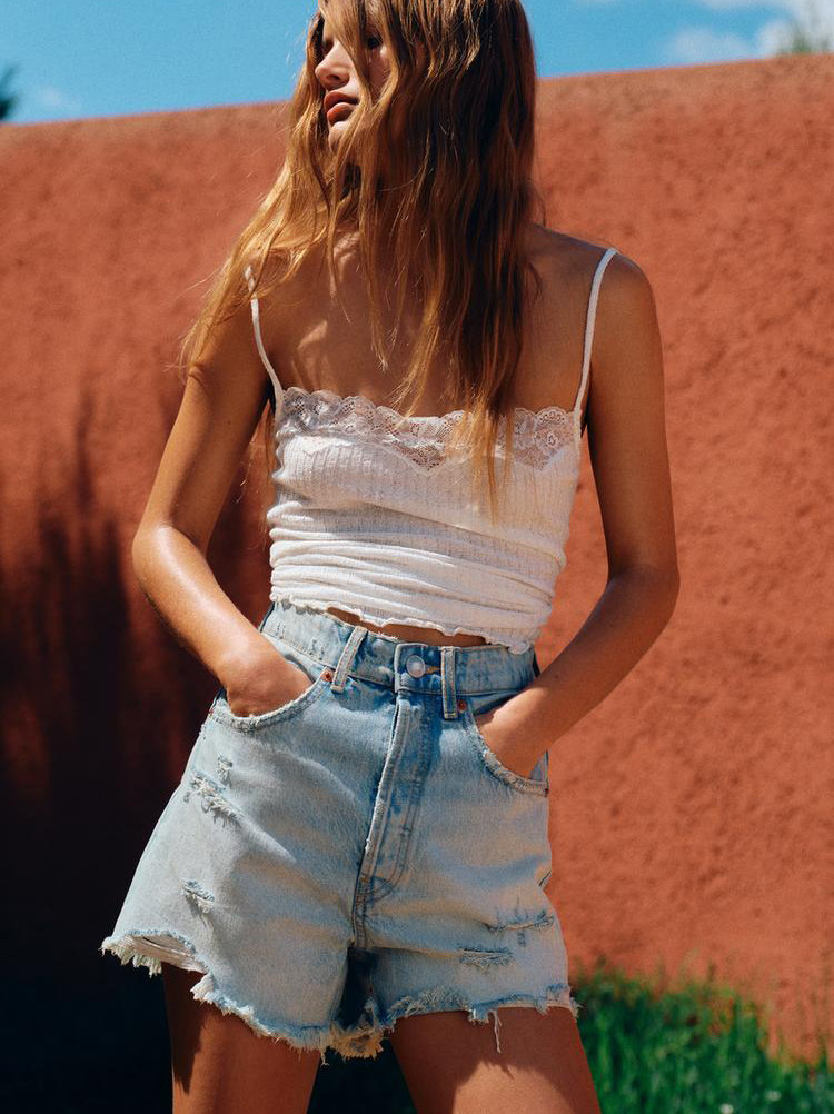 Za Spring Новый продукт тенденция с горячими девушками Эффект промывки, вырубленные отверстия и джинсовые шорты с высокой талиной 2569073