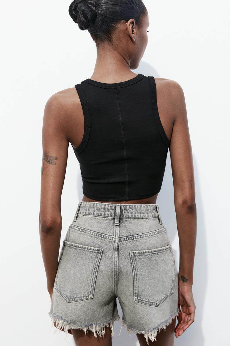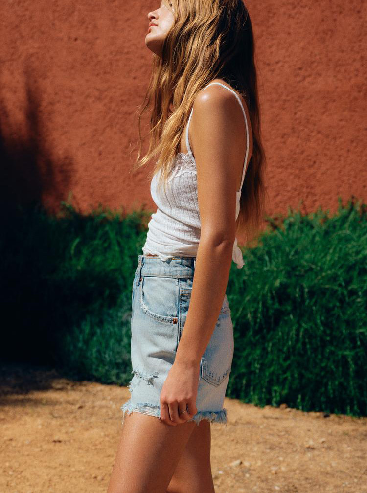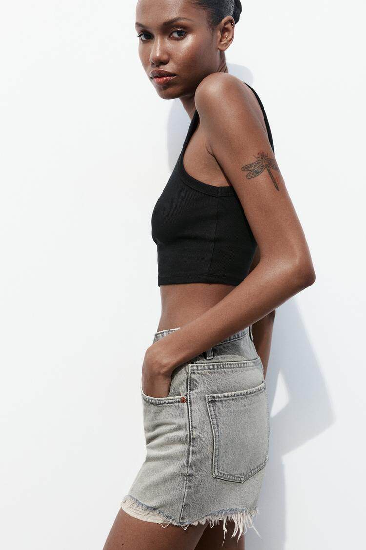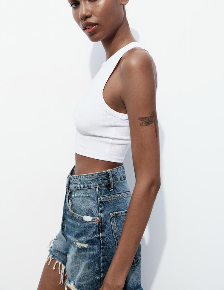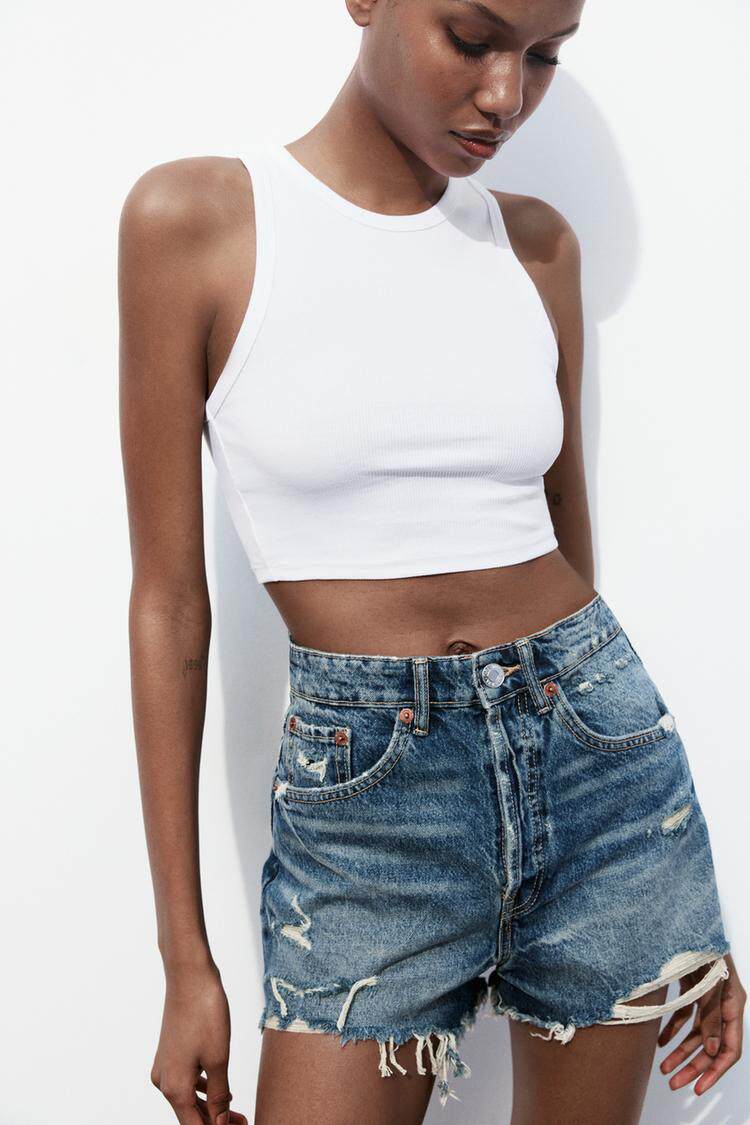 Za Spring Новый продукт тенденция с горячими девушками Эффект промывки, вырубленные отверстия и джинсовые шорты с высокой талиной 2569073