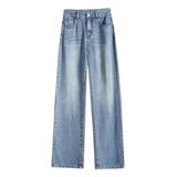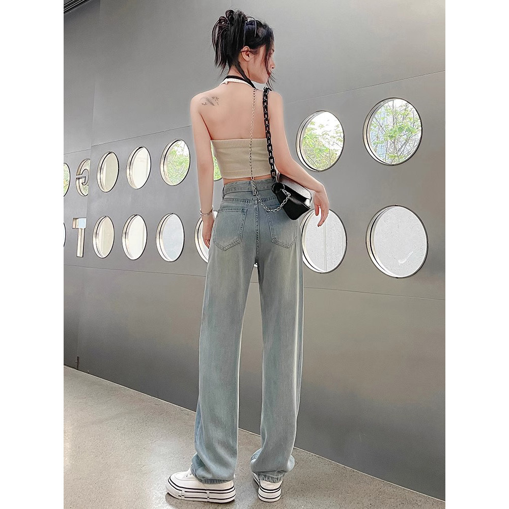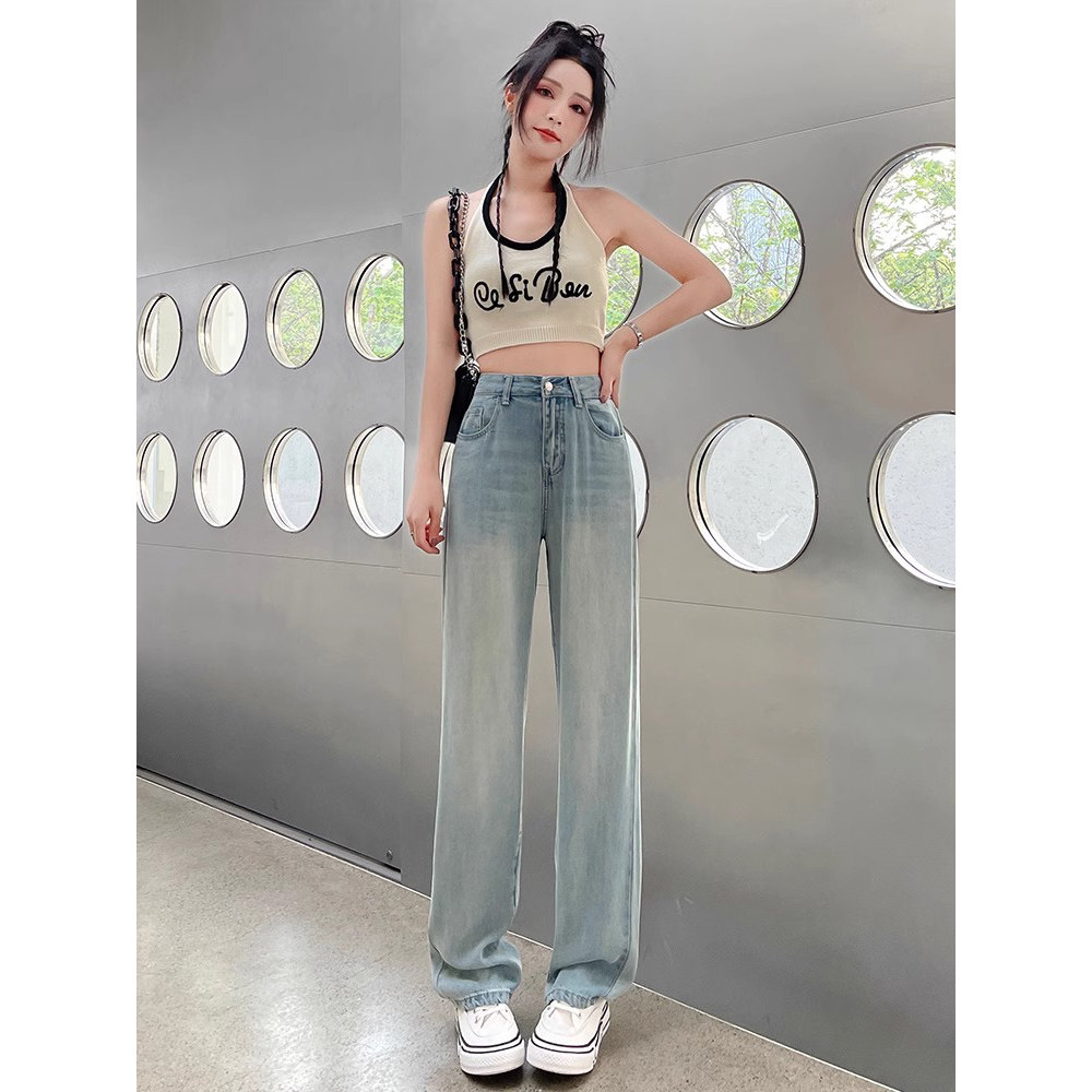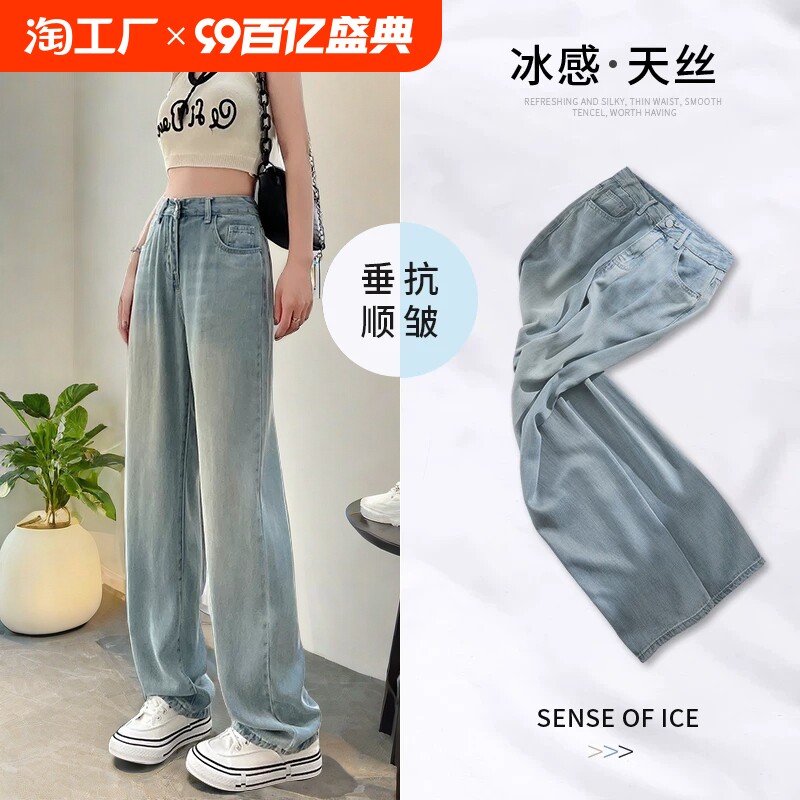 Джинсы, летние шелковые легкие и тонкие длинные штаны, свободный крой, 2024 года, высокая талия, подходит для подростков