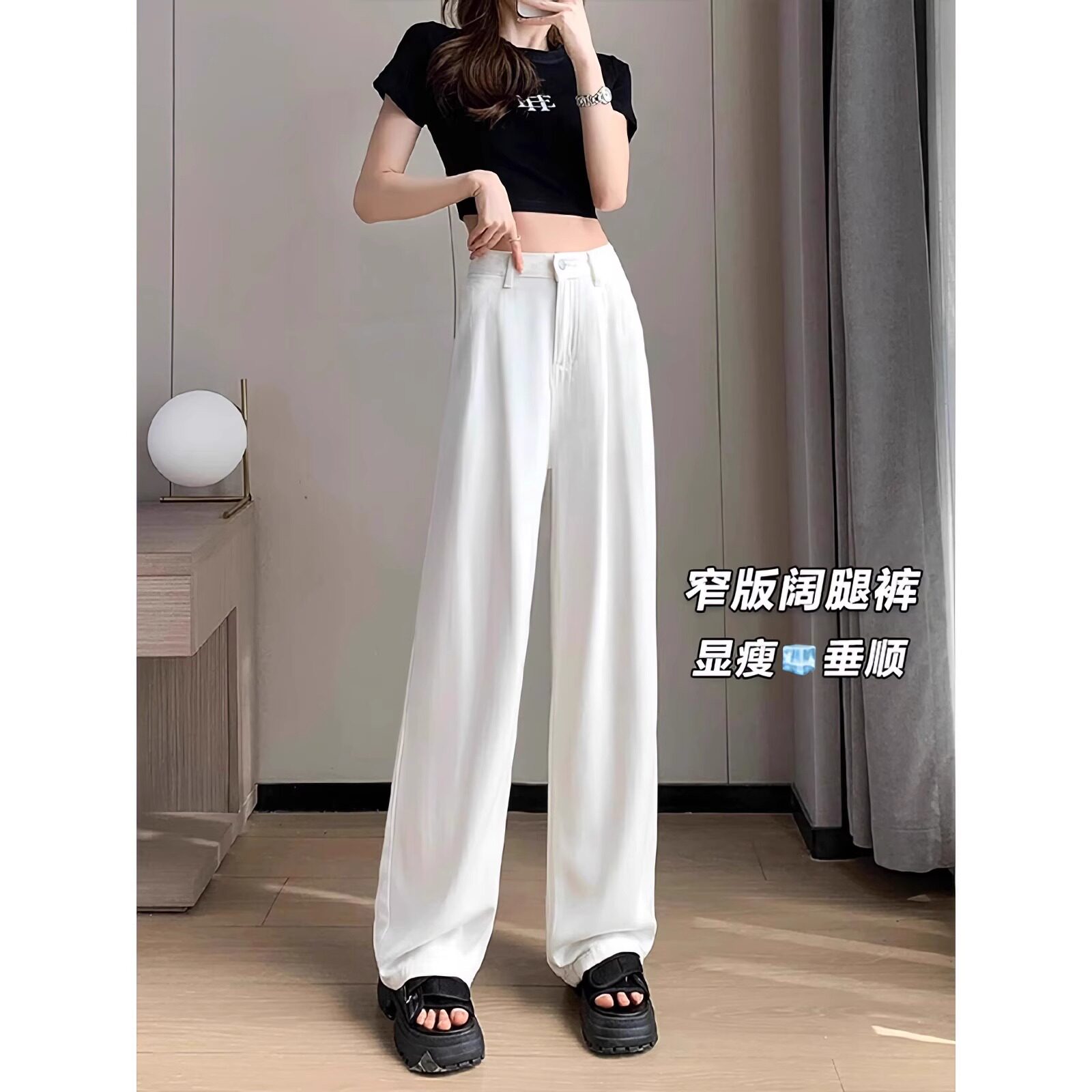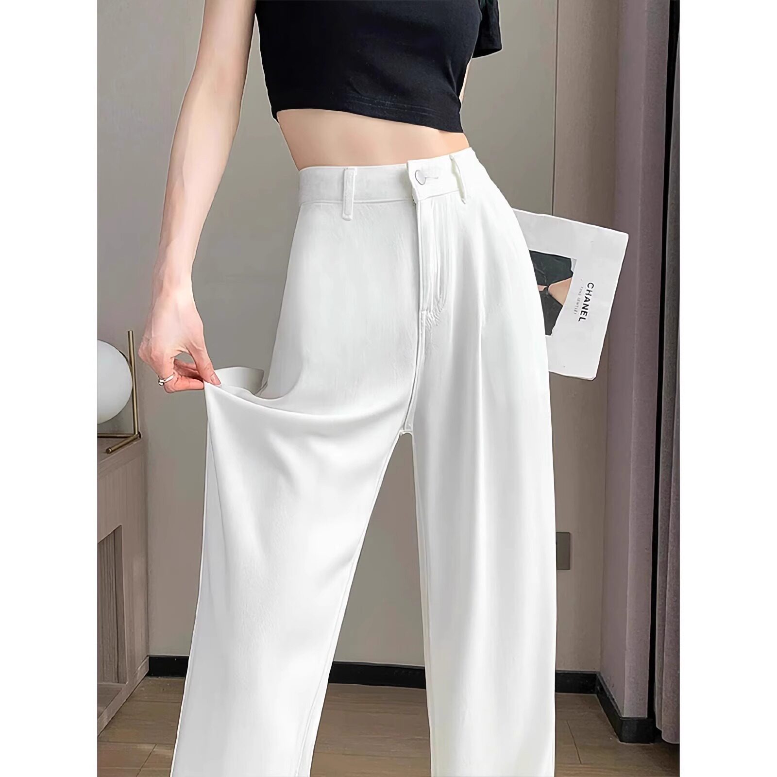Светлые белые штаны, тонкие шелковые джинсы, широкая цветовая палитра, высокая талия