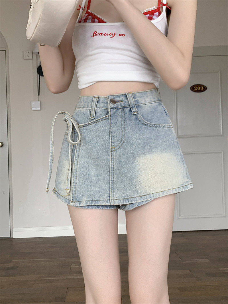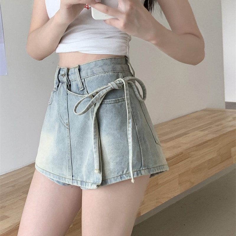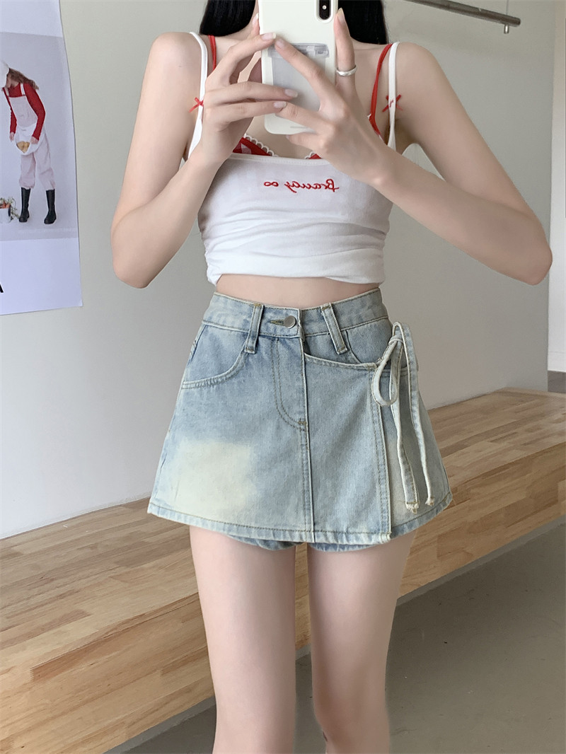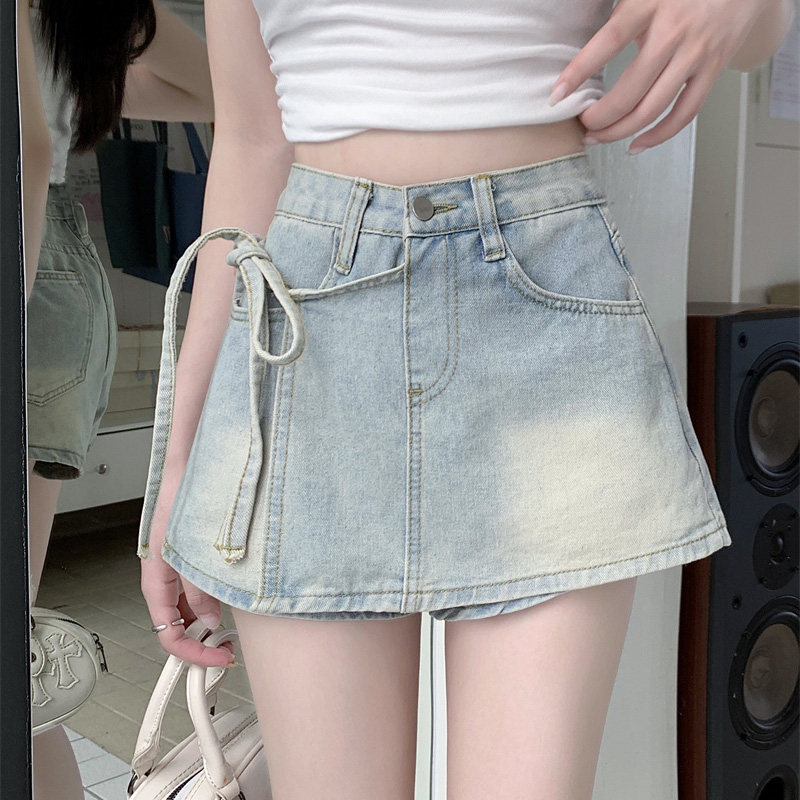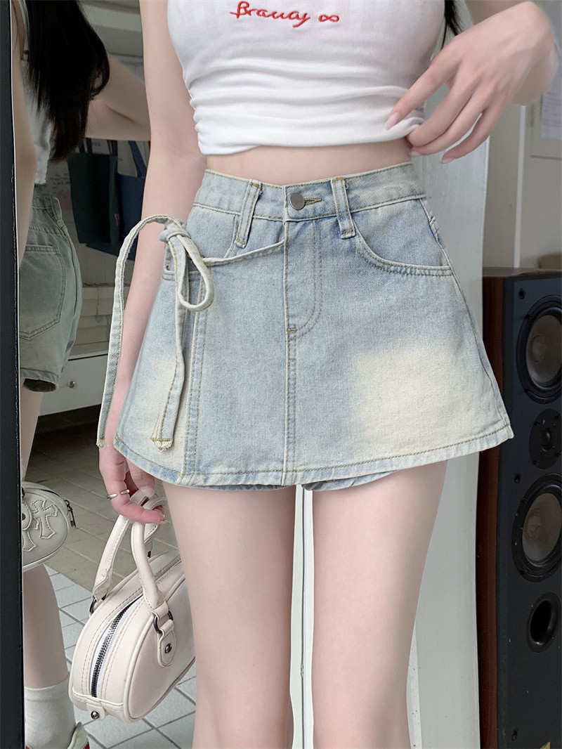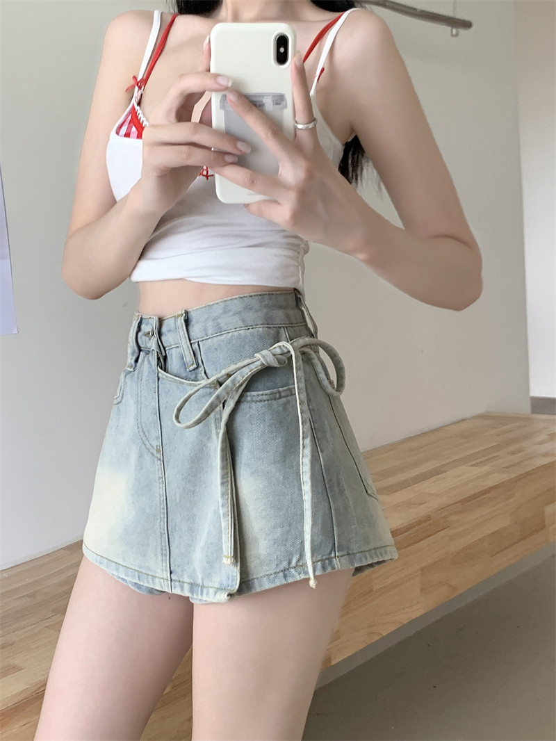 Летний ремень, комплект, штаны, ретро джинсовая юбка, шорты, А-силуэт