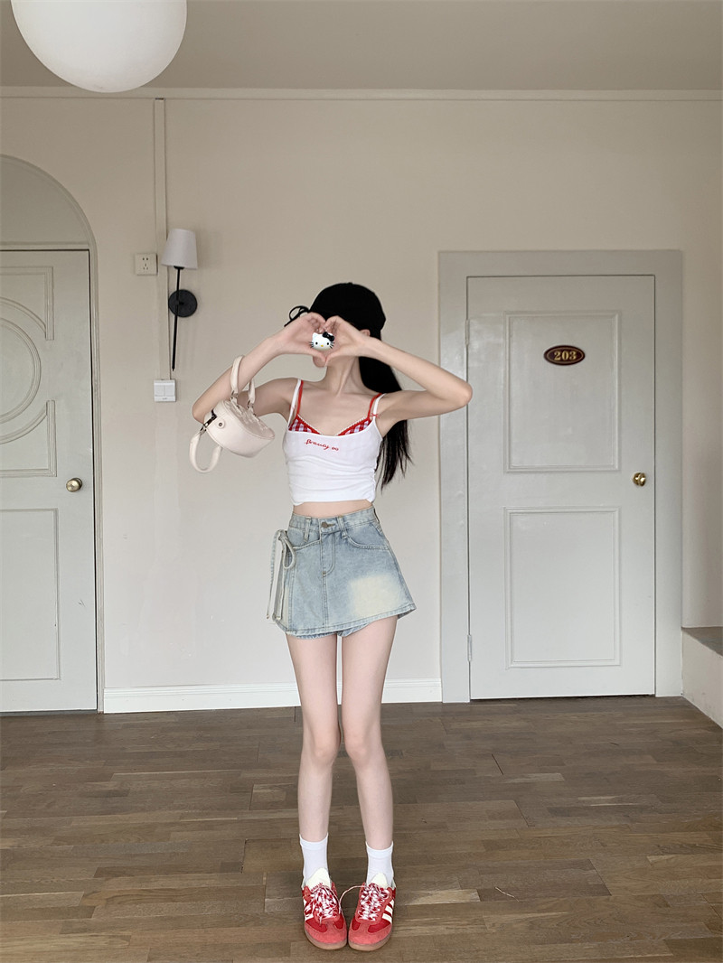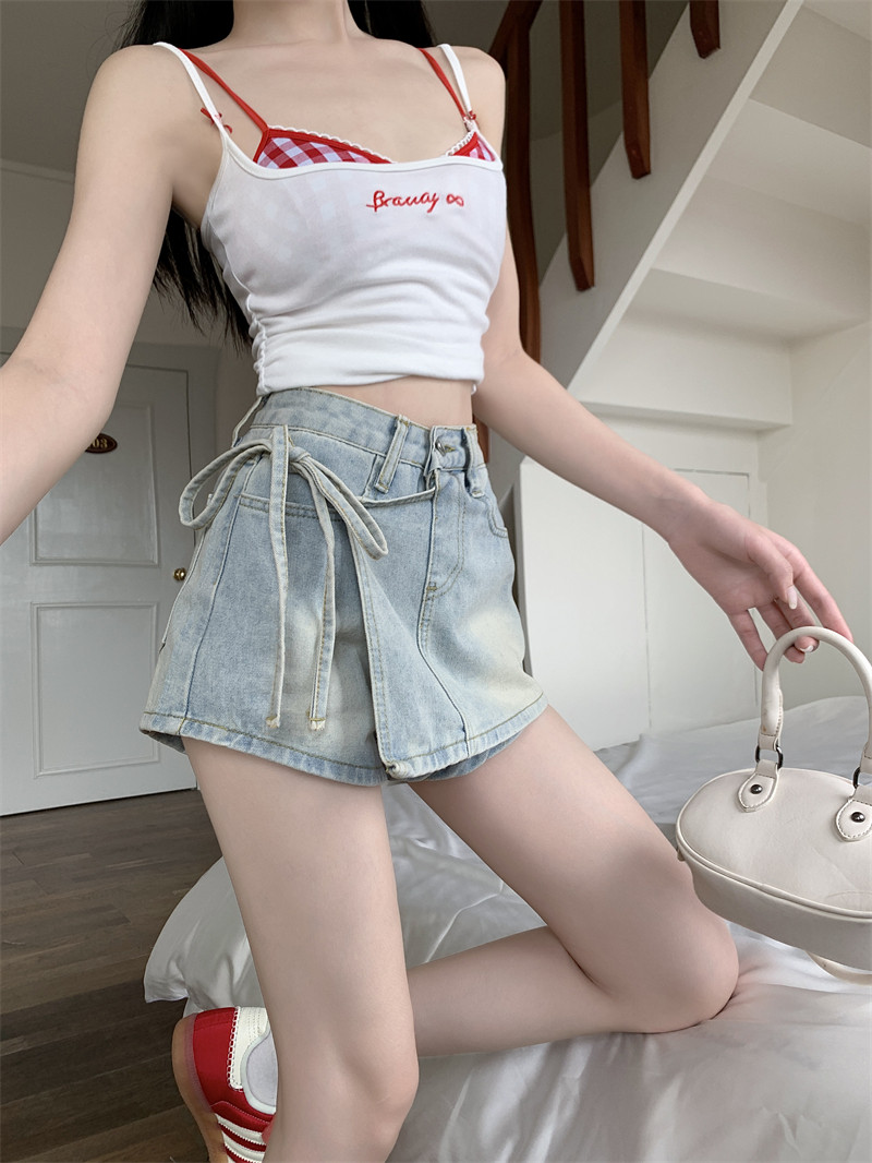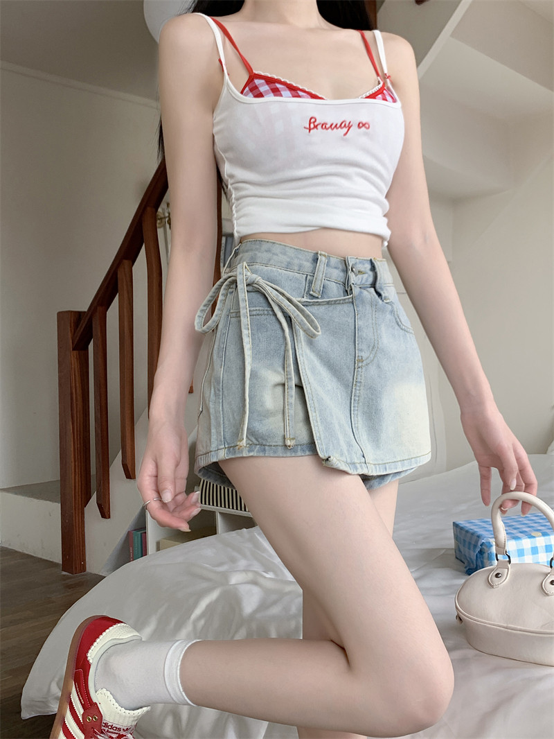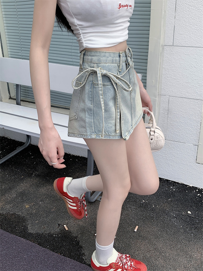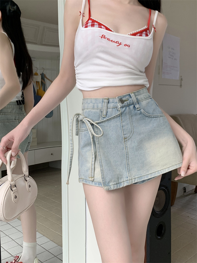 Летний ремень, комплект, штаны, ретро джинсовая юбка, шорты, А-силуэт